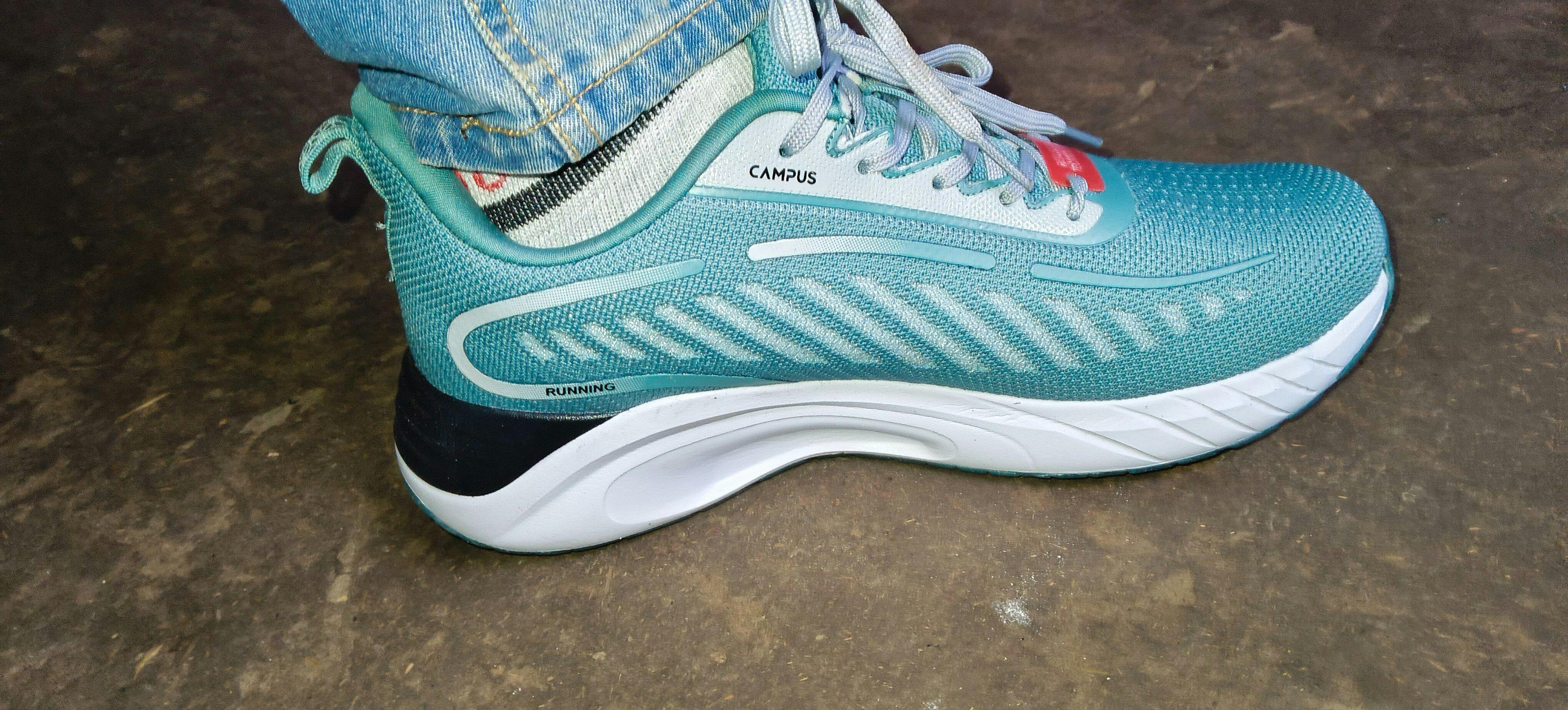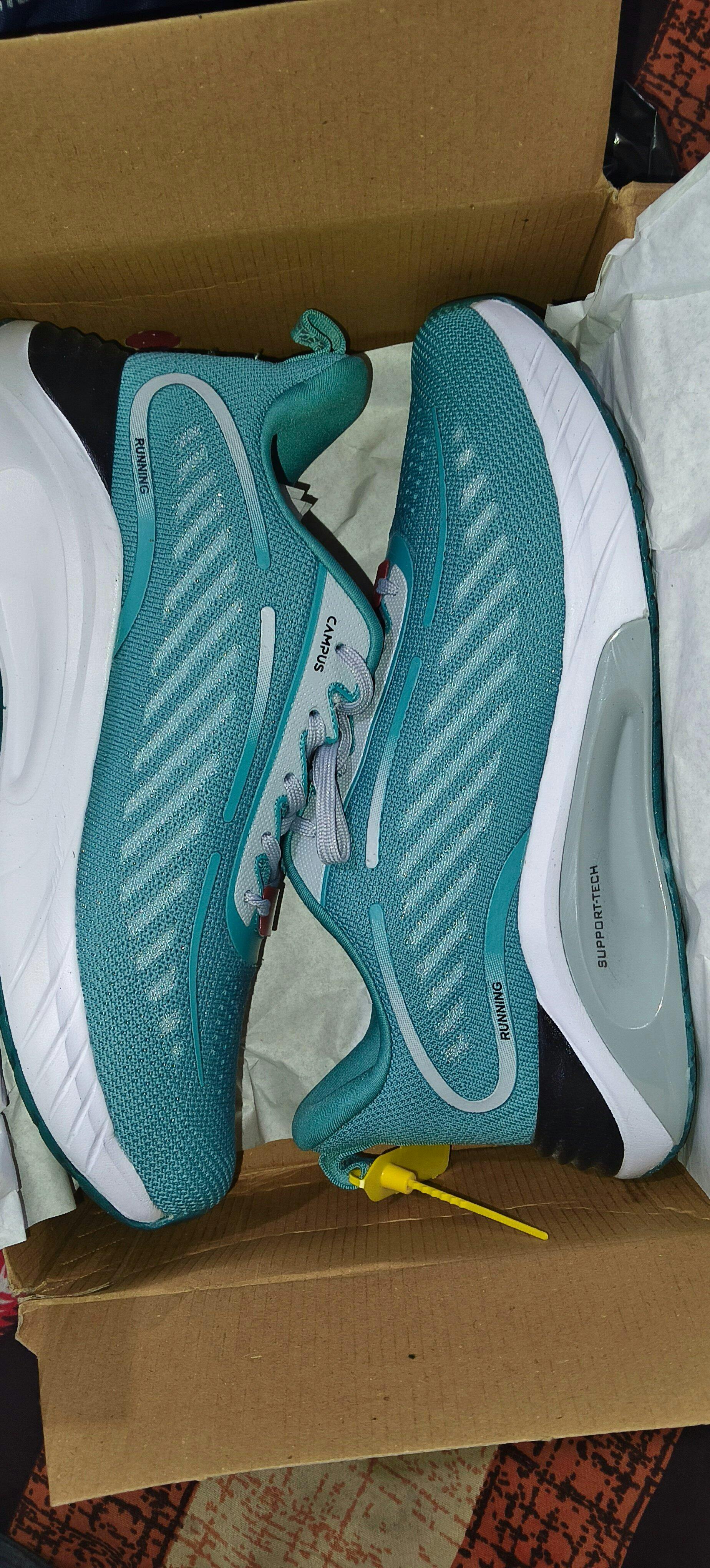 Get great performance and a style edge, with the Abacus Men's Running Shoes by Campus. The brilliant support tech takes care of your foot movement and ensures proper steps on all terrains. The powerful duo - EVA outsole and memory foam insole, delivers lightweight, cushioned comfort and flexibility, so you can sport these all day long. The sleek design, enhanced with the knitted vamp upper and green-black colorway, effortlessly elevates all your looks and has you geared up, always!