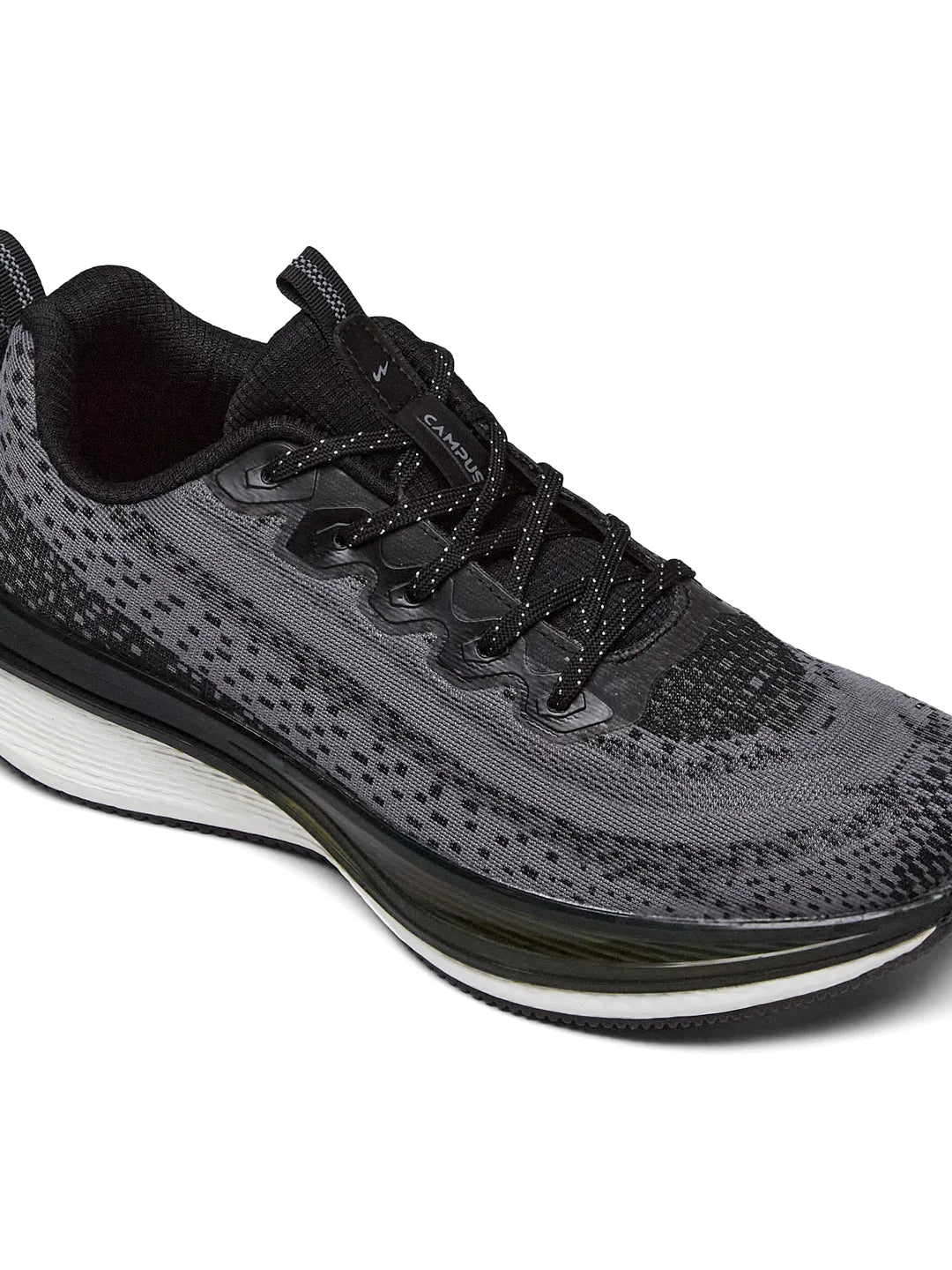 Campus ACCESS Men’s Running Shoes — the pair that redefines. The breathable mesh vamp upper hugs your foot for easy comfort while maintaining optimal airflow. The EVA, TPR, and TPU sole combine for cushioning, lasting support, and reliable footing. The Bubble Yoga Max insole feels like a soft landing every time you move. The black-grey base with dotted hits makes it sleek yet playful — and always in your rotation.