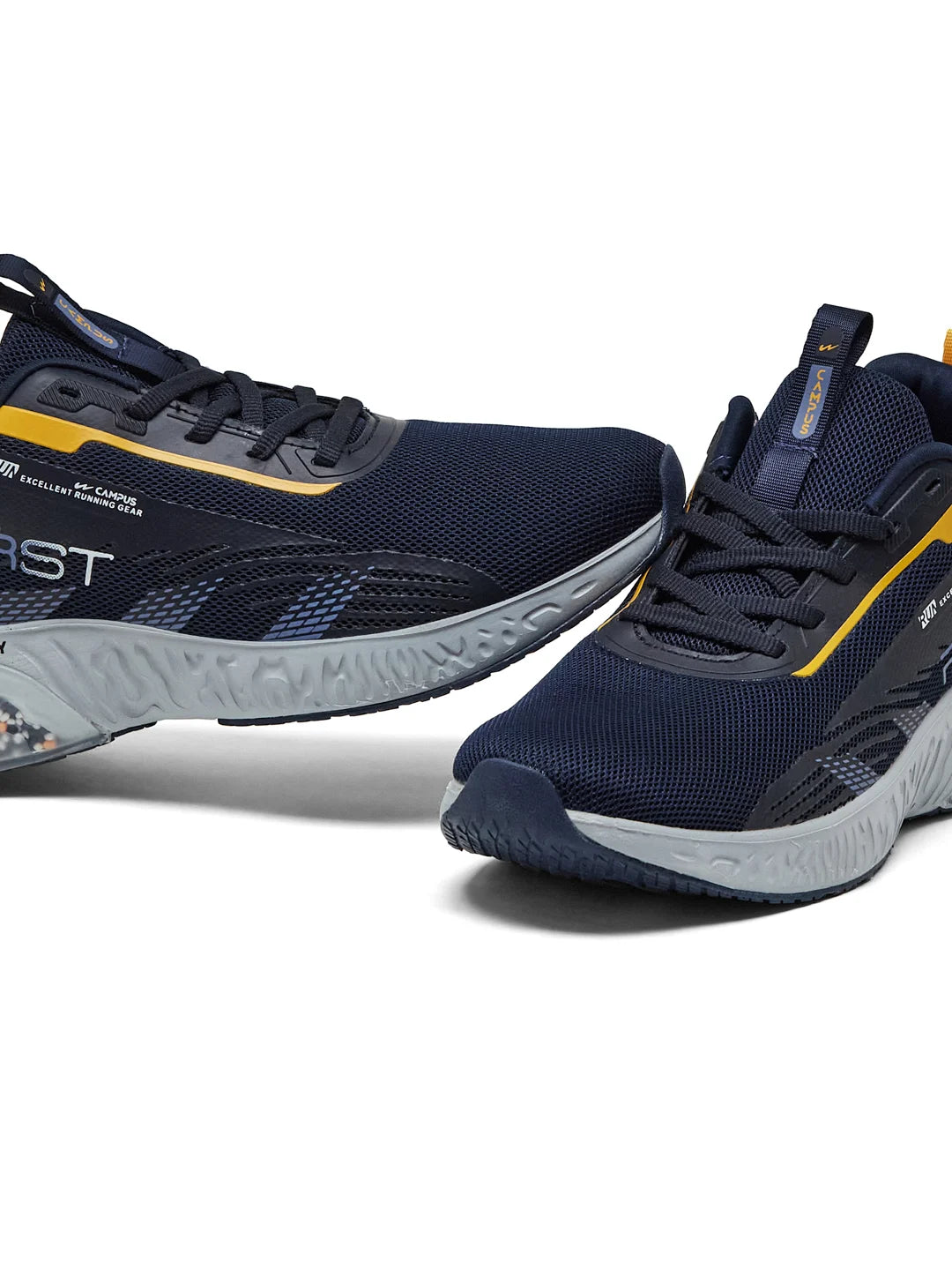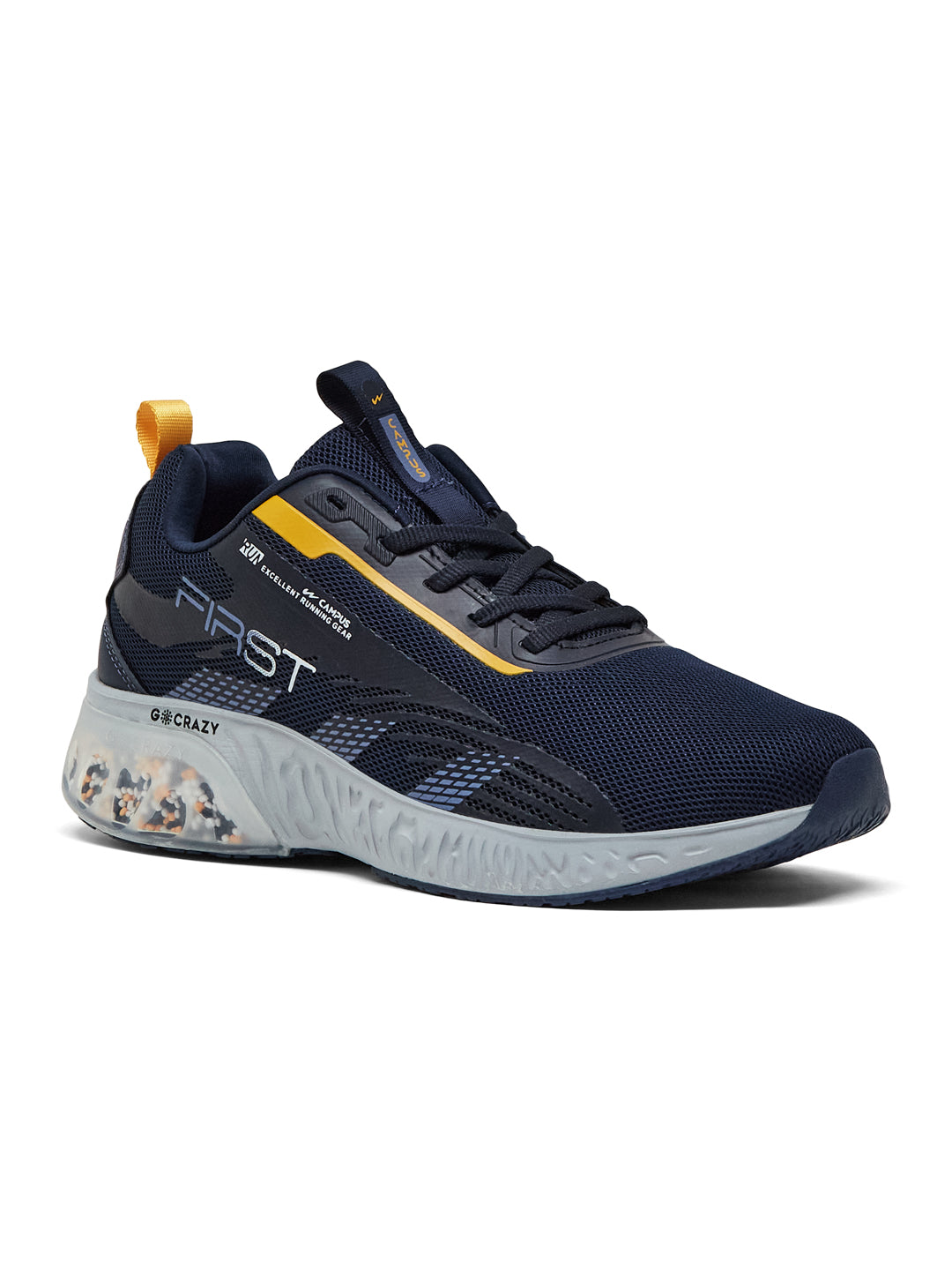 Take on everything from a casual hangout to a dedicated workout with the Campus First Men's Running Shoes. Designed to keep you comfortable, the innovative Ball Technology in the heel makes every step feel ultra-cushioned and packed with superior comfort. The PU foam insole and breathable mesh upper ensure long-lasting ease, while the secure lace-up closure provides a snug fit, reducing the risk of slips. Finished in a sleek navy and mustard colorway, these shoes complement any casual outfit, keeping you stylish and ready for action.
