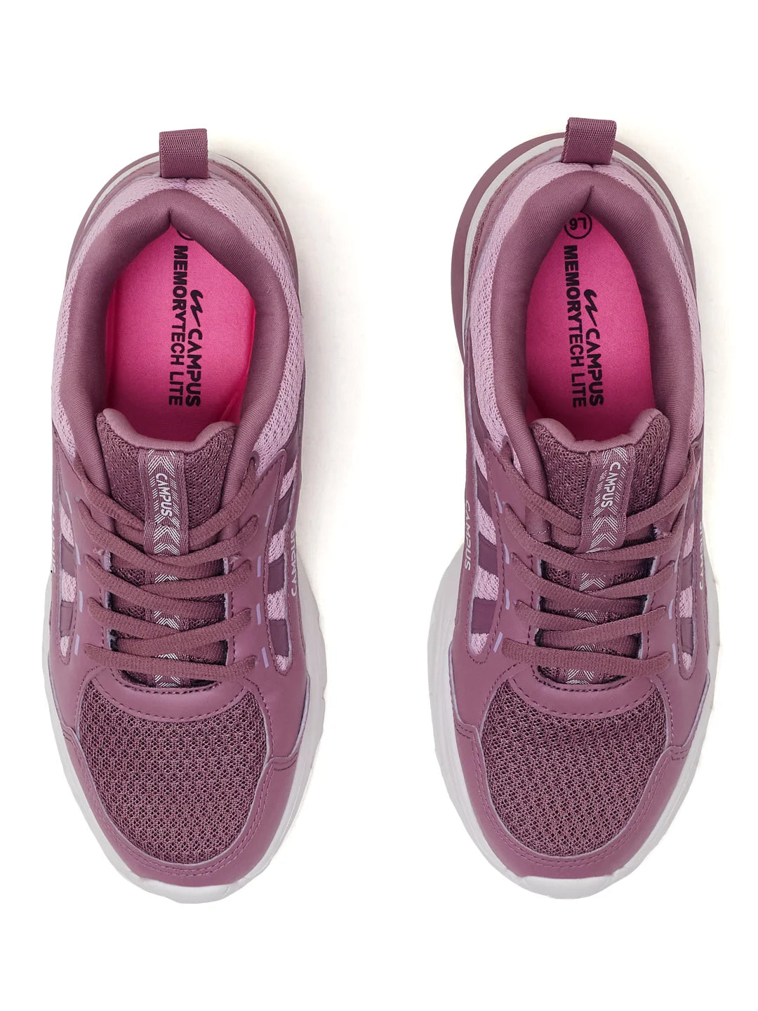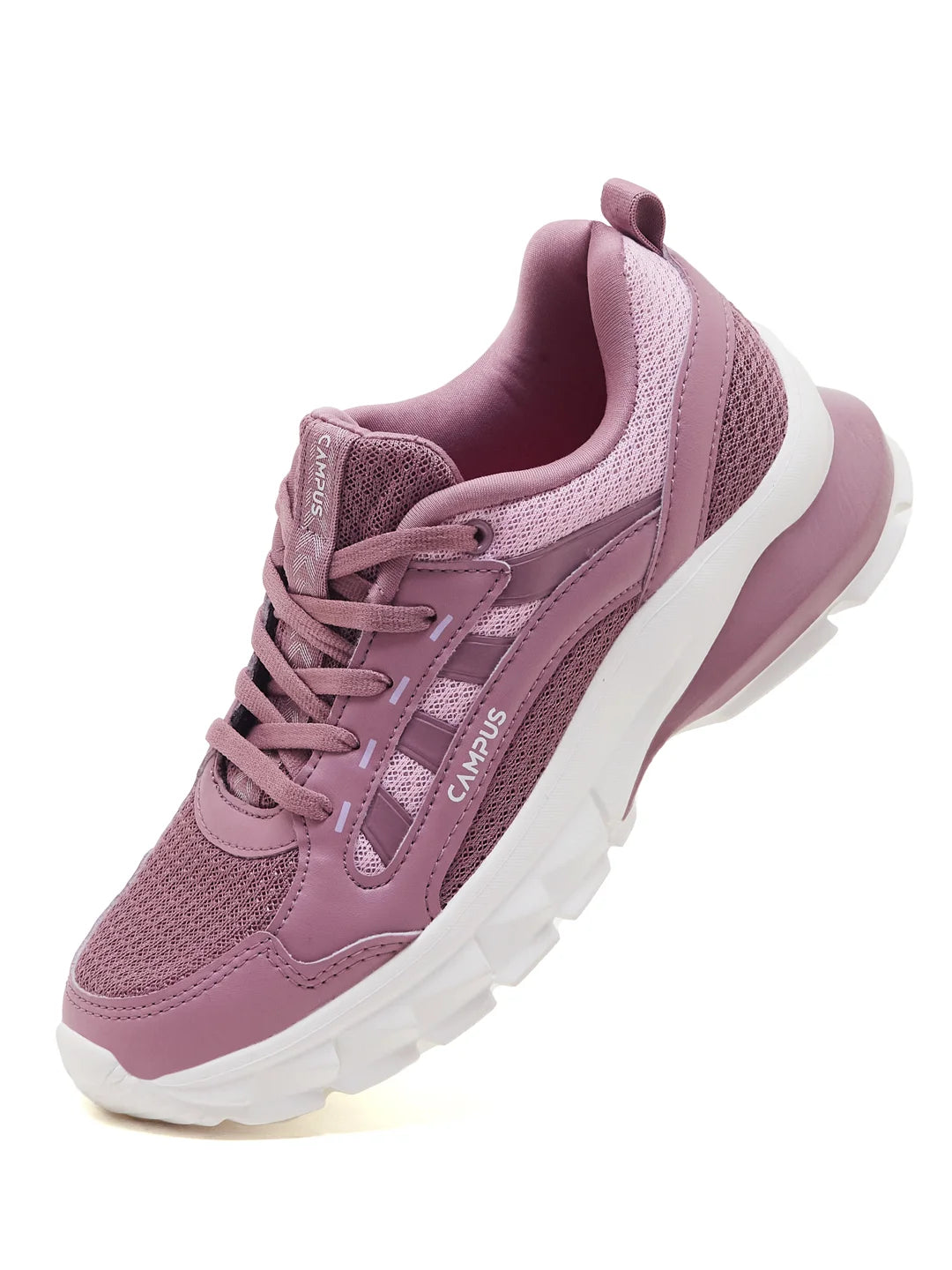 Perfectly designed for the stunning divas out there, Bliss women's sneakers are the elevating kicks your wardrobe needs. In the impressive shades of Pink, these sneaks will add a dash of elegance to your everyday looks. Not just style, the comfort of these cool kicks is also top-notch! The high-quality durable mesh upper is easy to maintain and comfortable, keeping your foot fresh throughout. The Memory Tech Insole offers a custom fit, providing a snug fit for your feet. Now get ready to steal the show wherever you go with Campus!