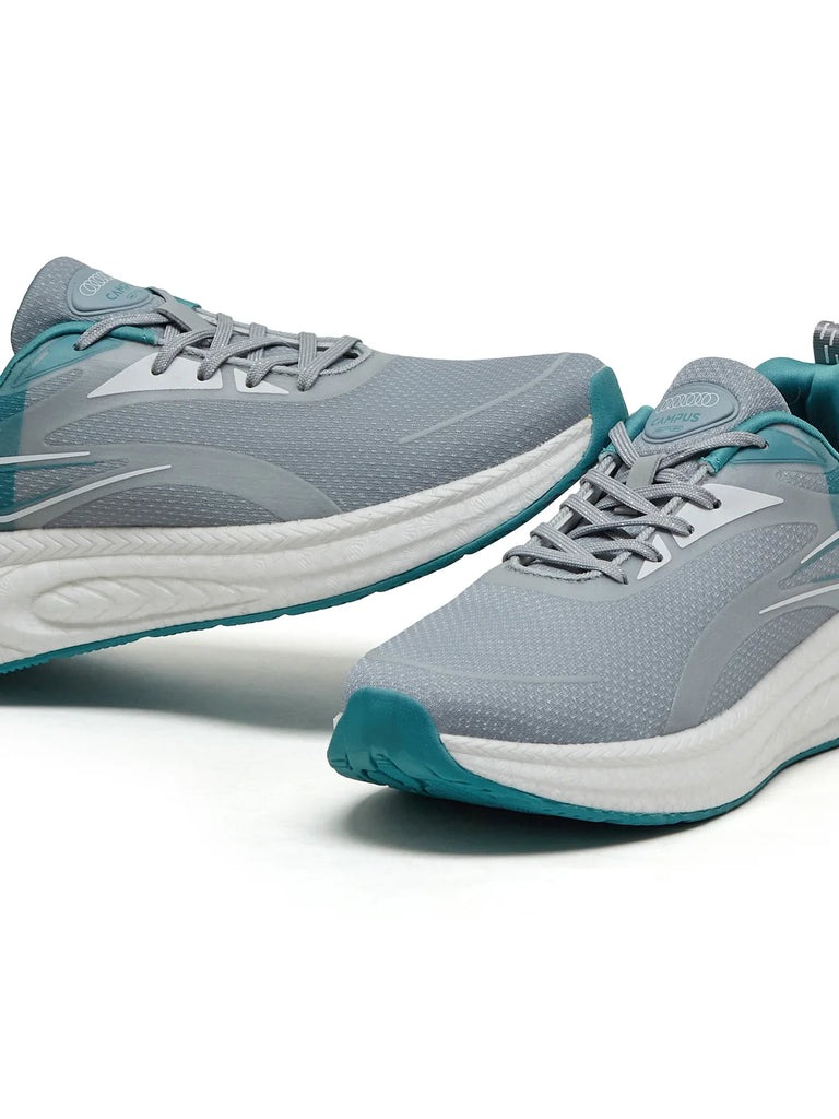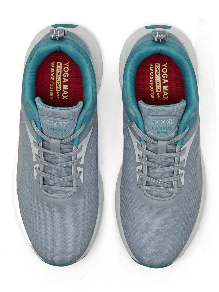 Fresh energy, standout looks — the Campus BOOSTWAVE Men’s Running Shoes in Light Grey & Teal Blue are built to match your pace. The breathable mesh upper with raised print detailing adds both enhanced airflow and style, while the ETPU & TPR sole delivers lightweight flexibility and traction. Thanks to the Bubble Yoga Max insole, every step feels cushioned and effortless, while Nitroboost tech keeps you powered with high-energy return. The light grey base with teal blue accents makes this pair as sharp and energetic as your stride.