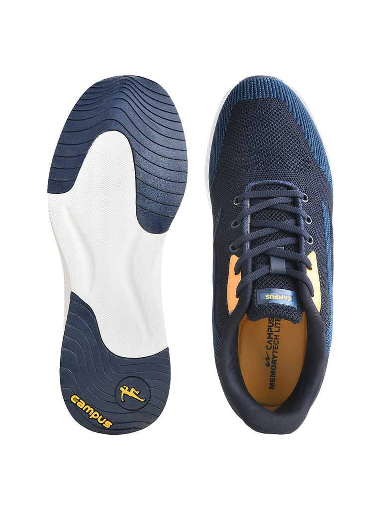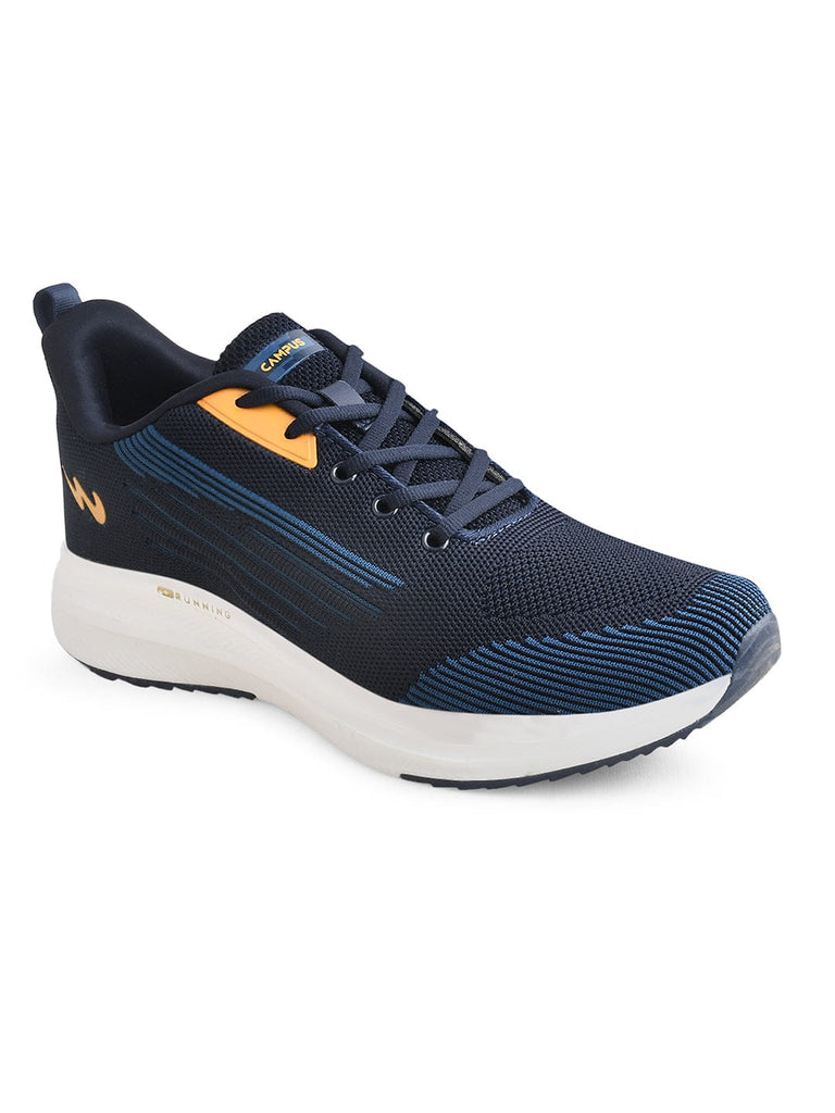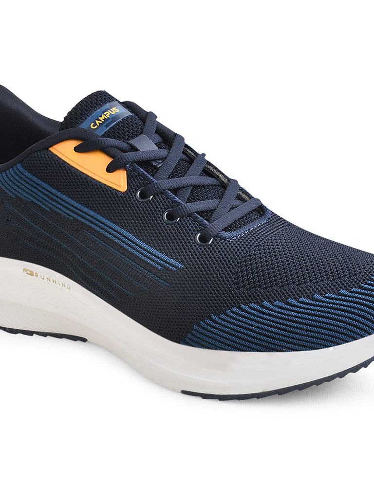 Campus brings you Comfort and support with this pair of running shoes for daily fitness walks. These men's running shoes are built with updated technology that moves air from the heel to the forefoot and back as you move keeping your journey light and comfortable. The breathable mesh upper is made of premium quality which delivers ventilation, and the adjustable lacing system provides a secure fit and its Phylon sole has anti skid feature and is abrasion resistant which adds durability.
