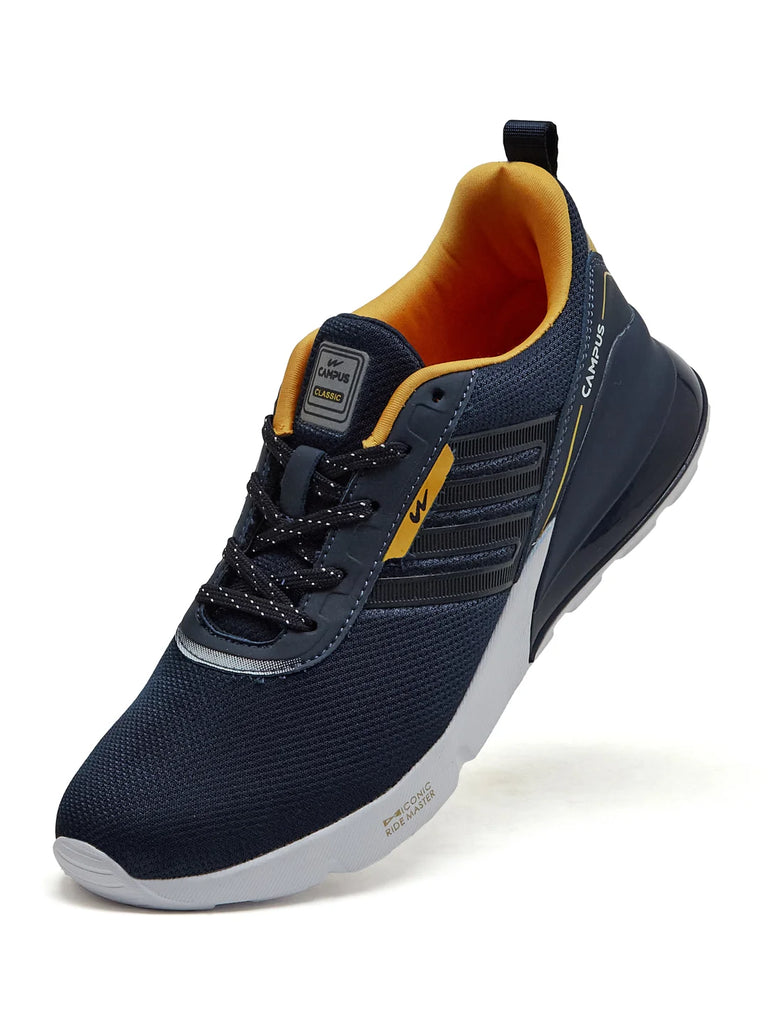 Big moves need bigger energy — that’s where the Campus STAR CH Running Shoes come in! Built with a breathable mesh upper and sturdy PVC overlays, these kicks keep young feet cool and in place. The EVA sole topped with Support-Tech brings the perfect mix of lightness, flexibility, and stability. The Memory Insole adds plush comfort for long hours of fun. Finished in sporty navy with mustard pops, this pair is ready for school races, weekend games, and every adventure in between.