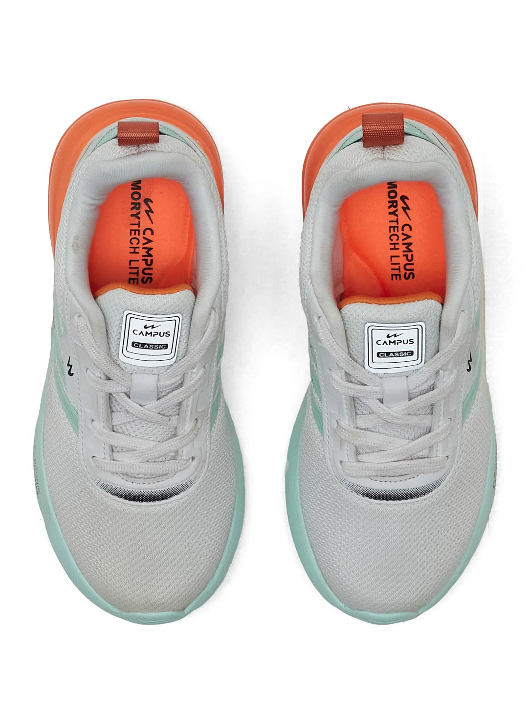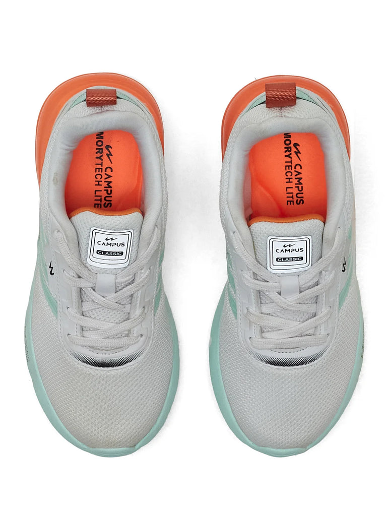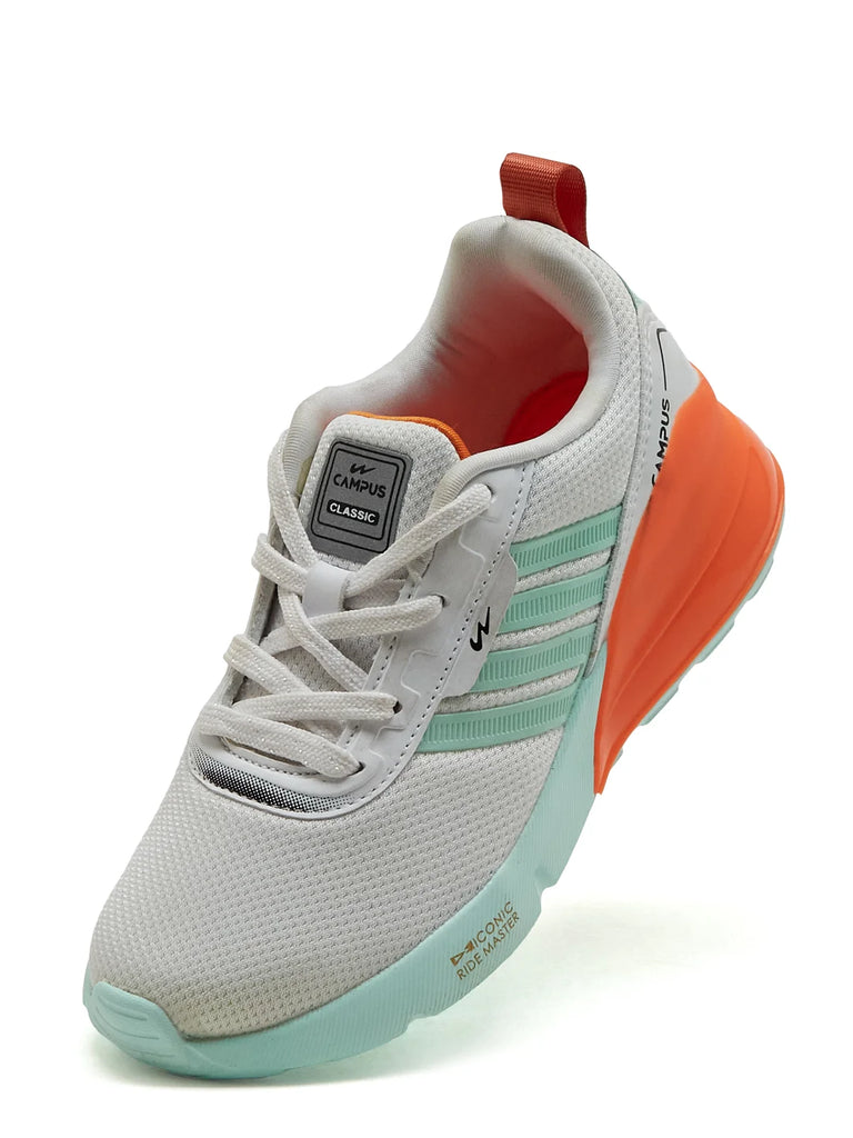 Parents! This is what your lil one wants — the Campus STAR Kids Running Shoes. Comfy, reliable, and made for all things fun, it checks all the boxes. The breathable mesh upper keeps their feet fresh. Underfoot, the EVA sole and the power of Support-Tech bring light, flexible steps and heel support hand in hand. The Memory Insole takes the cushioning to the next level, adapting to the shape of the feet. The white base with a pop of sea green feels fresh and versatile — a colorway that works for school, play, and everything in between.
