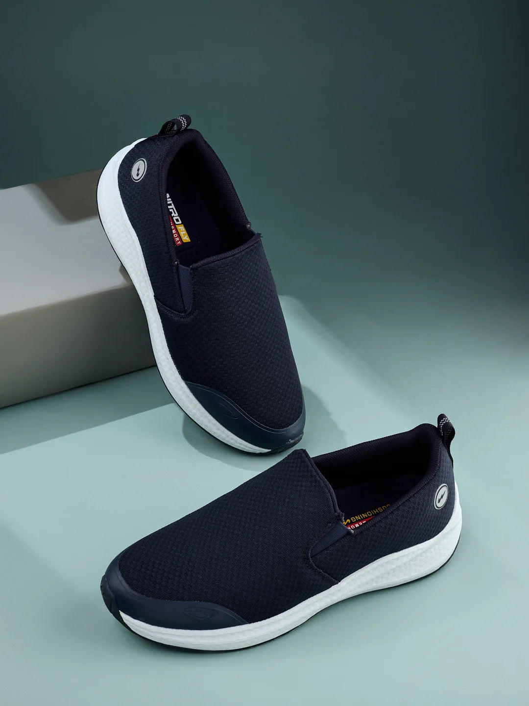 Why pick between casual and sleek when you can flex both? The Campus CIAN Men’s Slip-On Walking Shoes in Navy nail that balance. The elastic mesh upper flexes with every move, giving you that sock-like, custom-feel fit. Inside, the Memory Insole impact cushioning equals instant comfort upgrade (spoiler: your feet will thank you). Add a grippy EVA & TPR sole and you’re set to stay light and steady wherever you’re headed. The fresh navy vibe is versatility unlocked — pair it with joggers, denim, or office-casual fits and you’re golden.