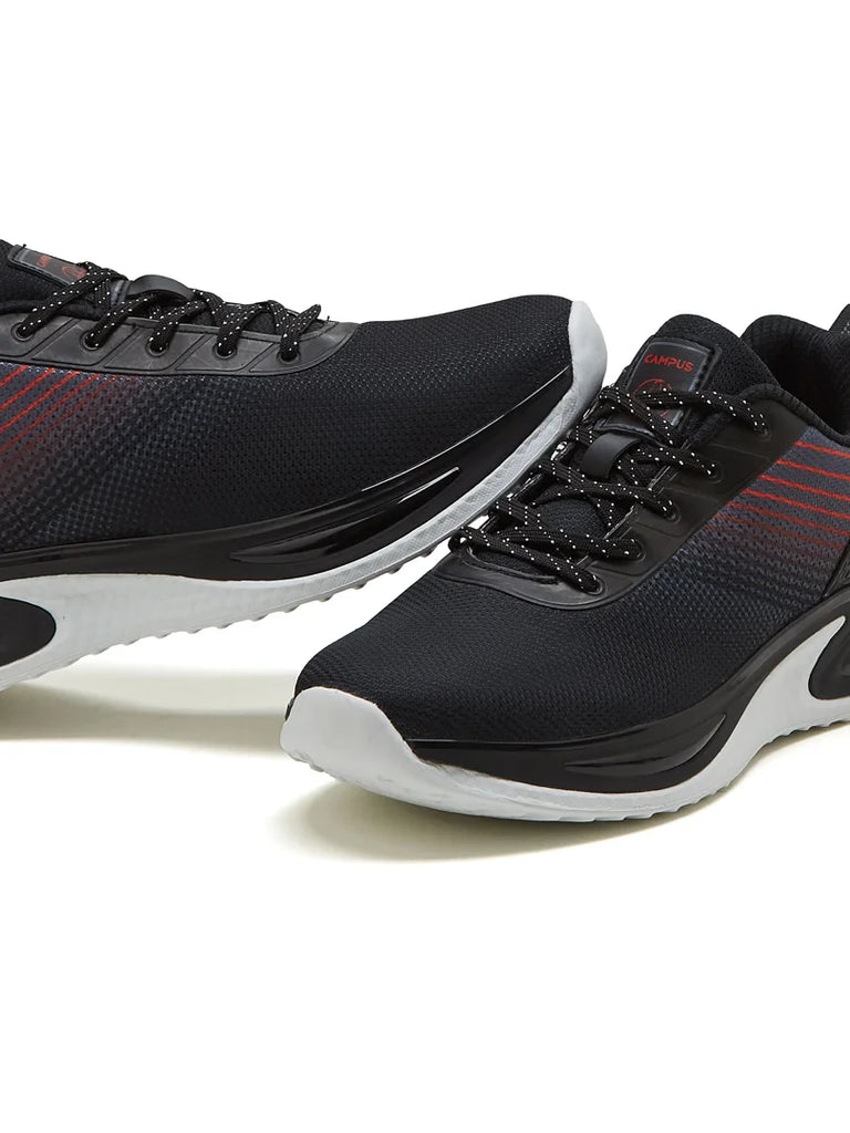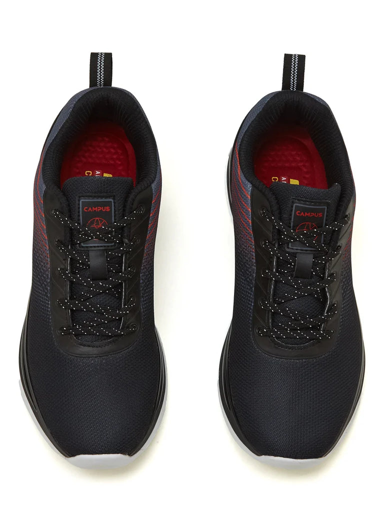 Meet your all-day powerhouse — the Campus CLASH Men’s Running Shoes in Black & Dark Grey. Crafted with a mesh upper featuring sublimation detail, these kicks bring unmatched breathability and structure. The lightweight EVA midsole, Air Capsule Pro cushioning, and Support-Tech stability work together to make every stride smooth, stable, and full of energy. The Memory Foam Insole adds plush comfort that keeps up with you, whether it’s long runs or busy days. With its bold dark tones and athletic build, this pair keeps your look sharp and performance sharper.