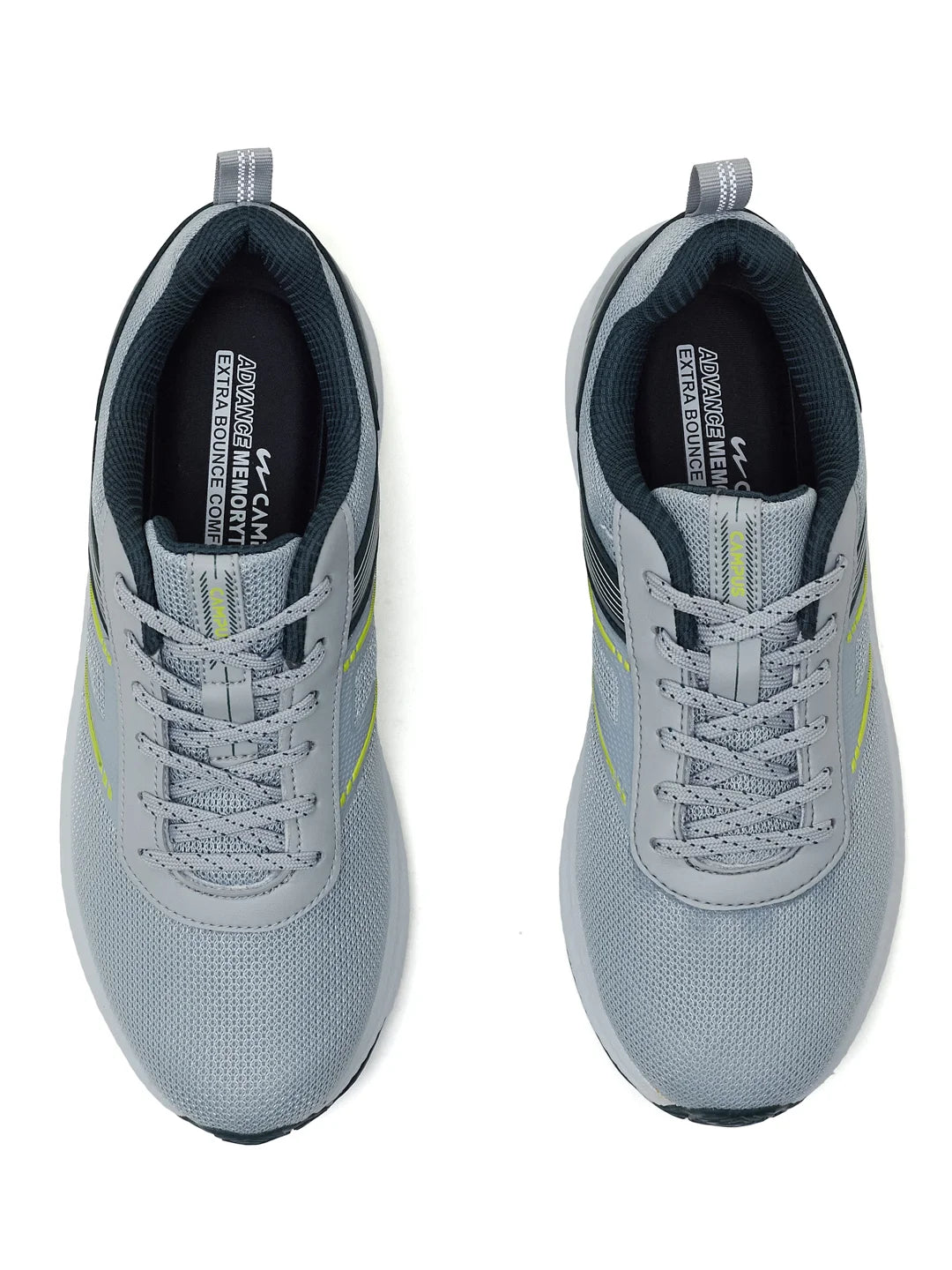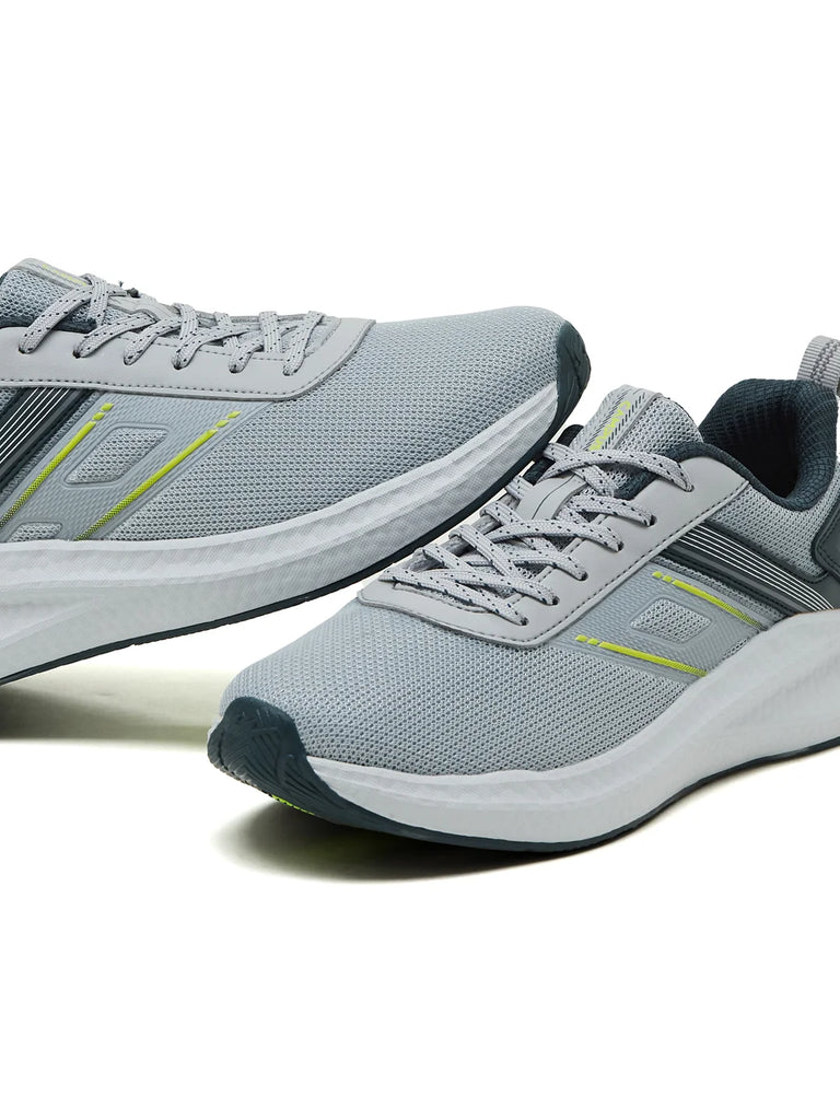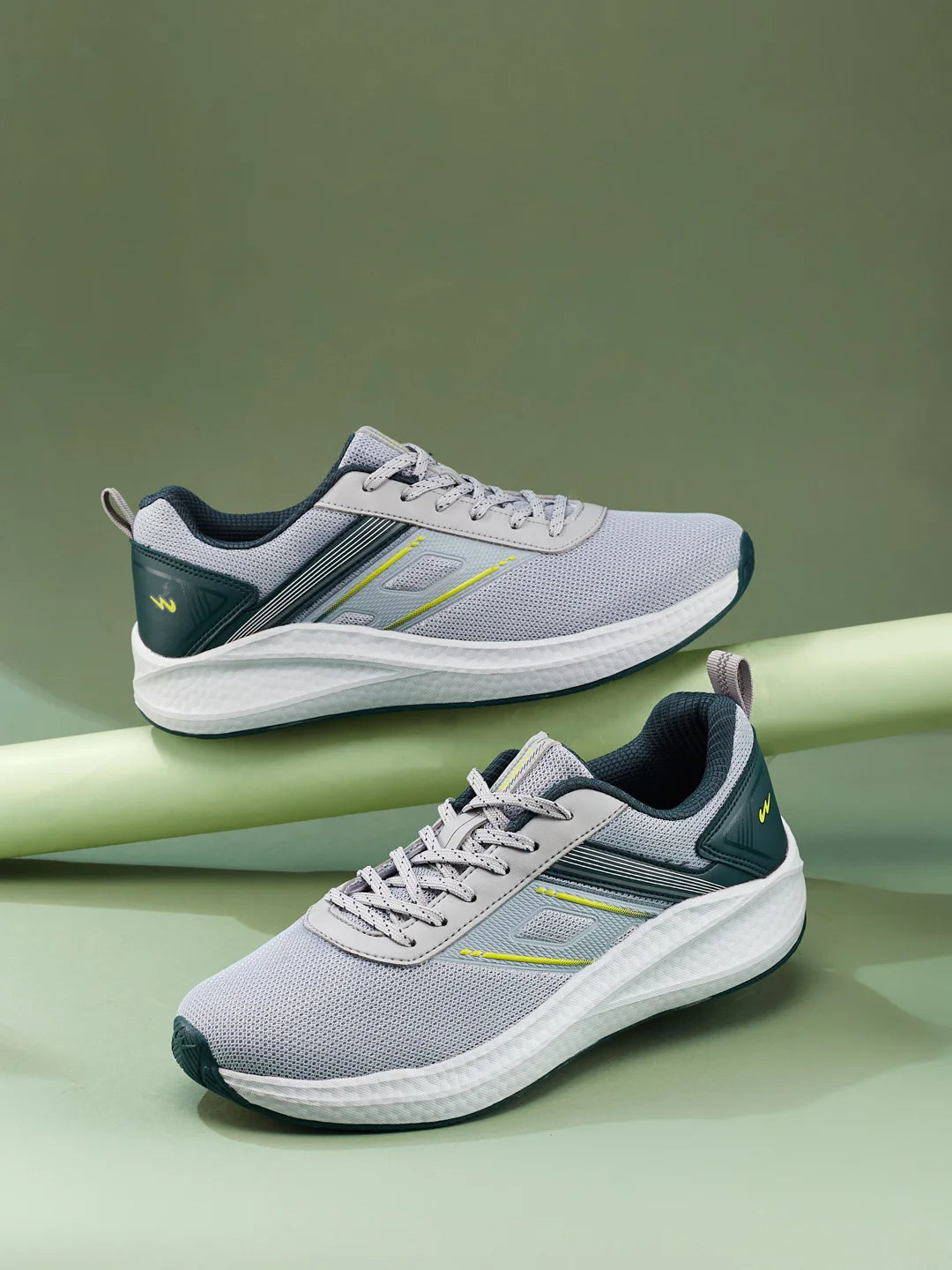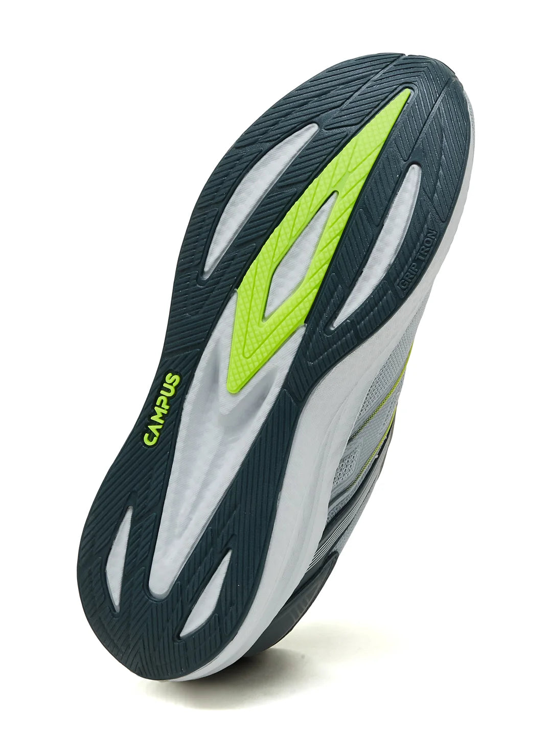 Turn every run into a power move with the Campus COAST Men’s Running Shoes. The airy mesh upper ensures your feet stay fresh and ventilated through every sprint. The EVA midsole brings lightweight flexibility, while the TPR outsole keeps your grip steady across surfaces. Add in the unmatched cushioning of the Memory Extra Bounce Insole, and every stride feels indulged in comfort and non-tiring. With its cool light-grey and teal tones, this pair fuses sporty style with everyday versatility — a perfect fit for training days and casual outings alike.