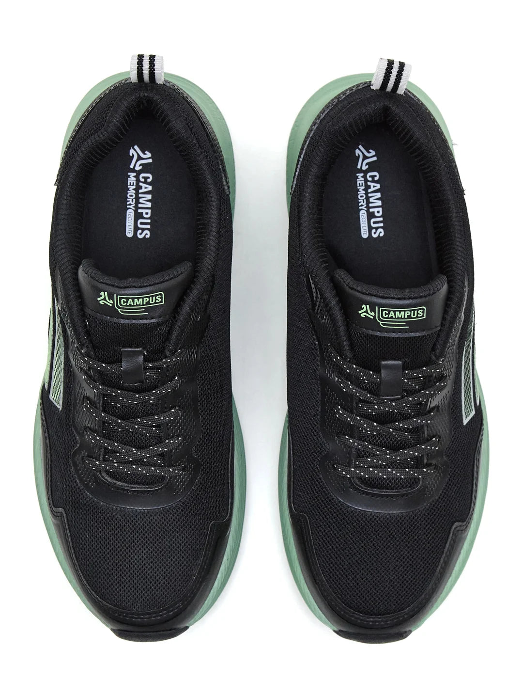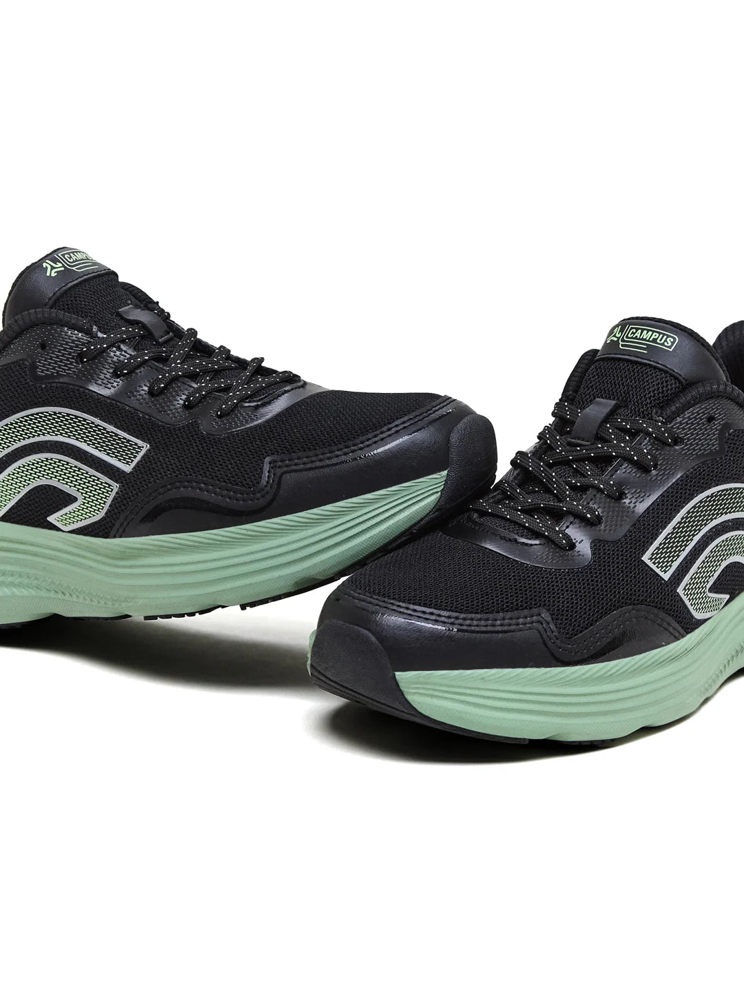 Always in motion, always headed somewhere — the Campus DIRECT Men’s Running Shoes are made for days that don’t slow down. The breathable mesh upper keeps things airy, while the PVC overlay at the toe adds a secure, locked-in feel as you move. Underfoot, the EVA midsole keeps your stride light and responsive, and the TPR outsole with anti-slip sole design delivers reliable grip when you’re moving fast or switching lanes. Inside, the Memory Tech Lite insole adds easy cushioning that supports you through it all. Finished in a sharp black base with a fresh pista hit, this pair feels focused, active, and ready to go wherever the day points you.
