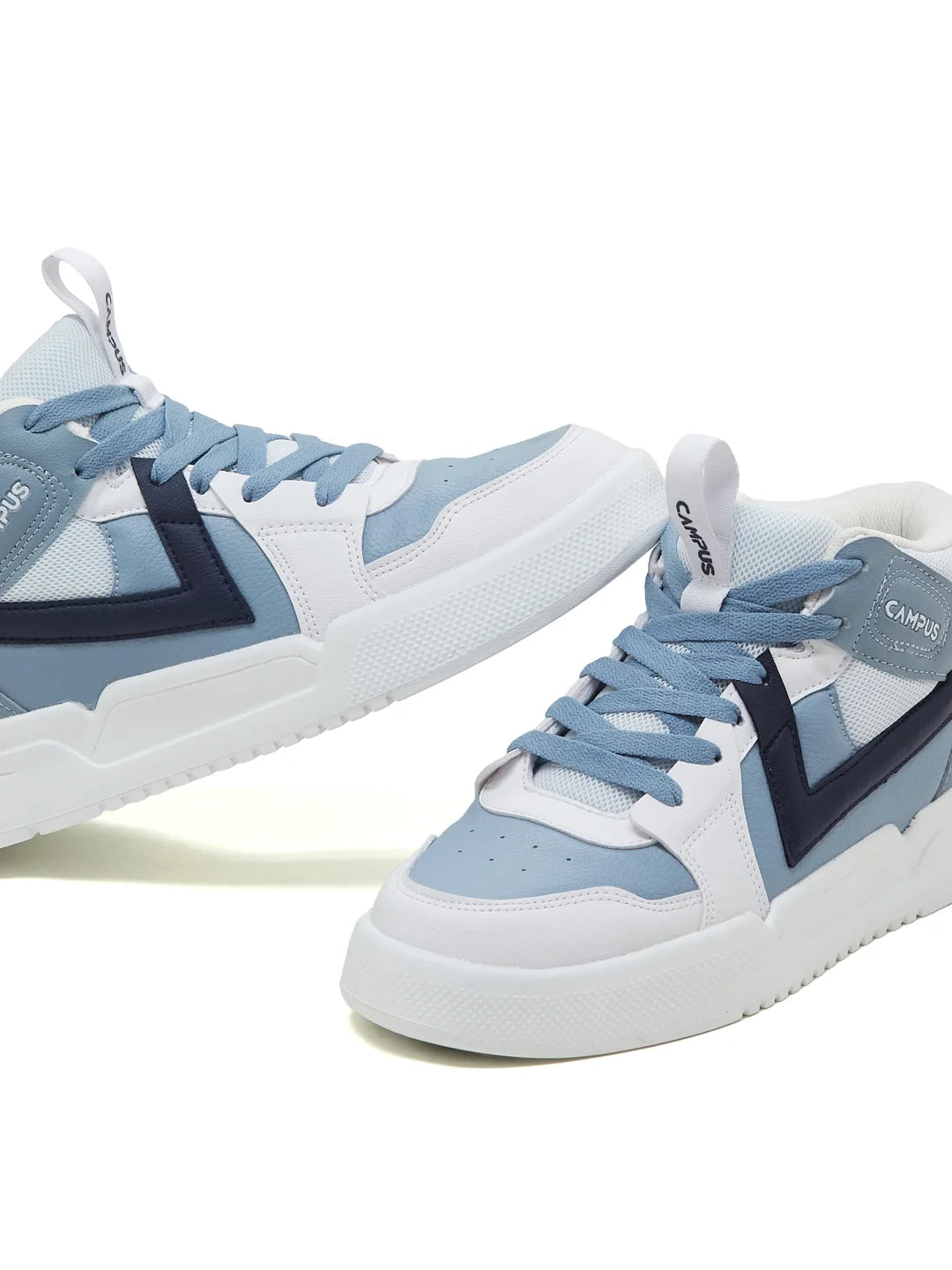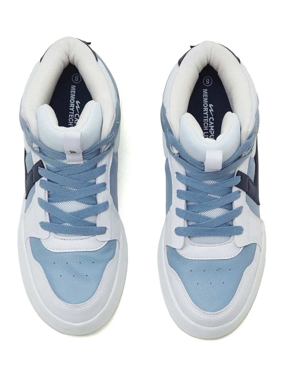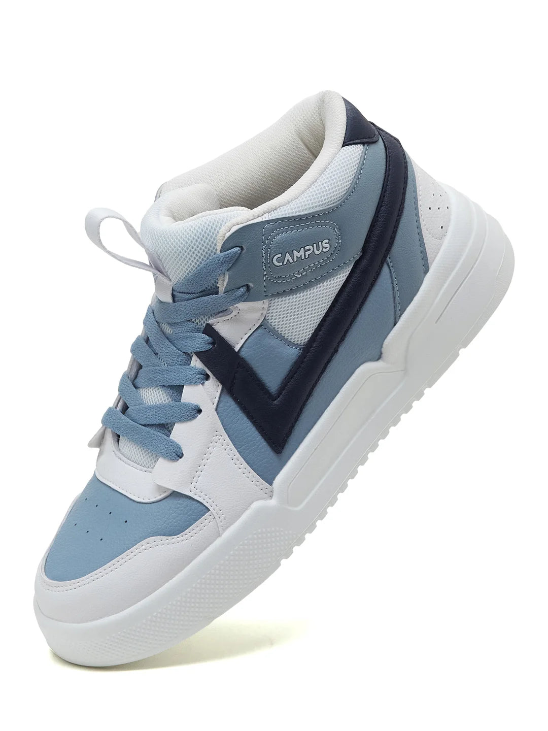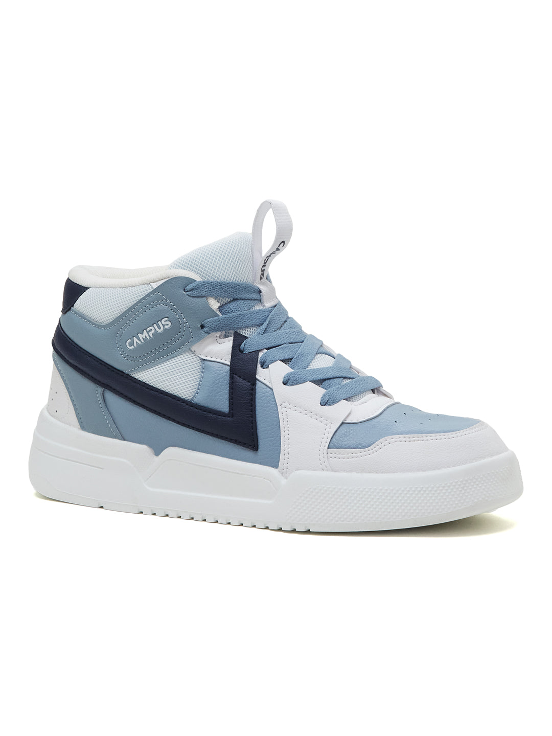 Fresh n’ street-ready — the Campus EAGLE Men's High-Top Sneakers bring boldness to your everyday rotation. The high-top design adds attitude and ankle comfort, while the PVC and mesh upper combo keeps airflow easy without losing that structured edge. The lightweight EVA sole supports smooth movement, and the Memory Insole along with PilloFoam ensures comfort that lasts through long hours. Finished in crisp white with blue accents, this pair hits that perfect balance between cool energy and street style. With this pair, it's only damn good looks!