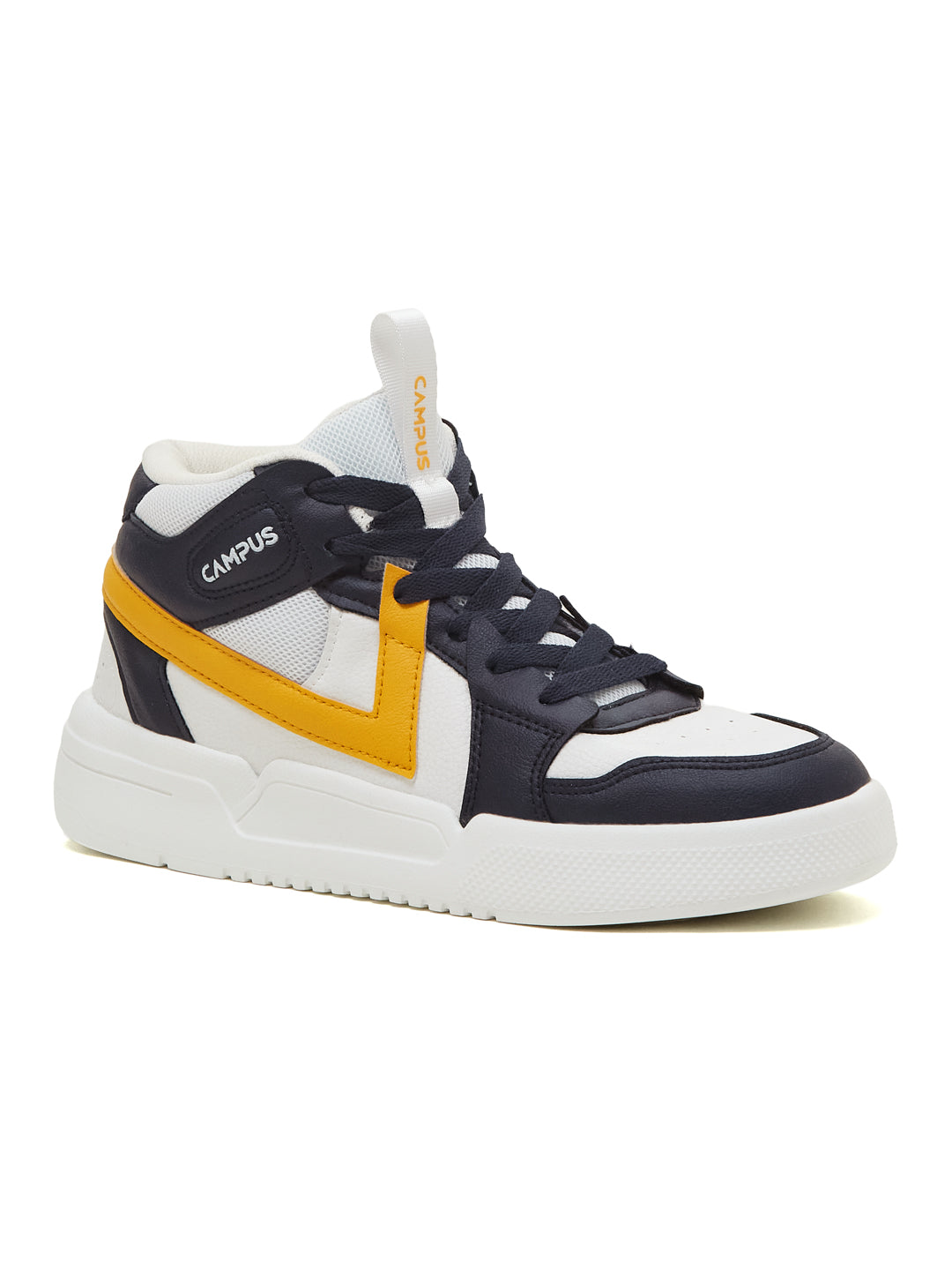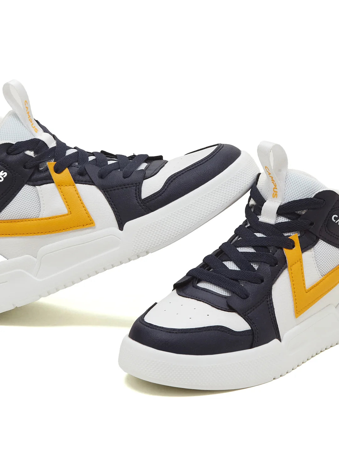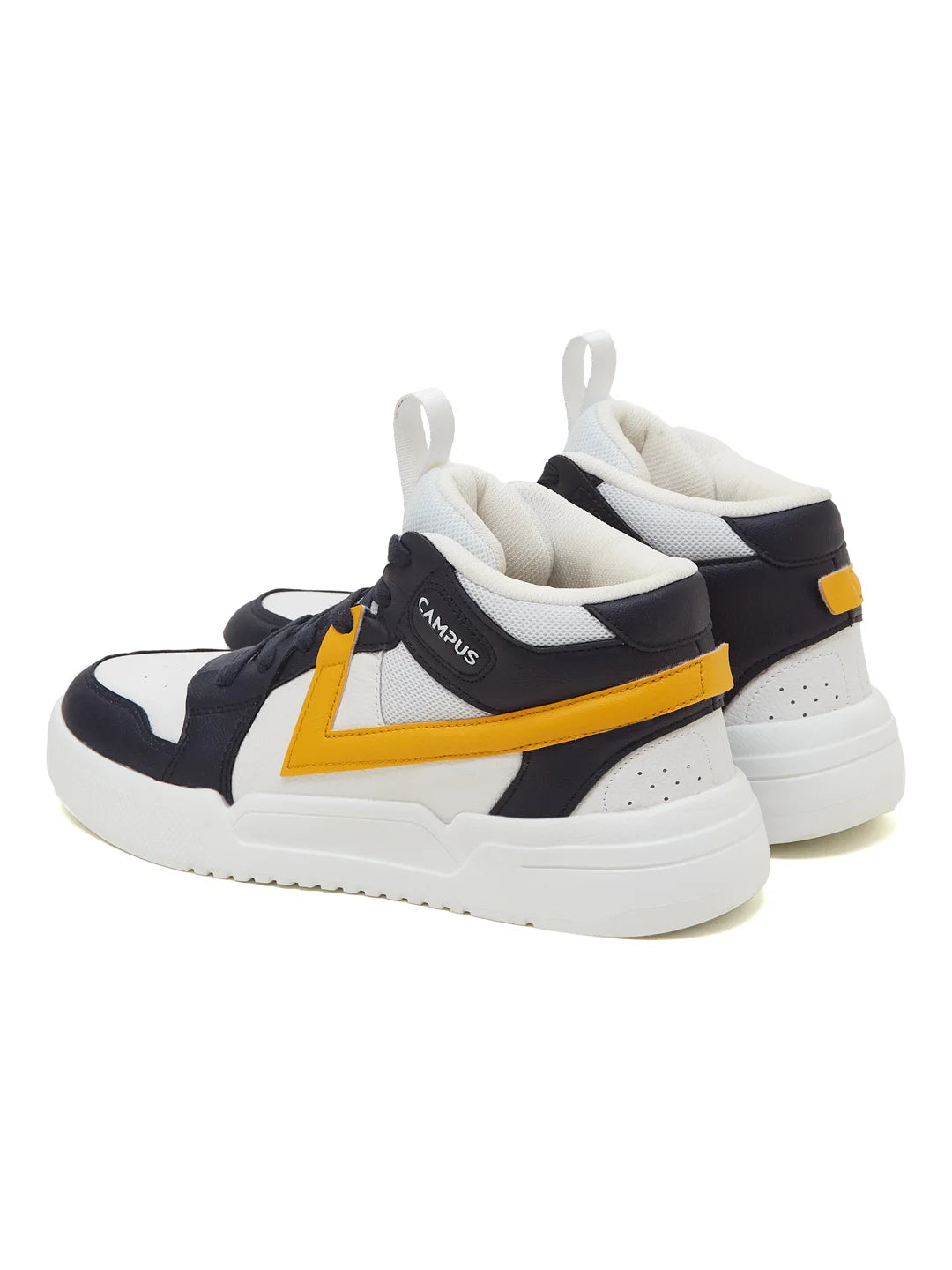 Timeless with a modern twist — the Campus EAGLE Men's High-Top Sneakers are for making that high-style impact. The high-top profile elevates your look and cool quotient instantly. The PVC and mesh upper keeps things breathable yet sharp, while the EVA sole delivers lightweight comfort. The Memory Insole with PilloFoam cushioning keeps your feet relaxed all day. That white and navy base with a yellow pop? Endlessly versatile — perfect for smart-casual days, weekend plans, or everyday streetwear with polish!