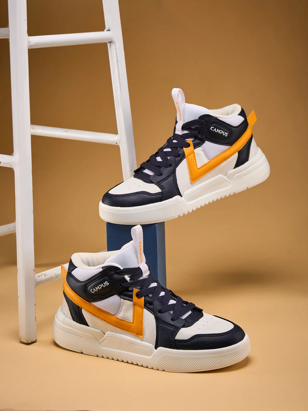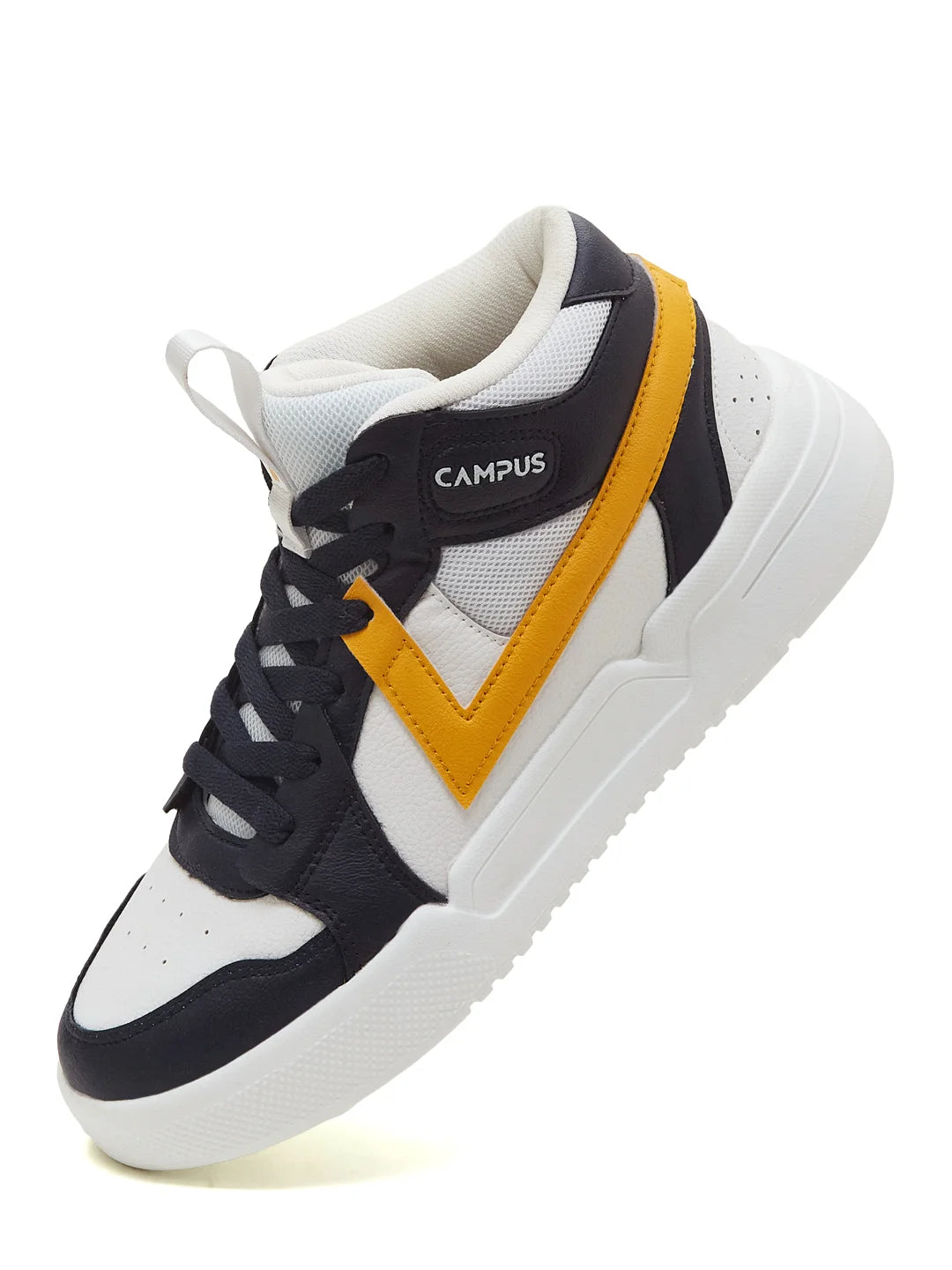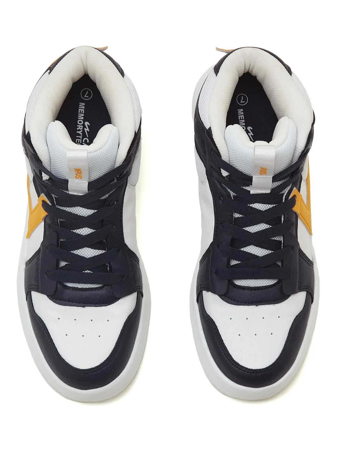 Timeless with a modern twist — the Campus EAGLE Men's High-Top Sneakers are for making that high-style impact. The high-top profile elevates your look and cool quotient instantly. The PVC and mesh upper keeps things breathable yet sharp, while the EVA sole delivers lightweight comfort. The Memory Insole with PilloFoam cushioning keeps your feet relaxed all day. That white and navy base with a yellow pop? Endlessly versatile — perfect for smart-casual days, weekend plans, or everyday streetwear with polish!