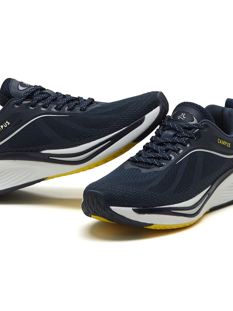 Lace up and feel the smooth control! The Campus EXPRESS Men’s Running Shoes in Navy & Silver are built for go-getters who chase it all, in style. Every step feels effortless with the EVA midsole and TPR outsole working together for flexible, stable steps. The Nitrofly tech adds that feather-light feel, keeping you agile and fast. Inside, the Bubble Yoga Max Insole offers deep cushioning for premium comfort, while Support-Tech enhances lateral stability during quick movements. With a breathable vamp featuring subtle raised printing, this pair blends understated style with substance, nailing 'em runs, gym sessions, or busy active days!