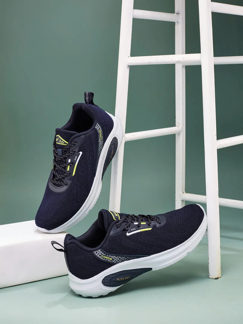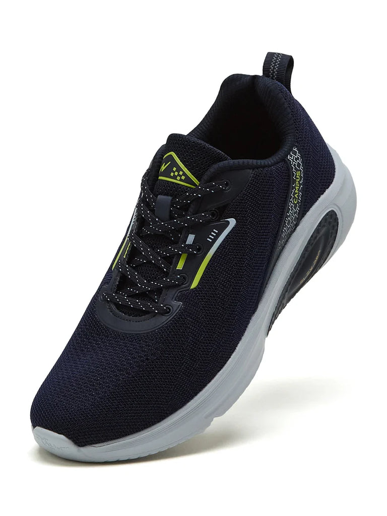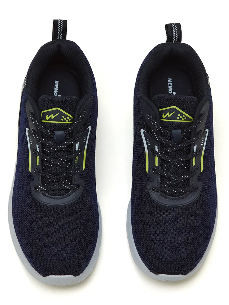Comfort, redefined with the Campus FADE Men’s Running Shoes. Delivering effortless wear for runs and beyond, these feature a soft vamp upper that ensures breathability and a snug fit. While you continue to crush your goals, the EVA sole keeps things light on your feet — nothing stopping or weighing you down! The Memory Insole with Pillofoam cushioning adds that extra bounce of comfort from your first step to your last. With its cool navy tones and pista-green accents, this pair blends sporty freshness with understated style.