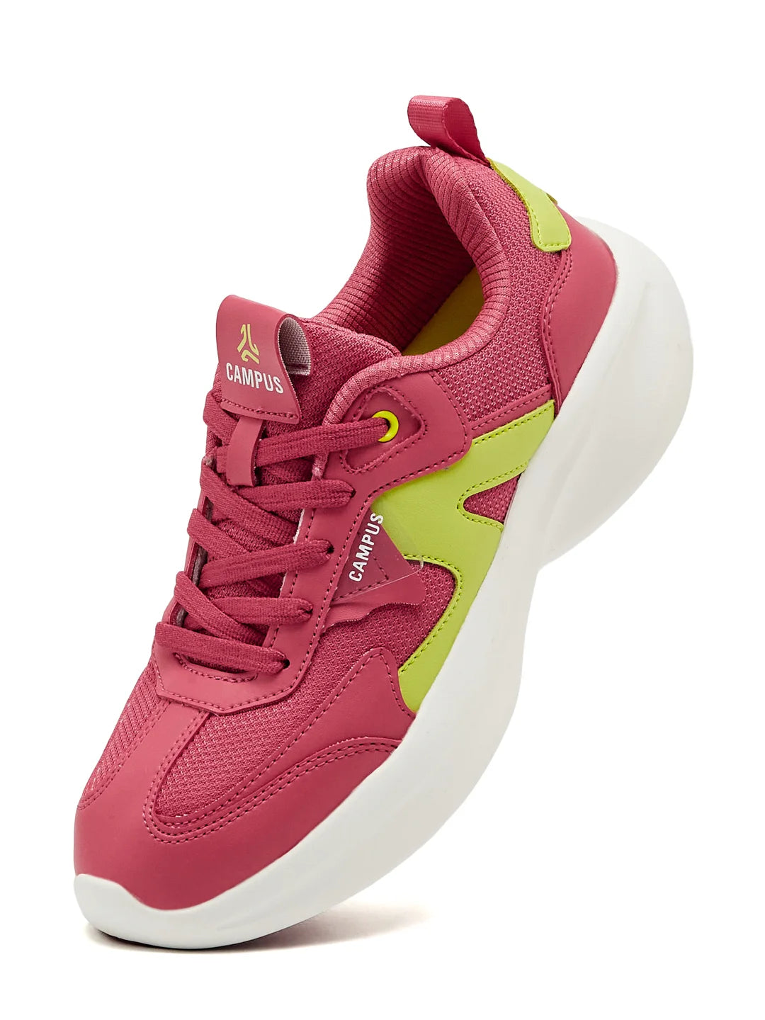 Bold colour, big attitude, zero hesitation — the Campus FILT Women’s Sneakers are made for standing out. The mesh and PVC upper keeps things breathable while holding a structured, fashion-forward shape. Beneath you, the chunky EVA midsole delivers that elevated feel without weighing you down, giving every step a confident, grounded bounce. The Memory Insole adds soft, step-in comfort that keeps things easy even on long days. With its striking pink base and electric lime accents, this pair is pure statement energy — fun, fearless, and perfect for days when your sneakers lead the look.