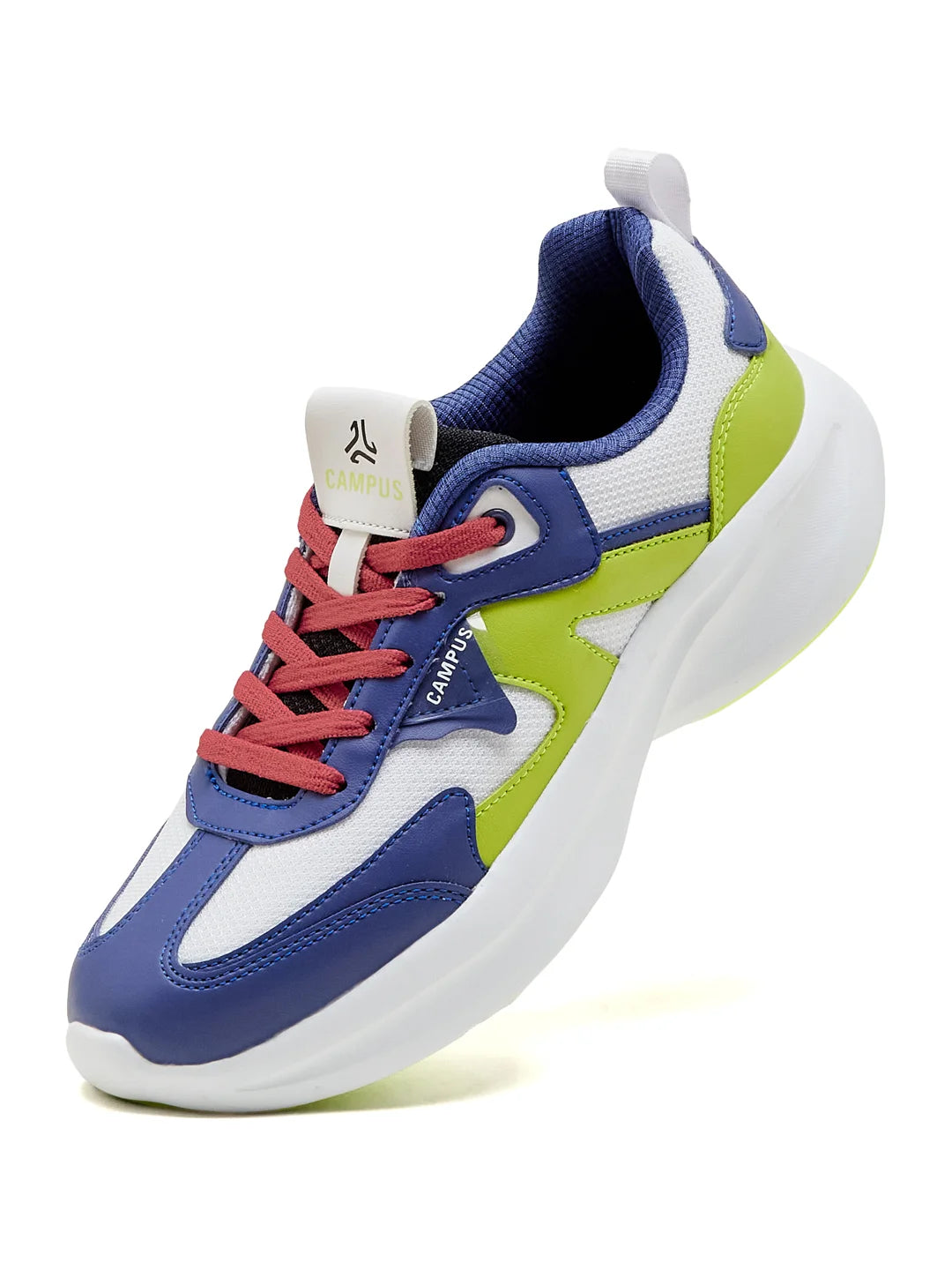 Bold, confident, and a little bit sporty — the Campus FILT Women’s Sneakers in royal blue make an instant statement. The mesh and PVC upper keeps airflow high and comfort steady, while adding a crisp texture that stands out without trying too hard. The stylised EVA midsole adds a light, flexible feel to each stride, and the TPR outsole locks in reliable traction wherever you go. The Memory Insole delivers soft, cloud-like cushioning that feels custom to your feet. Paired with crewnecks, hoodies, or your favourite joggers, this vibrant blue-green pair, with pop of red, is made for days when you want your sneakers to do the talking!