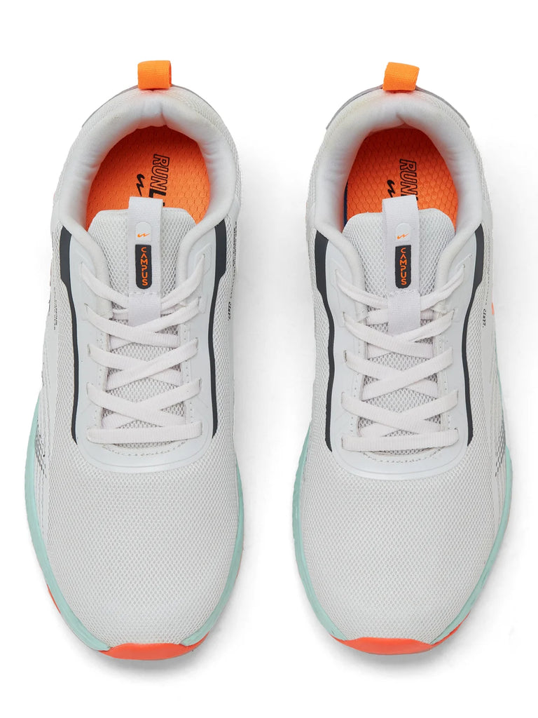 Hang out with friends, go for jogs, hit the gym, or play your favorite sport - do it all with the First Men's Running Shoes by Campus. Featuring Ball Technology, aka thousands of tiny crazy balls in the heel, these kicks achieve new levels of cushioning, making every step oh-so-great! With a PU foam insole and mesh upper, trust these shoes to give you a comfy time for long. Further, the secure lace-up closure negates the chances of accidental falls while also adding to the overall look and the black & silver colorway effortlessly pairs with all your everyday casuals, keeping you ready for the streets, all the time!