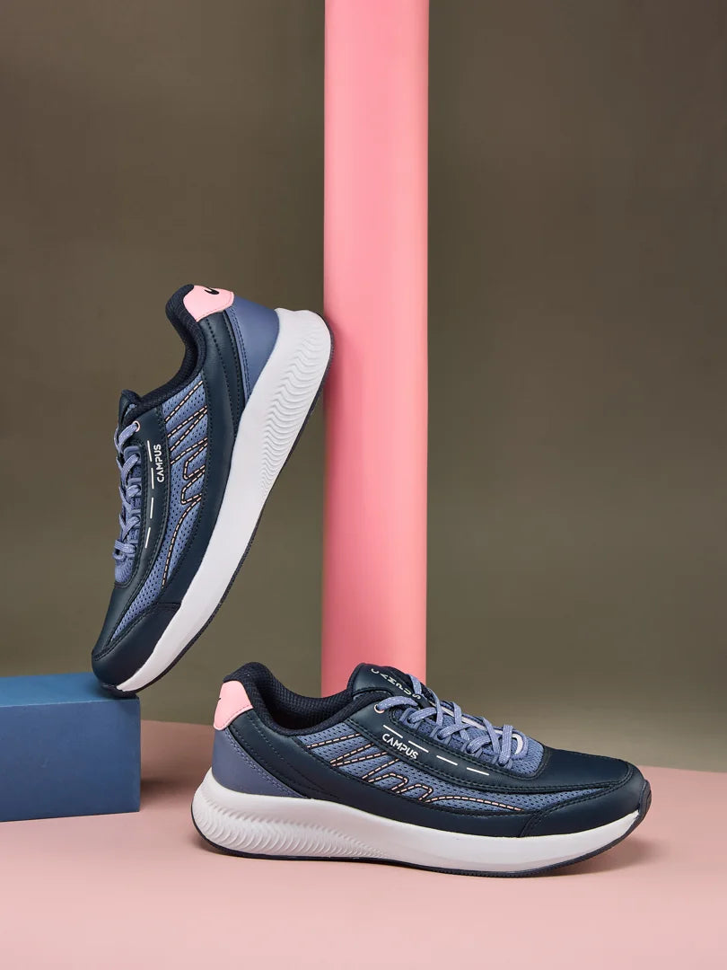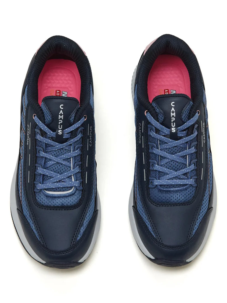 Push limits, break barriers, look stylish, repeat. The Campus FLAIR Women's Running Shoes are designed for those who move with intention and power. The breathable mesh upper keeps air flowing freely, while the Memory Insole delivers cushioning with every stride. The EVA midsole keeps things light and agile, and the TPR sole with anti-slip design grips confidently whether you're on the track or the pavement. That navy and royal slate combination? Bold, sleek, and unapologetically athletic — a look that matches your energy and ambition.