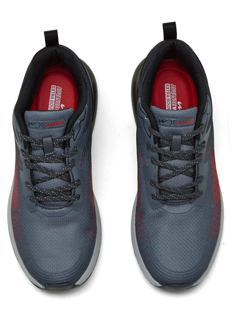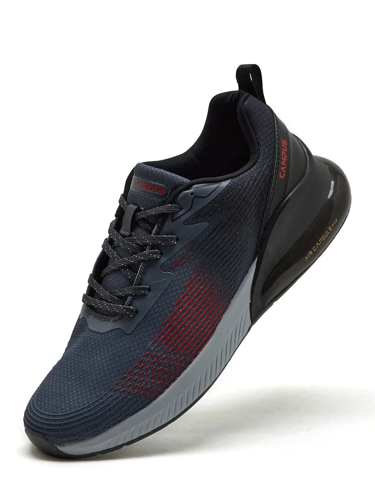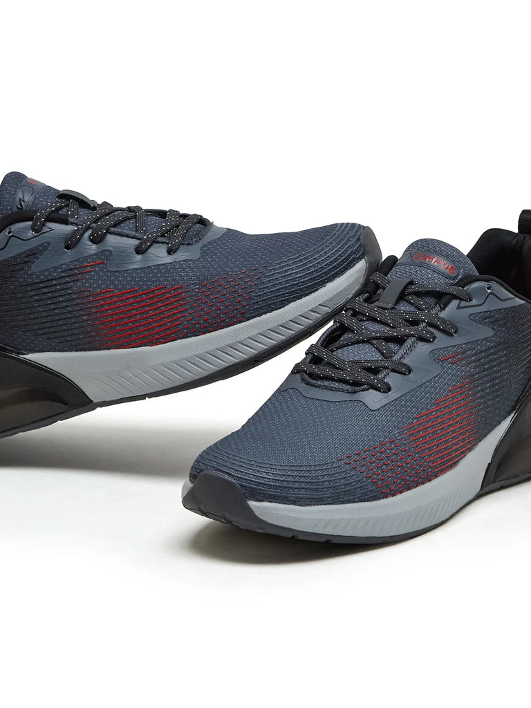 Fuel your stride with the Campus FLEXPOWER Men’s Running Shoes in Dark Grey & Black! Built for those who push limits, the breathable mesh upper with raised print detailing keeps your feet airy while adding a bold, sporty edge. The EVA midsole paired with the TPR outsole delivers lightweight, flexible steps with confident traction on every surface. Step into all-day comfort with the Memory Extra Bounce Insole, while Support-Tech gives stability at the heel. Ultimately, Air Capsule Pro brings in impact cushioning, transforming the entire walking experience. The dark grey with black accents and a hint of red keeps your look sleek and unstoppable—perfect for morning runs, gym sessions, or powering through the day in style!