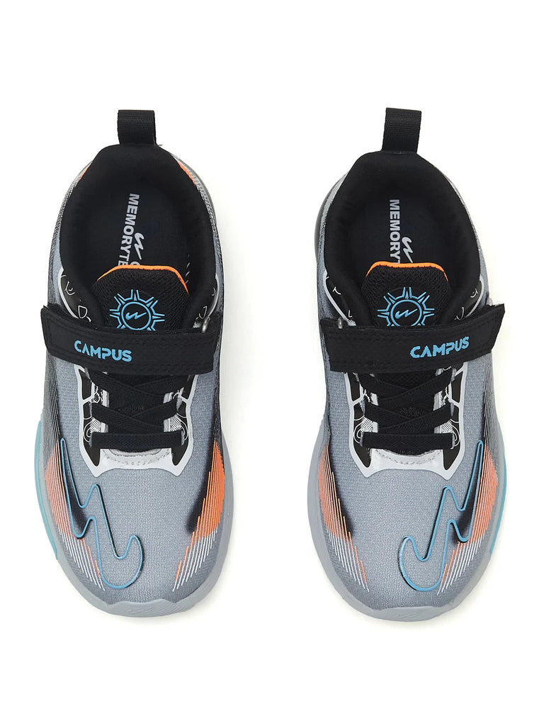 Built for play, fun, and everything in between — the Campus FLYRO Kids’ Running Shoes keep every step full of energy! The breathable mesh upper keeps feet cool n' comfy all day long. The EVA +midsole ensures light, flexible movement so the little ones know no hinderance. The Support-Tech adds stability for those quick dashes and jumps. Inside, the Memory Insole makes for an ultra soft and cushioned footbed, so comfort never takes a back seat. In a sleek light grey and black combo, with colorful pops, these kicks are as dashing as they are sturdy!