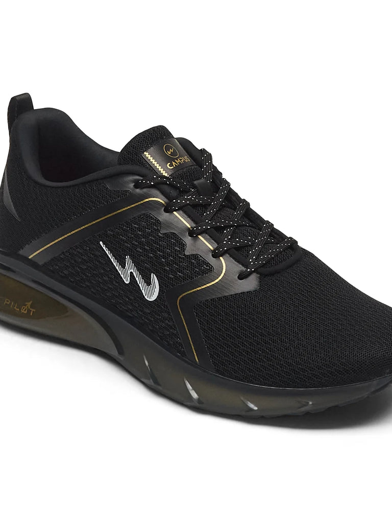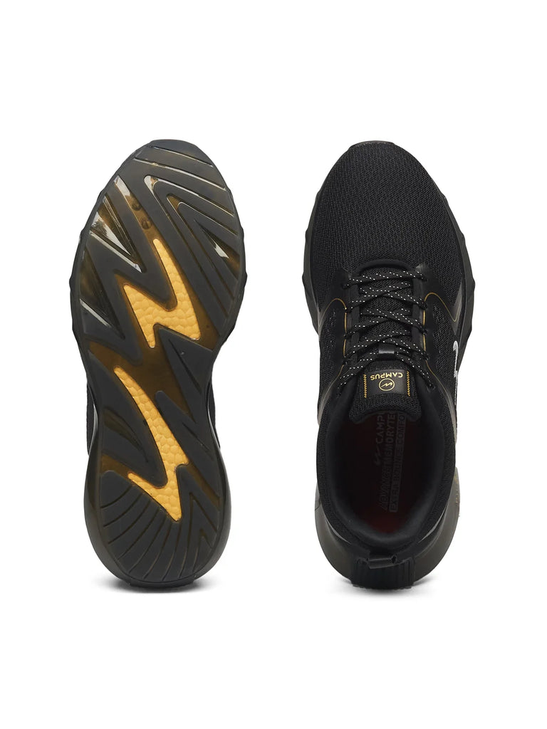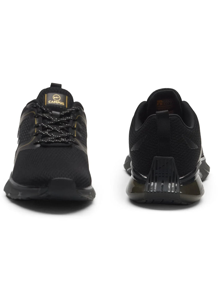 Chase greatness in bold style with the Campus GAVIN Men's Running Shoes in black and golden. The mesh upper with raised printing creates a dynamic texture that’s breathable yet statement-worthy. Underfoot, the Memory Extra Bounce insole cushions every stride, while the EVA and TPU sole keeps your steps light, stable, and comfy. Whether you’re powering through your run or stepping out for the day, this pair brings an edge of gold to your hustle.