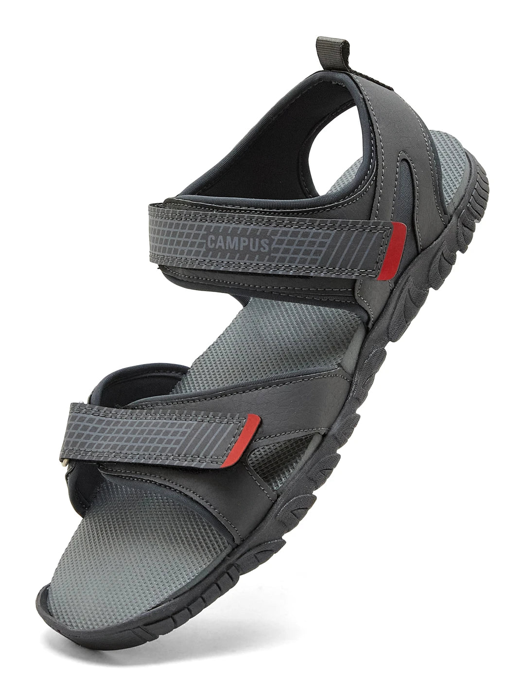 Sporty energy, everyday comfort. Campus GC-22101 Men’s Sandals bring that active edge to your daily routine. Constructed with a PVC upper and an EVA footbed, the pair stays durable, light, and cushioned for all the adventures on your to-do list. The lycra lining beneath the straps keeps the feel soft, while the dual velcro straps make slipping in quick and adjusting the fit effortless. To really lock things in, the rugged TPR outsole steps in, adding traction and confidence to every move. The grey hue keeps it very everyday-ready, while the bits of red bring just enough detail to the design.