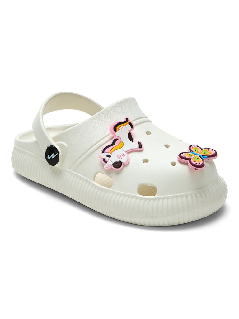 Whimsical and wonderful, the Campus GC-9002K Kids’ Clogs in white are a magical addition to your child’s wardrobe. Topped with a colorful unicorn and butterfly charm, these clogs bring a world of imagination to life! The lightweight and cushioned EVA ensures they’re comfortable enough for all-day play and everyday adventures. Easy to slip on and oh-so-stylish, these clogs have that fairytale flair, a must-have for kids with big dreams!