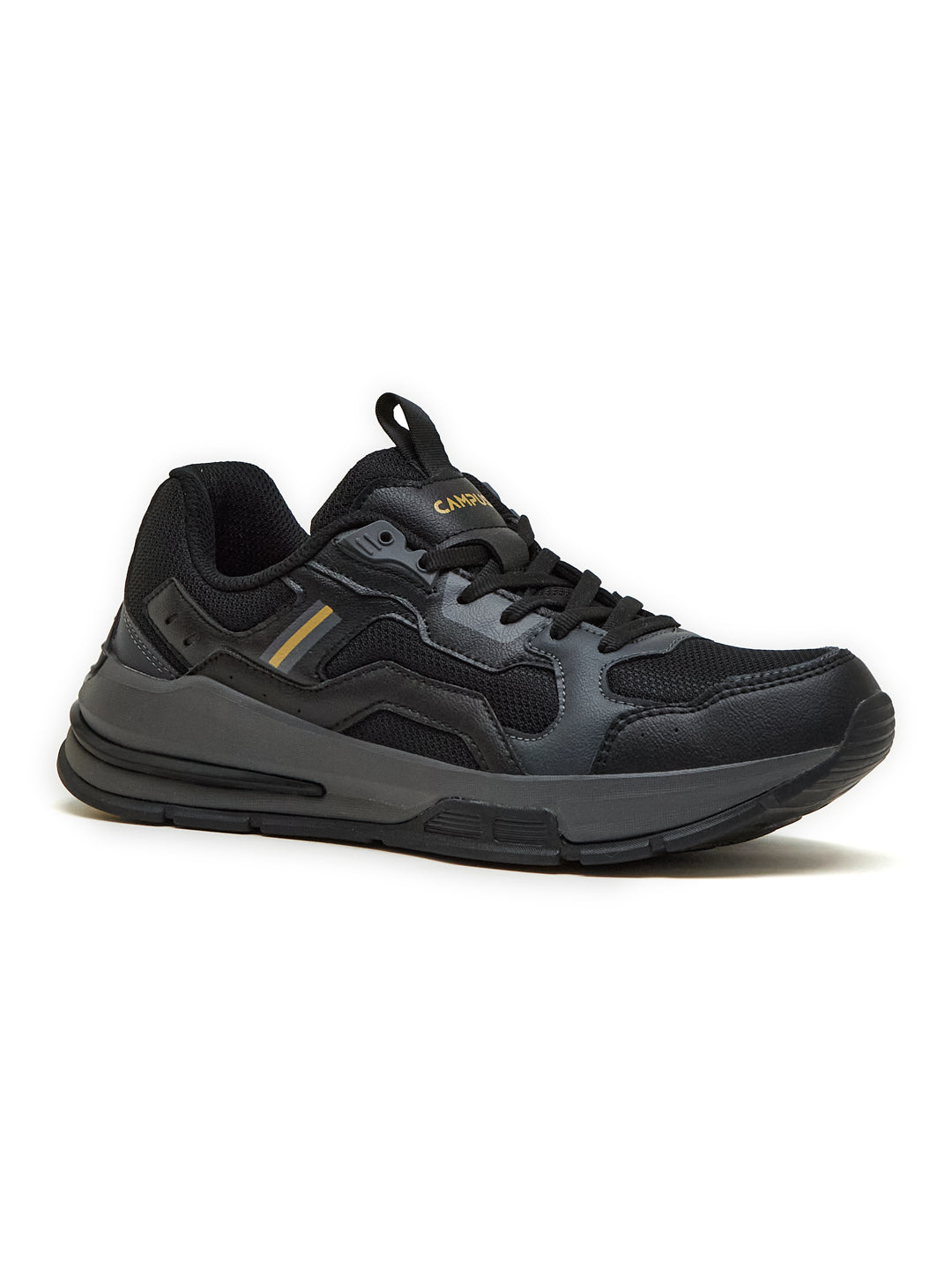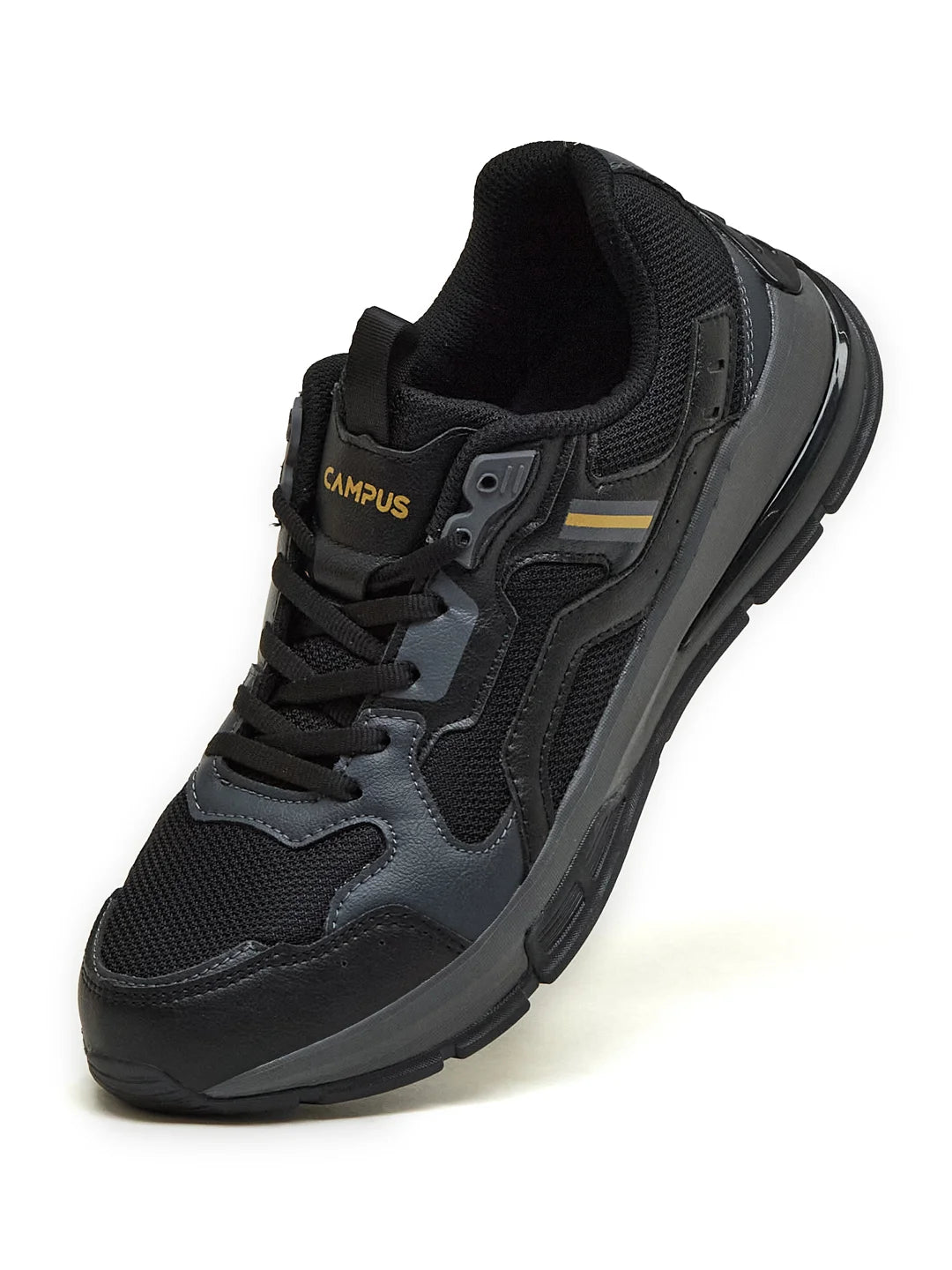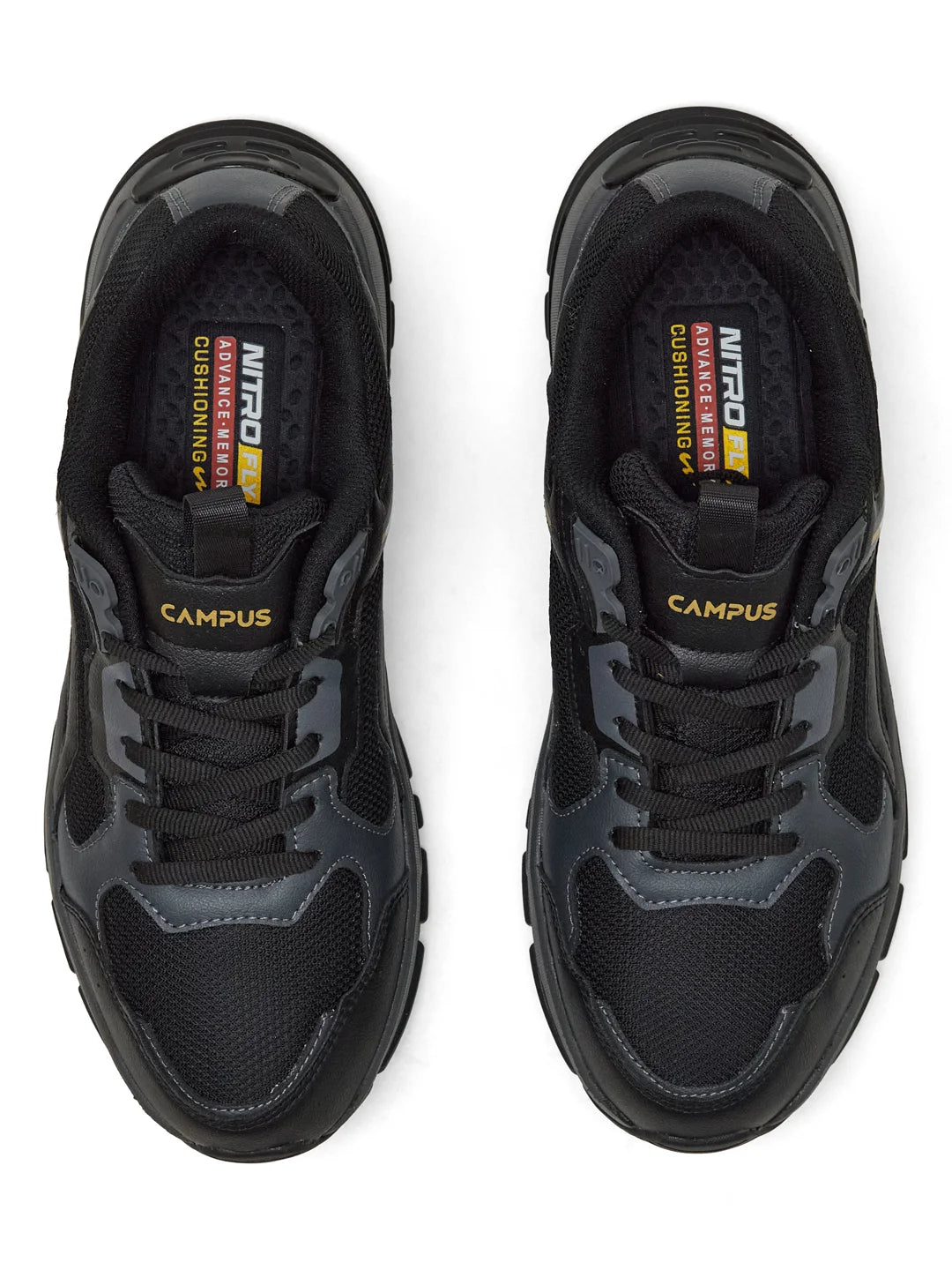 Alright, time to amp it up! Introducing Campus HARMONY Men's Sneakers in black and dark grey—so bold, they’ll have heads turning left, right, n' center! With a futuristic, chunky design that’s anything but basic, these kicks feature a Mesh and PU upper for breathability and a sleek finish. The Nitrofly insole delivers responsive cushioning with a footbed that’s light and soft as a pillow. Paired with an EVA, TPR, and TPU sole featuring an anti-slip design and Support-Tech, your steps stay steady and secure no matter where life takes you. Topped with a performance clip that screams next-level support, these sneakers for men nail both—style and comfort, perfect for cruising the streets or vibin' with your squad.