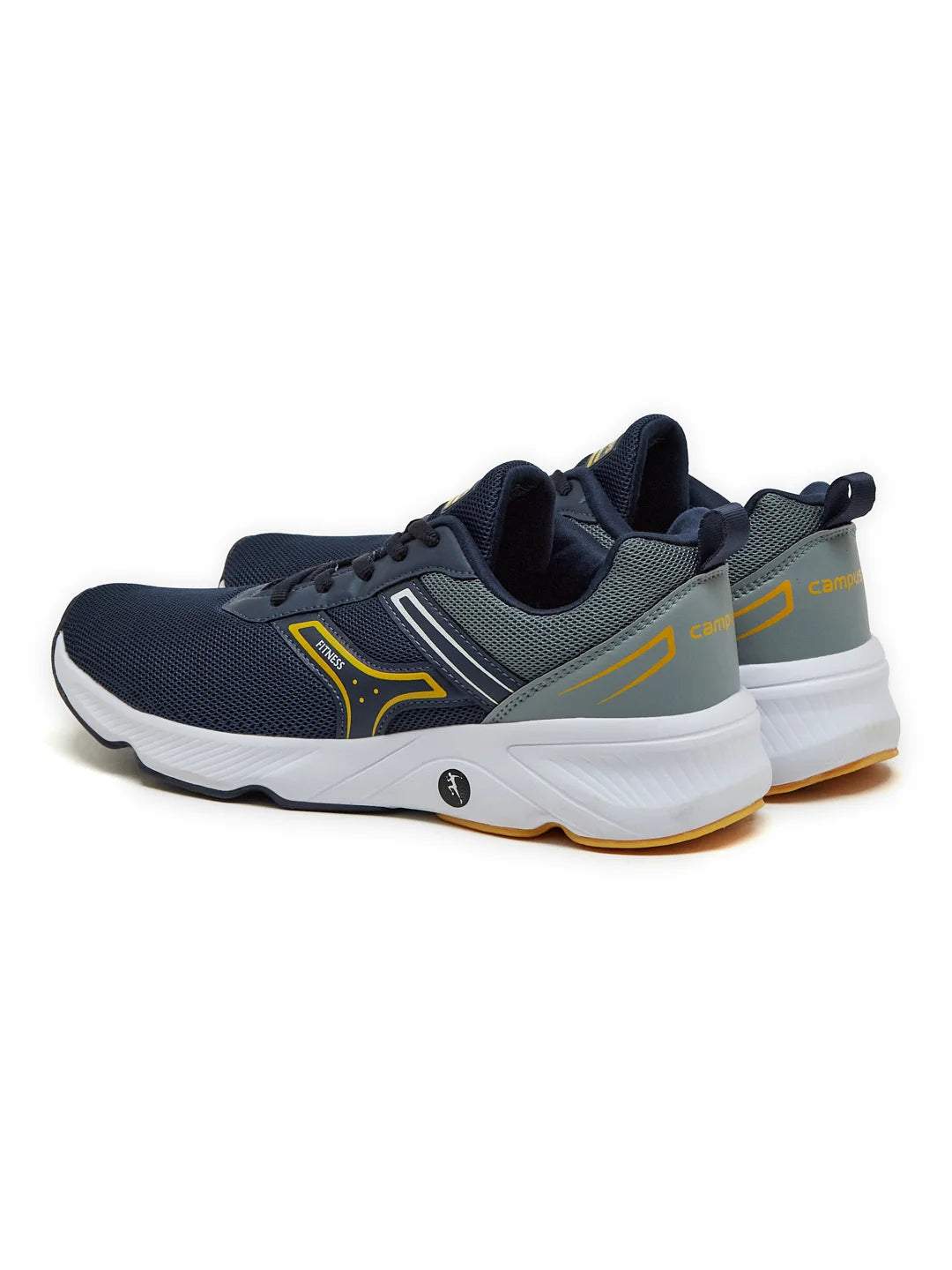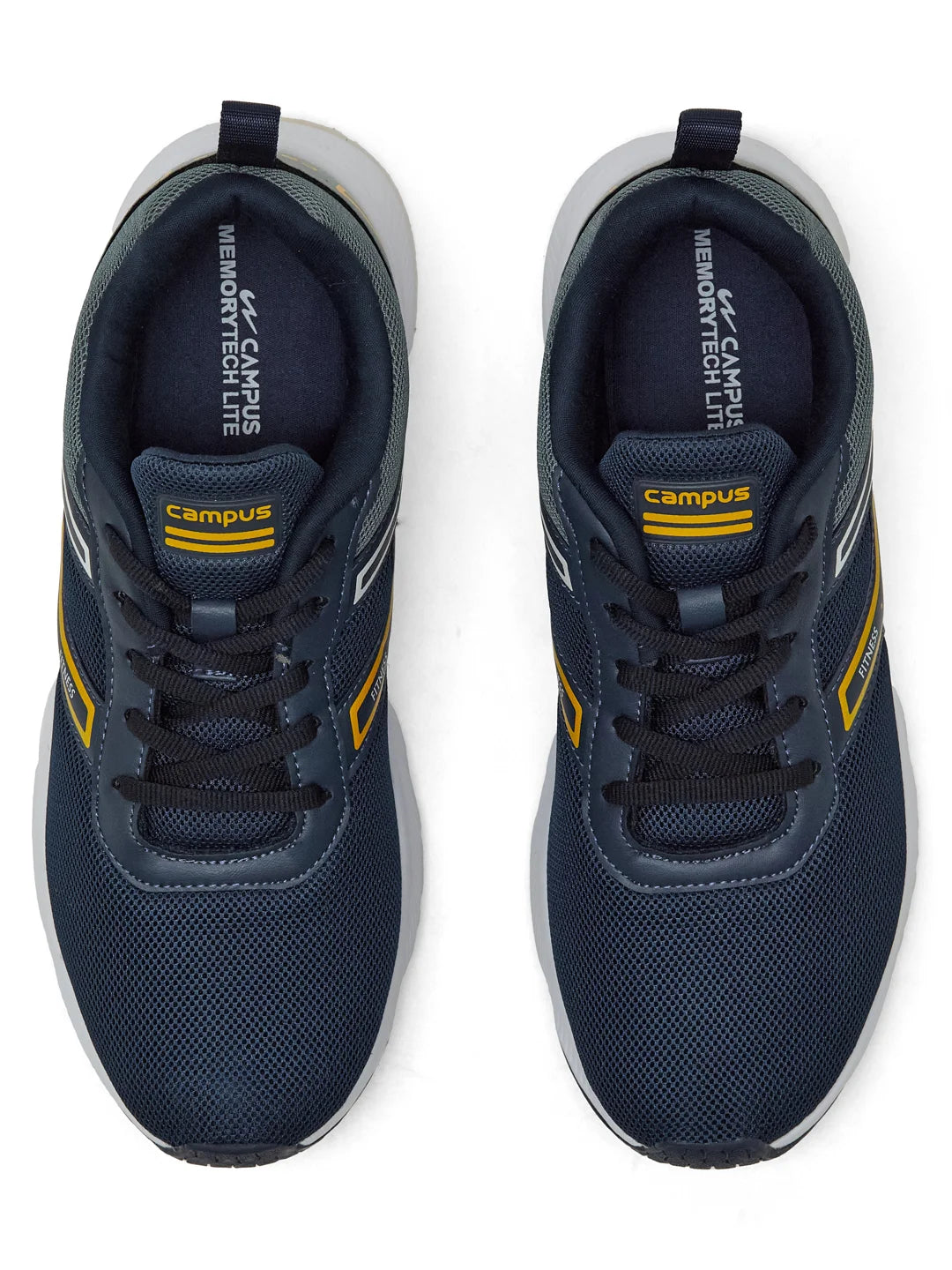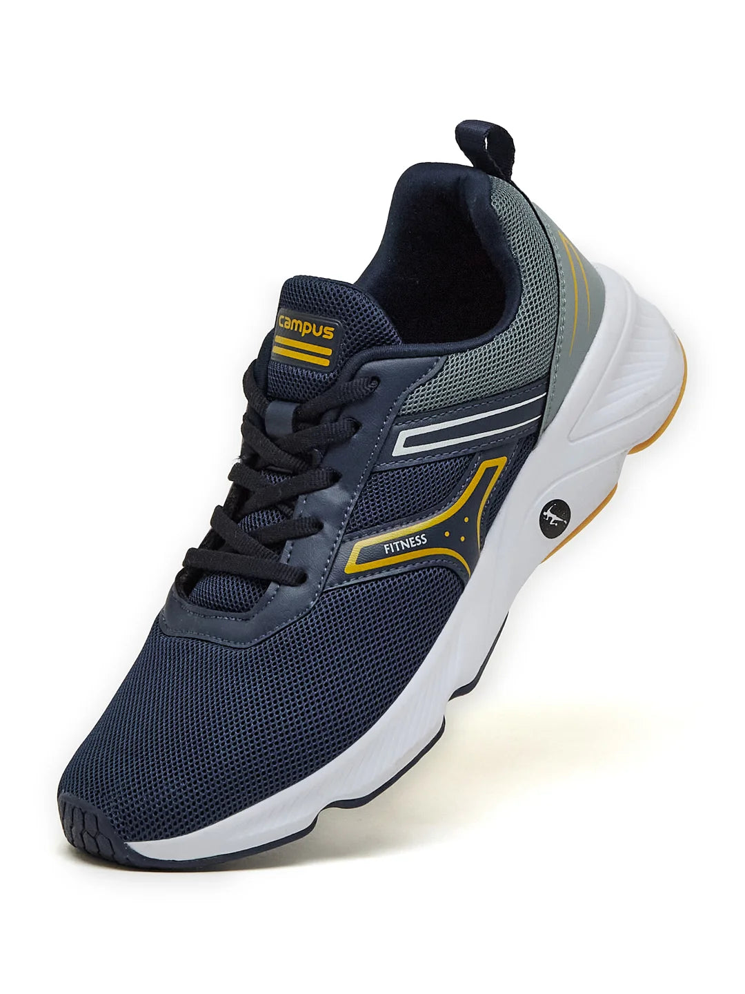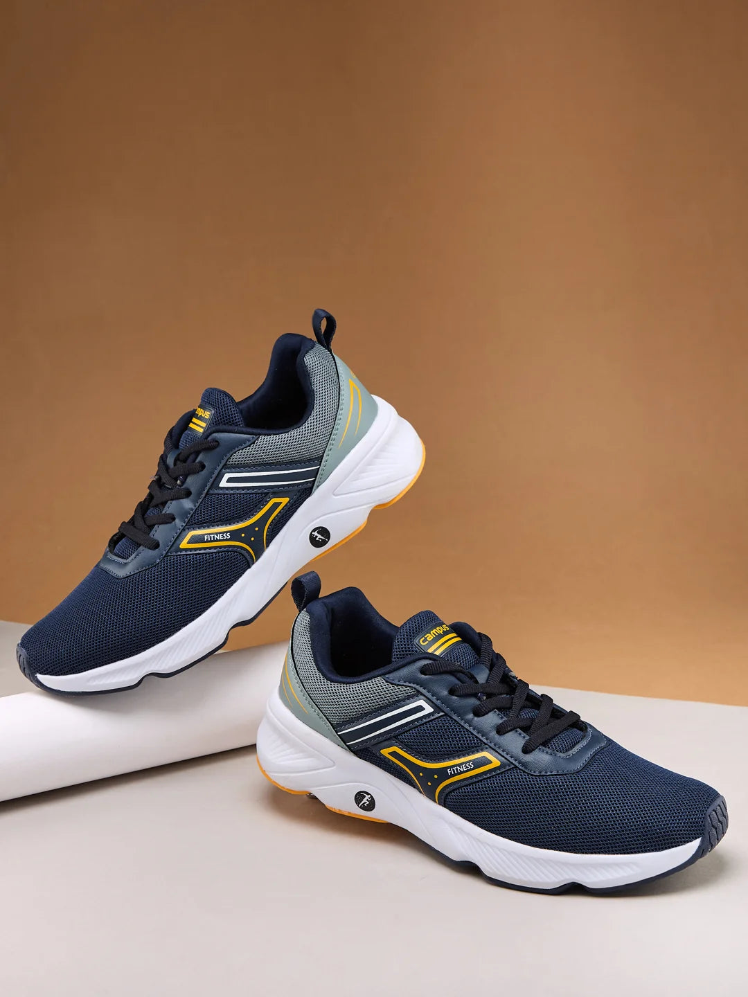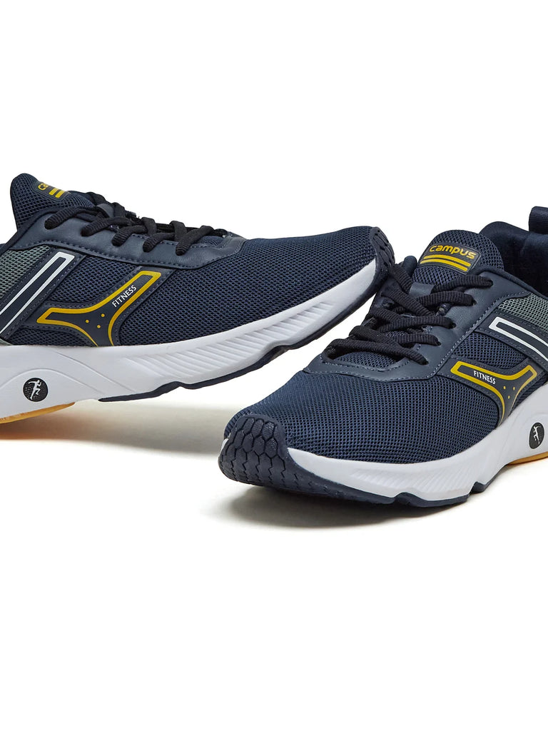 Brace yourself - the Hurricane Men's Running Shoes by Campus are here to sway you away! The premium-quality memory foam insole works magic to give you cushioned comfort in every step, in addition to the anti-slip sole design that becomes key in ensuring a good grip and negating the chances of accidental slips. The mesh upper and the lace-up closure pairing provides breathability and an adjustable fit while also adding to the overall look. The uber-elevated design & the soothing shades of navy and slate pair well with casuals, denims, formals, and everything in between. Trust this pair to slay all day!