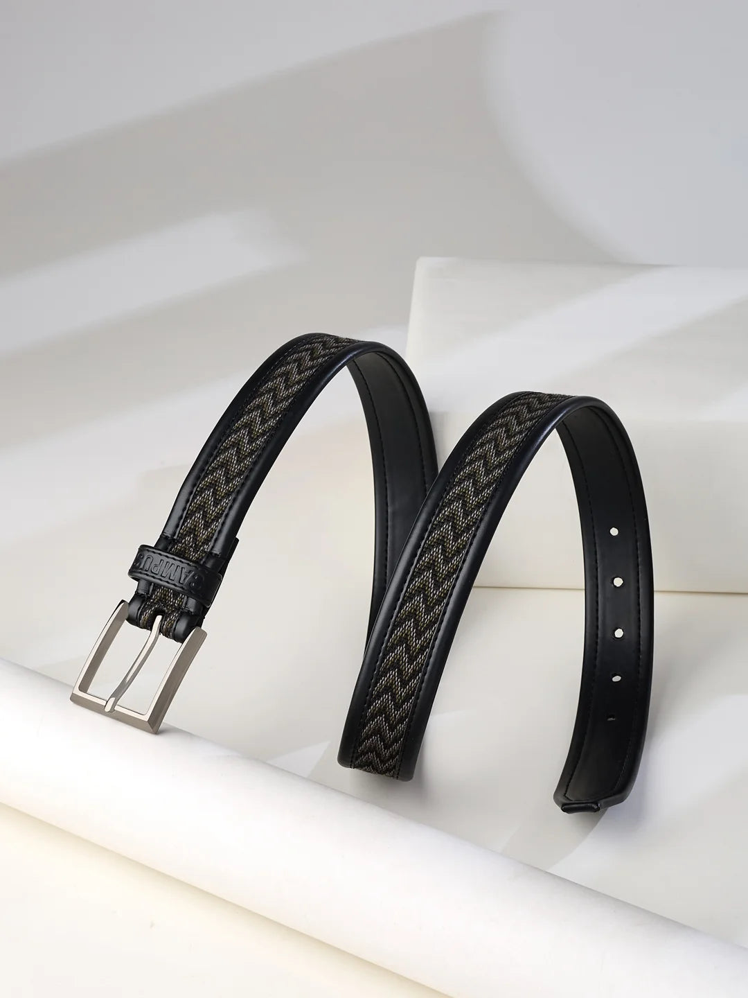 Every detail, elevated. The Campus Jacquard Braided Belt in black features a refined jacquard weave on the front, adding subtle texture and a premium feel. The PU-backed construction gives the belt a more structured feel, helping it hold its shape while delivering a clean, polished finish. Paired with a metal buckle, it strikes the right balance between modern style and classic sophistication. Designed to move effortlessly from smart-casual to formal occasions, this black jacquard belt works just as well with tailored trousers as it does with dressed-up denim.