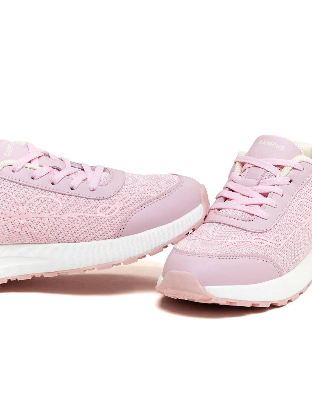 Soft, playful, and eye-catching — the Campus JUJUBEE Women’s Sneakers do comfort with a little charm. The breathable mesh upper is elevated with delicate floral detailing, adding texture and personality. PVC detailing at the toe and heel brings in structure, keeping the look neat and secure. The EVA midsole paired with a TPR outsole delivers light, flexible steps with reliable grip. Ultimately, the Memory Insole cushions every stride, making long days feel easy. The pink-ivory palette feels fresh and feminine — perfect to pair with sundresses, denims, co-ords, and more!