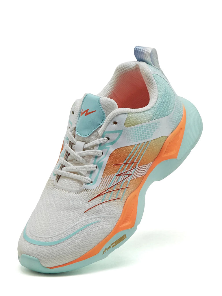 Built for the young ones, full of energy and moves, the Campus KAPE JR Running Shoes pack in comfort and style for every adventure. The breathable mesh with striking raised printing keeps feet fresh while adding a sporty edge. The EVA sole makes each step light and easy, while the Memory Insole with Pillofoam cushioning delivers soft, all-day support — whether it’s school races, playground games, or weekend outings. Available in a soft white-blue base with pops of bright orange for a playful look.
