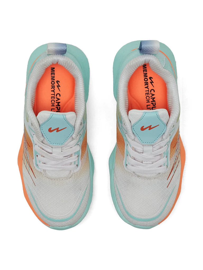 For little ones who bring big energy, the Campus KAPE Running Shoes are ready to keep pace. The mesh upper with raised print details gives a cool, breathable fit, while the EVA sole keeps steps flexible and light. With a Memory Insole and Pillofoam cushioning, these shoes are made for endless comfort — from classroom hustle to outdoor fun. Finished in white-blue ombre with bright hints of orange, they bring sporty style that fits every kid’s vibe.
