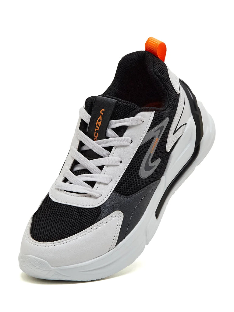 The Campus LEVEL CH Sneakers in Black & White are made for the dashing young ones who love to move with confidence and style. The cool mesh and PVC upper keeps their feet feeling breezy, through all the fun. Every jump, n' adventure feels light & smooth thanks to the EVA & TPU sole, while the Memory Extra Bounce Insole adds a layer of cushioned comfort that feels like walking on soft clouds. Plus, the Support-Tech gives that extra stability at the heel...so, hello solid steps! Whether it’s tuition run day, weekend hangout, or a quick game with friends, these sneakers bring the perfect mix of comfort and timeless cool!