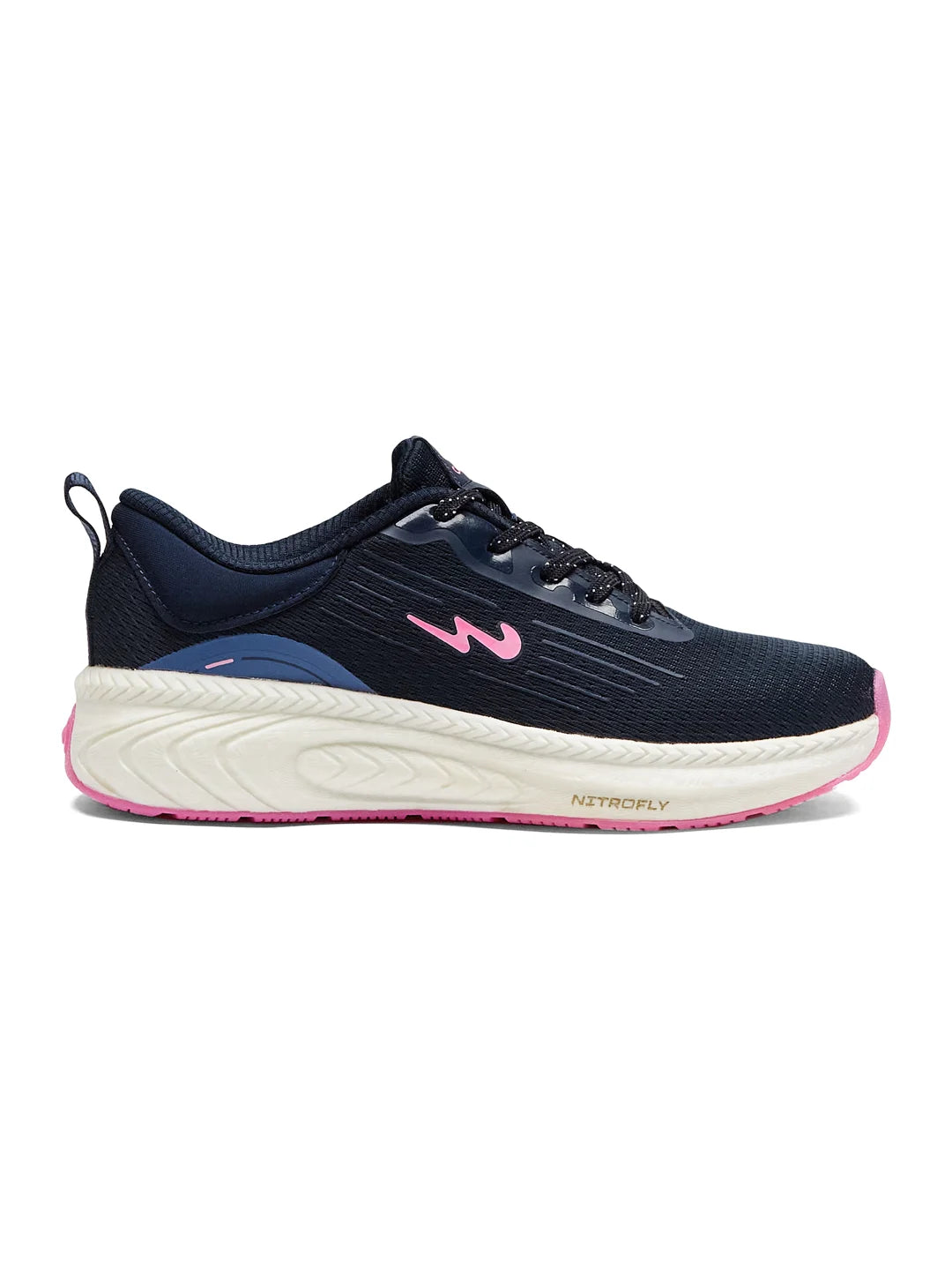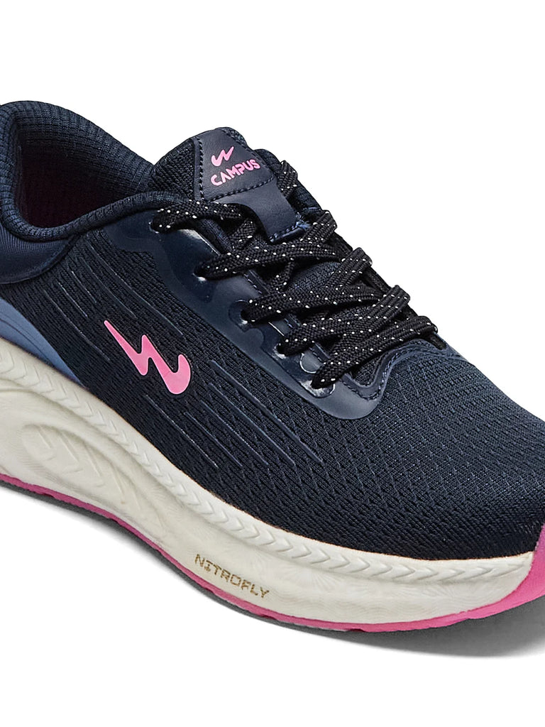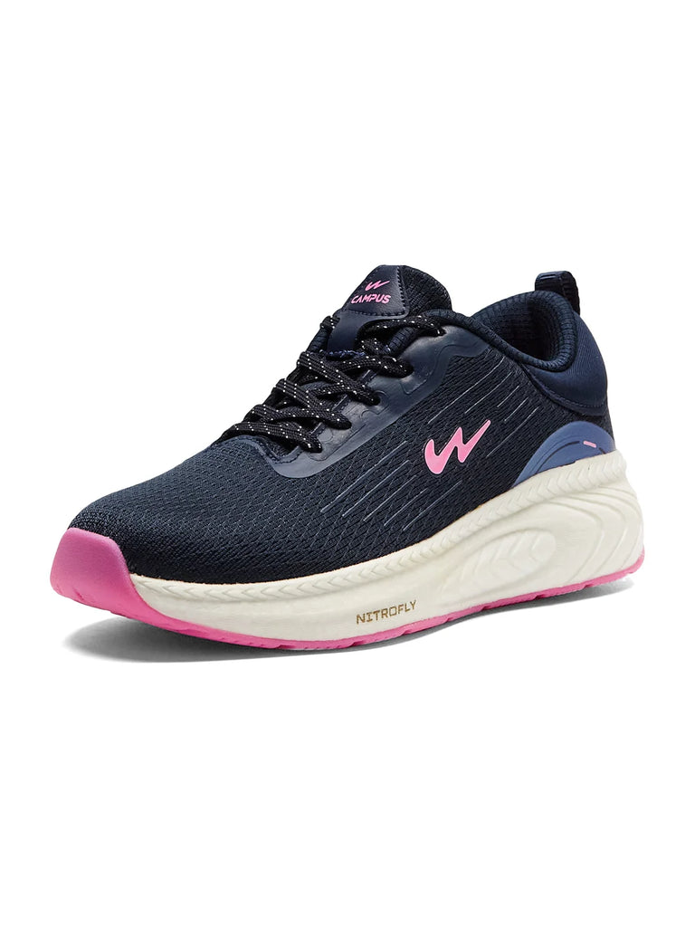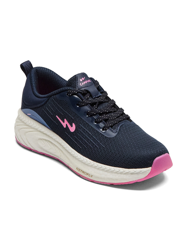 Balance and brilliance. The Campus MALORE Women’s Running Shoes in Navy and Pink bring together sporty comfort and feminine flair. With a breathable upper and eye-catching raised print design, this pair turns heads while turning up your performance. The Nitrofly tech keeps your steps light and the Memory Insole delivers all day comfort — from workouts to walks.