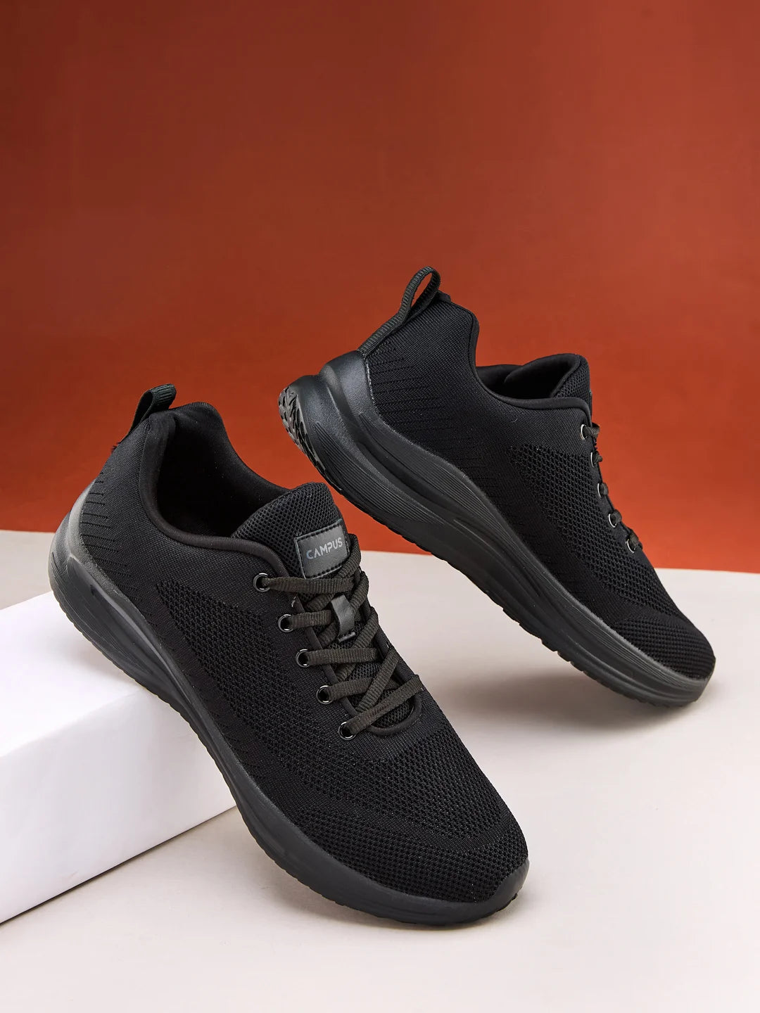 Elevate your runs with Maximus: the ultimate cool men's black running shoes. From city streets to gym feats, these kicks redefine style and comfort. Wrap your feet in the breathable knitted upper of the shoes that offer a snug fit. The Flex Pro Tech outsole and extra cushioning of these black sports shoes for men absorb shocks and provide cushioned support. Feel the comfort underfoot!