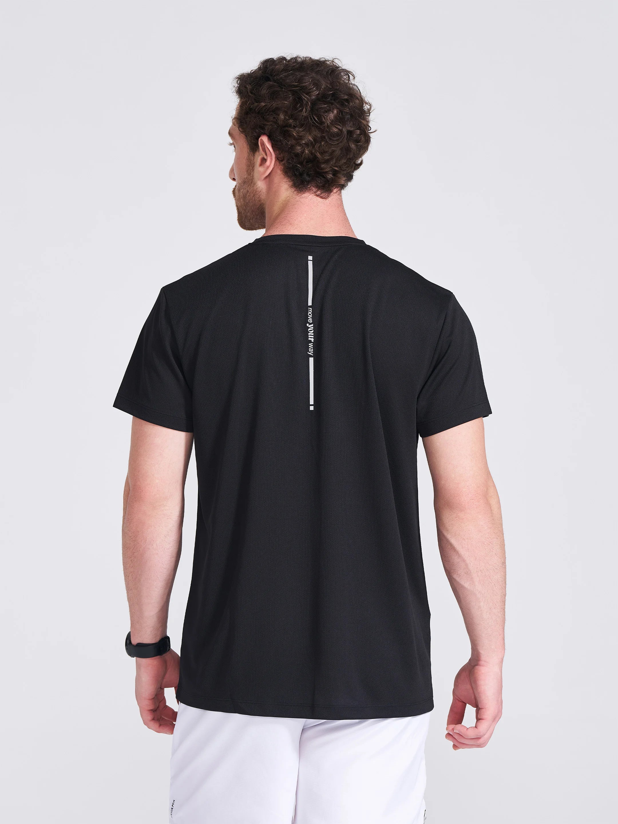 For days when the pace doesn’t slow down, the Campus Round Neck Dry-Fit T-Shirt has your back. The 100% polyester rice-knit fabric feels light, smooth, and made for movement — helping heat and sweat escape quickly so you stay comfortable through long runs, intense game days, or everyday training. The 2-way stretch gives you easy mobility, while anti-microbial and anti-odor tech keep you feeling fresh as the effort builds. ‘Move Your Way’ paired with a reflective strip at the back adds a cool, performance-led touch, while the black shade keeps things sharp and effortlessly athletic.