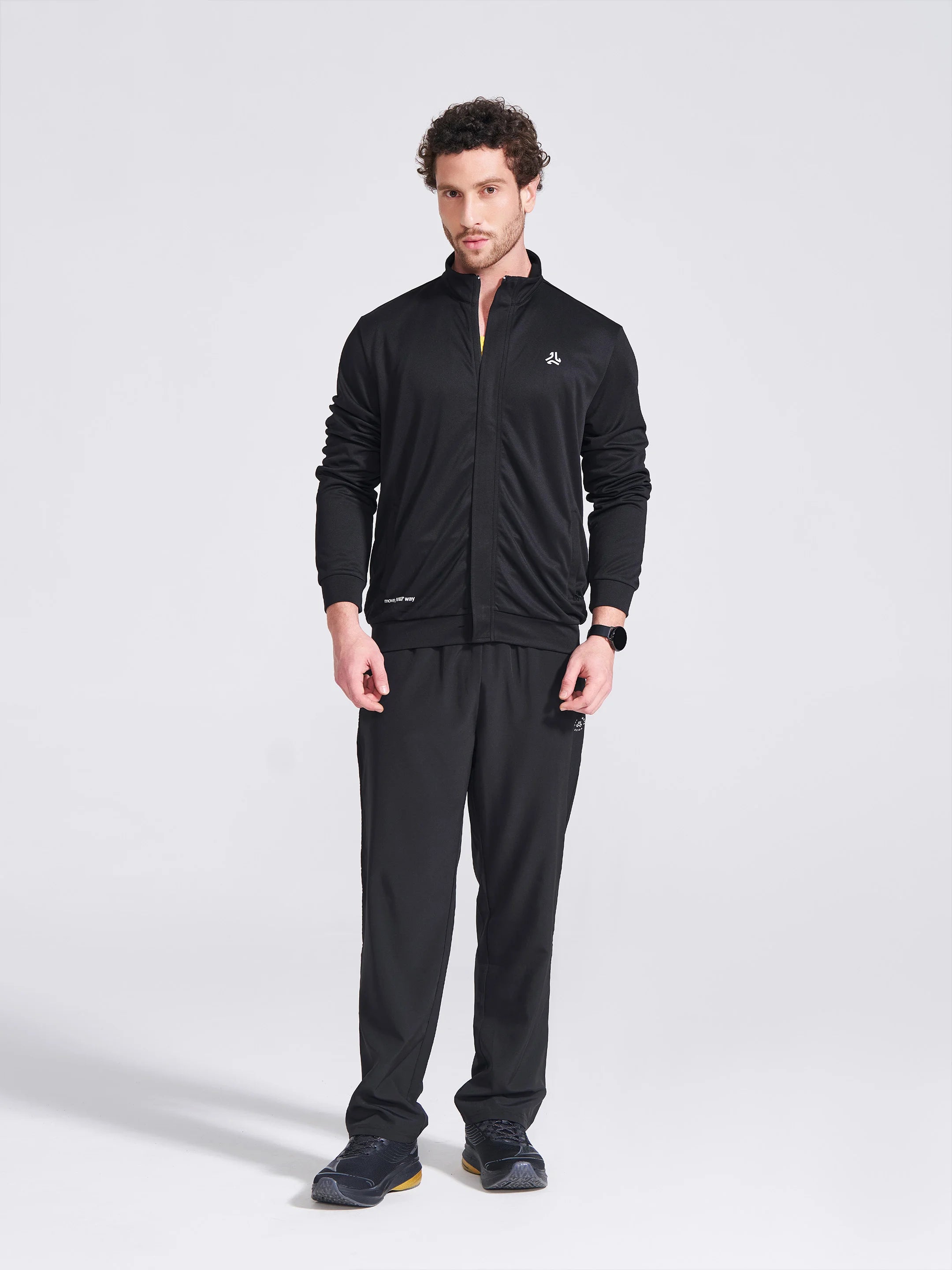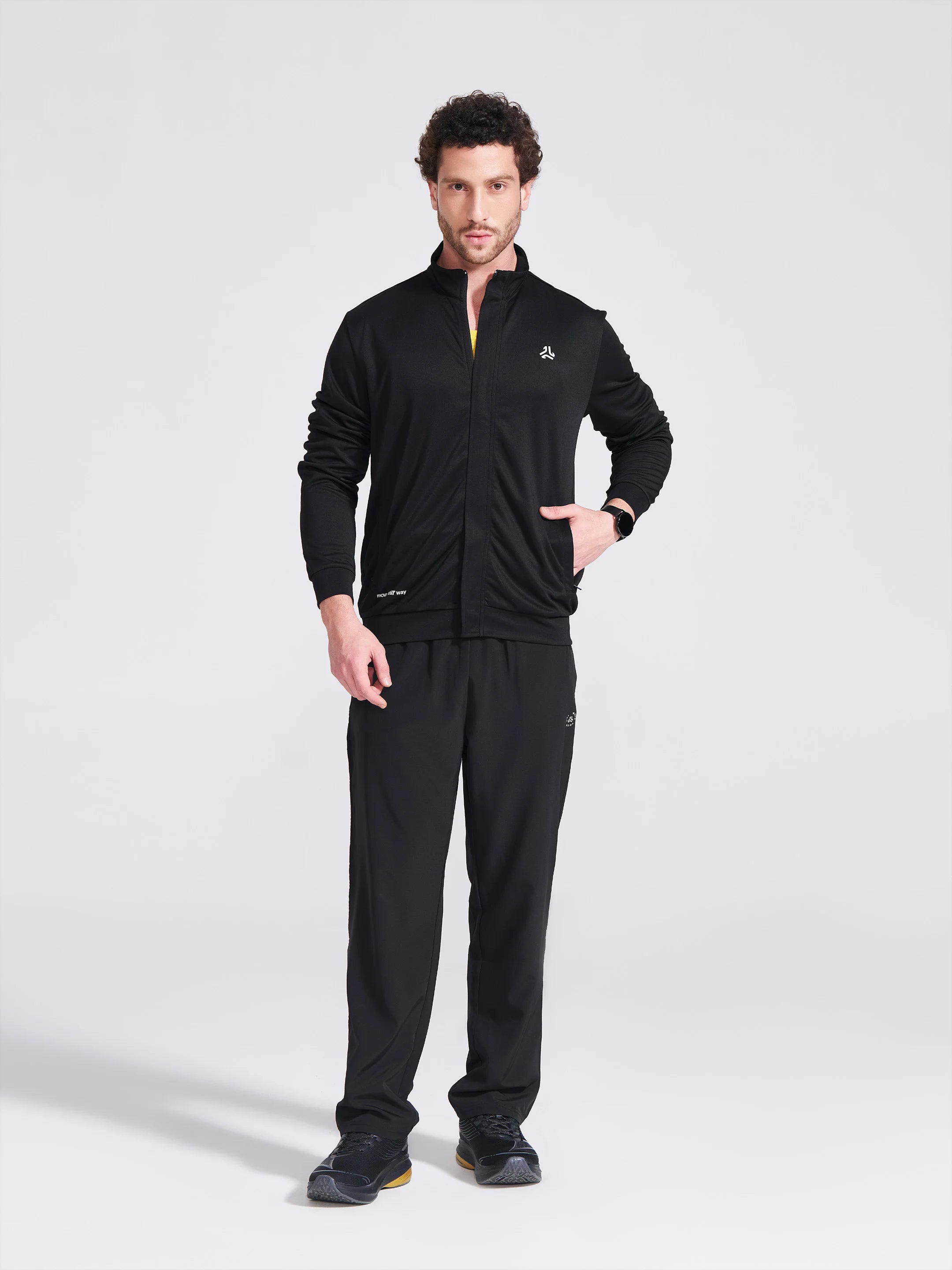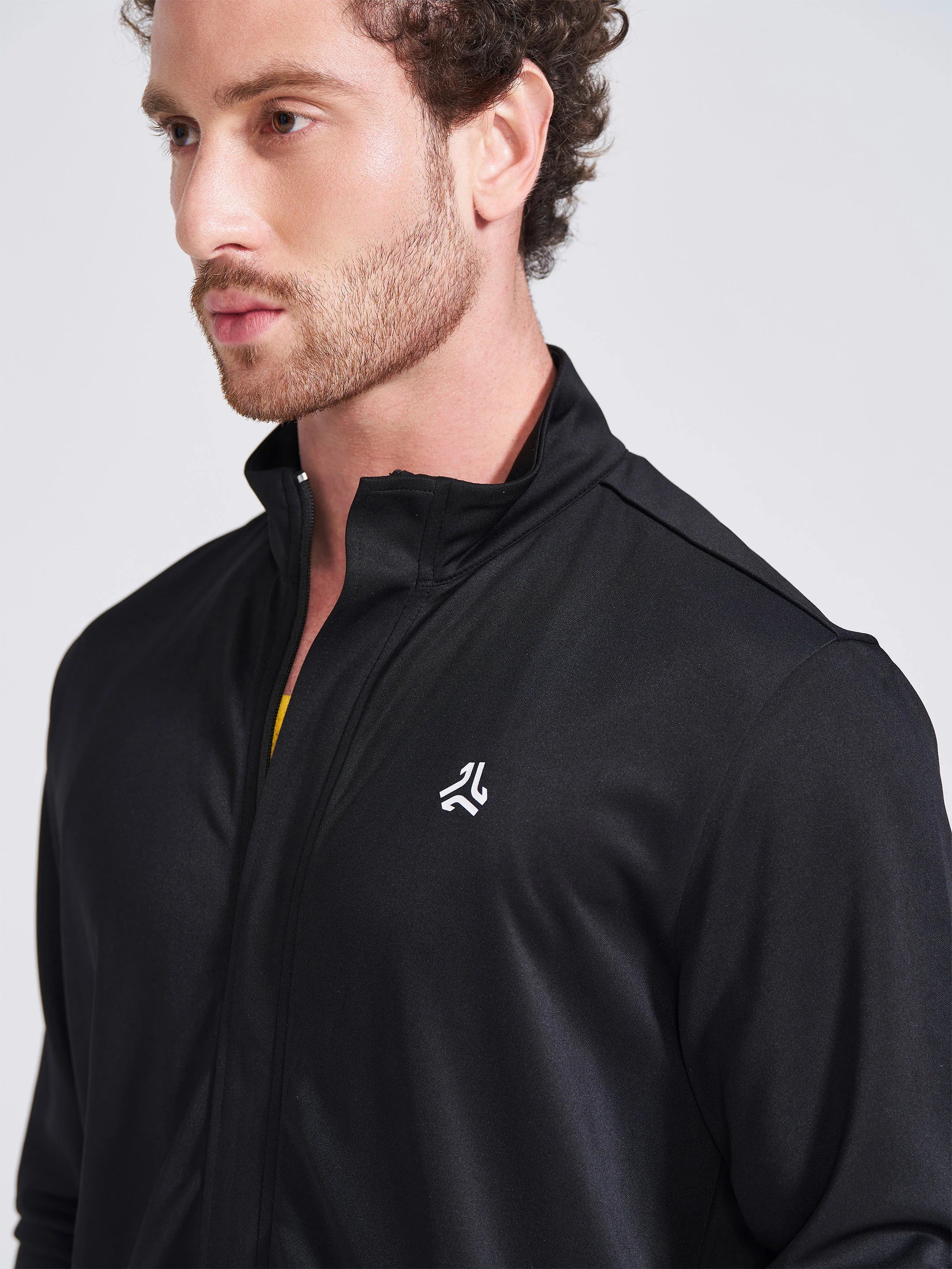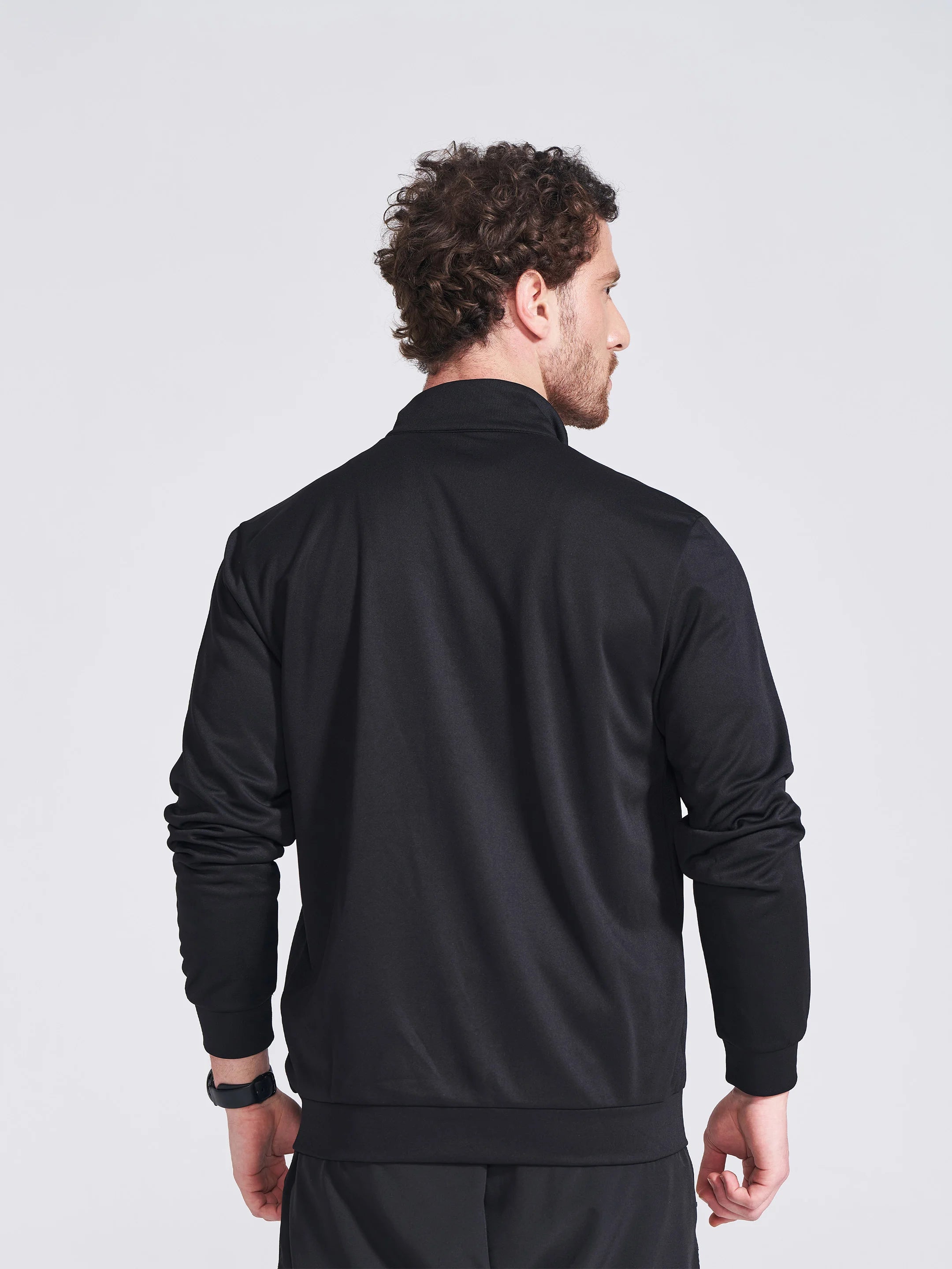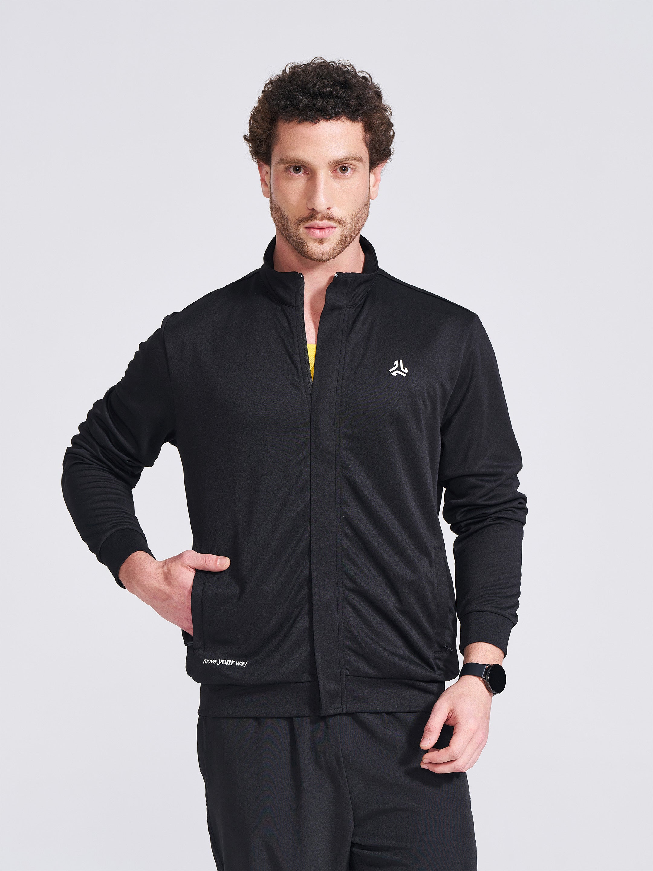 Zip up and get ready for anything. The Campus Full Zip Dry Fit Track Jacket in black has that rough-n-tough build with a lightweight, breathable feel that never holds you back. Made with polyester and built with 2-way stretch, it’s perfect for warmups, runs, and everything in between. The quick-dry fabric handles sweat smoothly, while anti-microbial and anti-odor properties keep things feeling fresh through long days. The anti-static finish keeps cling away, and the flap over the zipper gives the front a clean, streamlined look. The classic black shade nails that timeless, athletic vibe — crisp, sharp, and always on point. Complete the look with the Campus Full Zip Dry Fit Track Pants for a clean, coordinated track set.