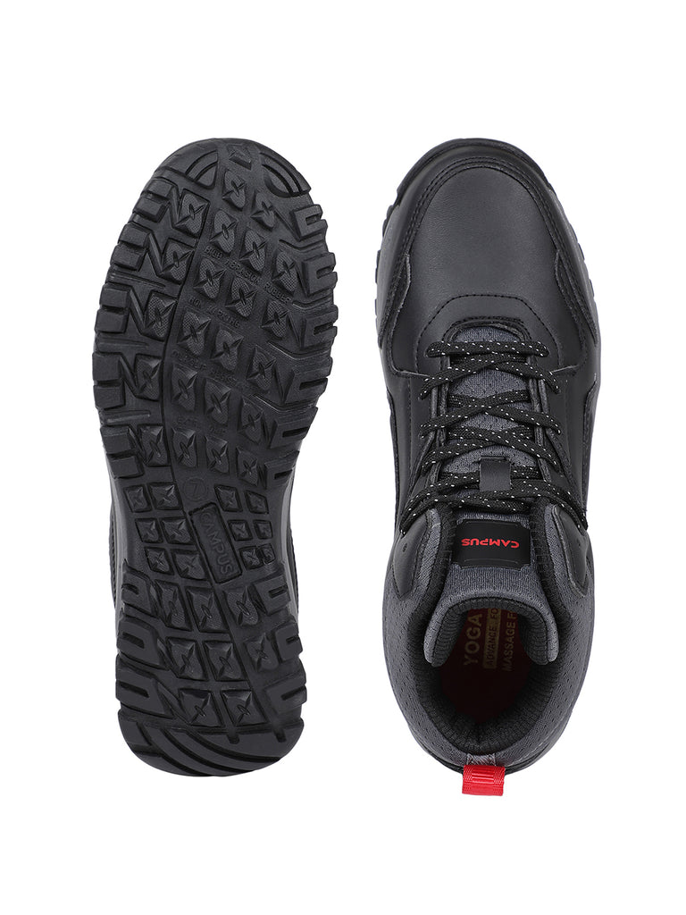 Crafted for the man who does not want anything to come between him and his terrain, Nebula ankle-high sneakers are the ideal companions for the rough roads. Make your weekend backpacking trips extra comfy with the Bubble Yoga Max Insole, which feels like a literal mat under your feet. The Mesh upper allows your skin to breathe as you reach your destination, one step at a time. The lace-up closure offers a secure fit and the impressive Anti-Skid outsole of these shoes for men provides the required traction for the terrains. Match your gear with these cool black sneakers & set out to conquer the climbs.