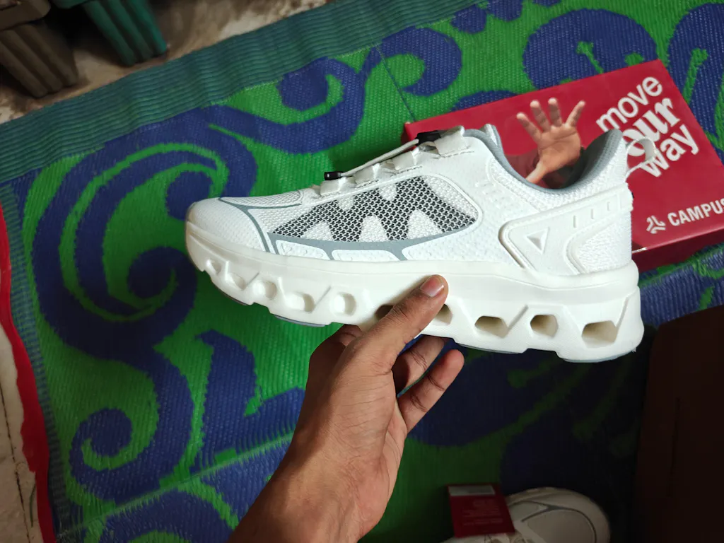 Bright, clean, and charged with energy — the Campus NECTER Men's Running Shoes in White and Light Grey is your fresh burst of motivation. The lightweight mesh upper gives off breezy ease, while the Air Pockets in the EVA midsole ease impact, keeping each step effortless. With an ultra-cushioned & plush insole backing you up, you’ll feel like you can keep going, mile after mile. A versatile pair that looks just as sharp on a weekend run as it does with casual streetwear!