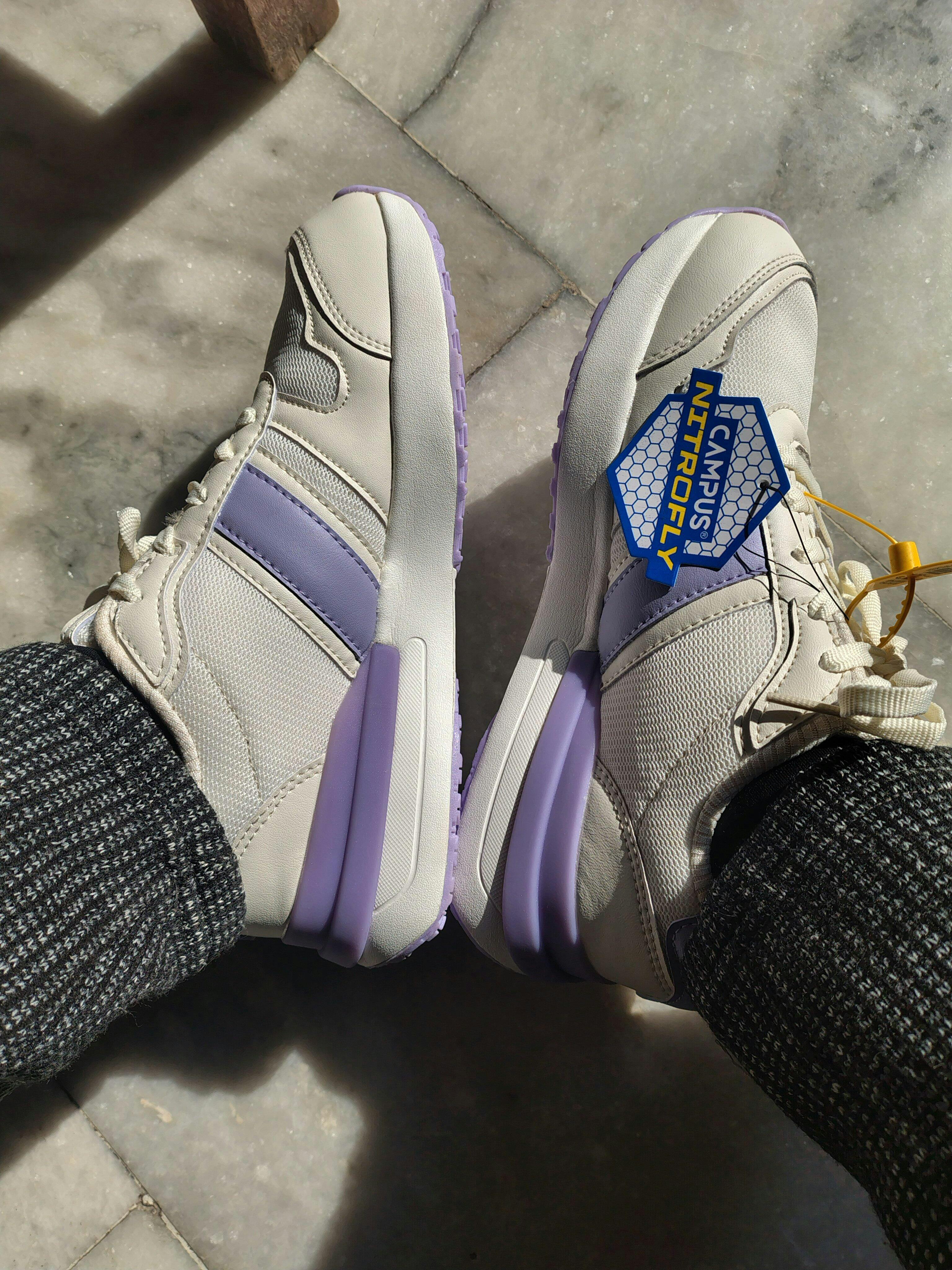 Be on-fleek and on the go with the Nigma Women's Running Shoes by Campus. With a stylish off-white and light purple combo, these shoes are crafted with a breathable mesh upper designed to enhance airflow and breathability. The Nitrofly technology provides lightweight energy return, while the EVA, TPR, and TPU sole ensures flexibility and long-lasting wear. Plus, the anti-slip sole design keeps you steady on your feet, no matter the surface. Whether you’re hitting the track, or running errands, or casually serving 'em looks, these shoes are your best pick!