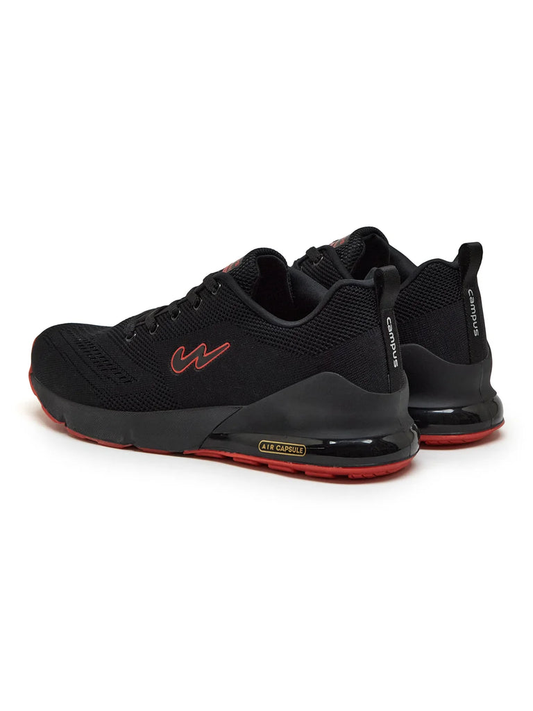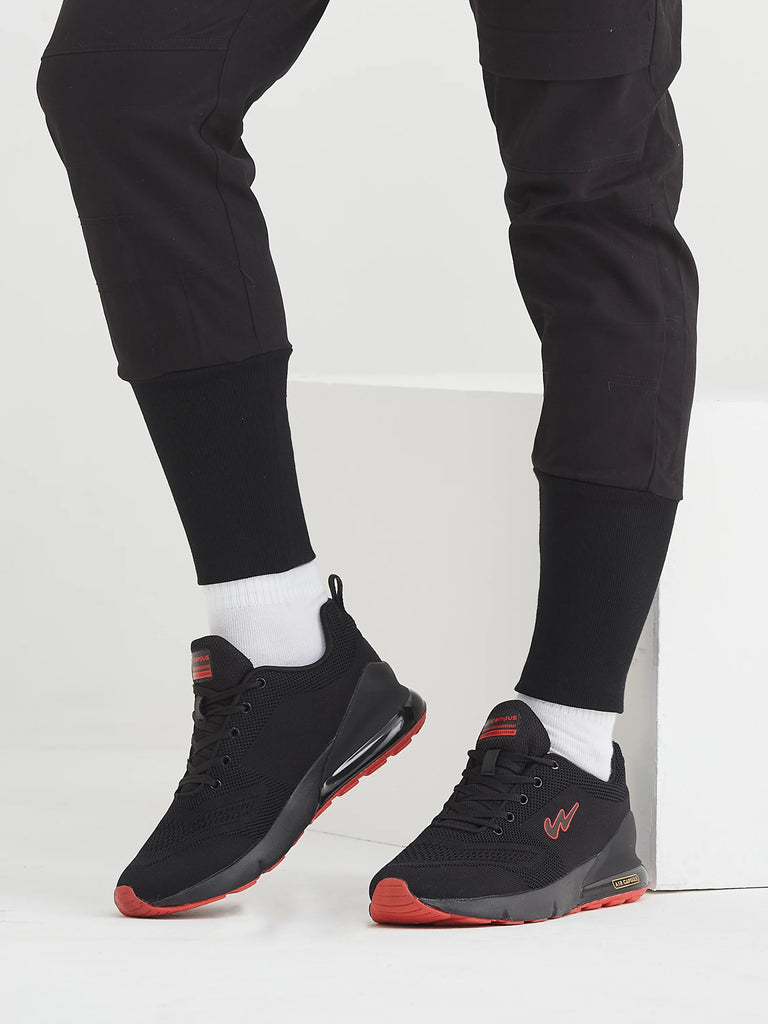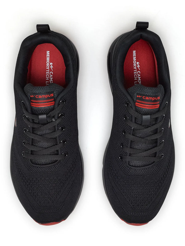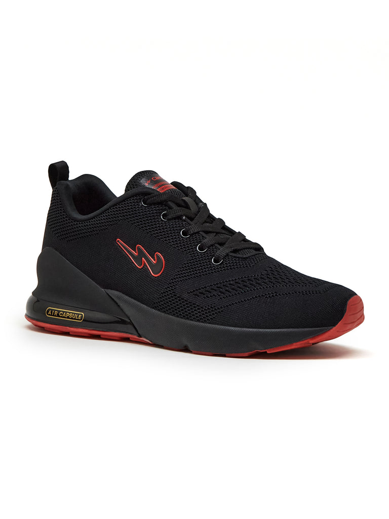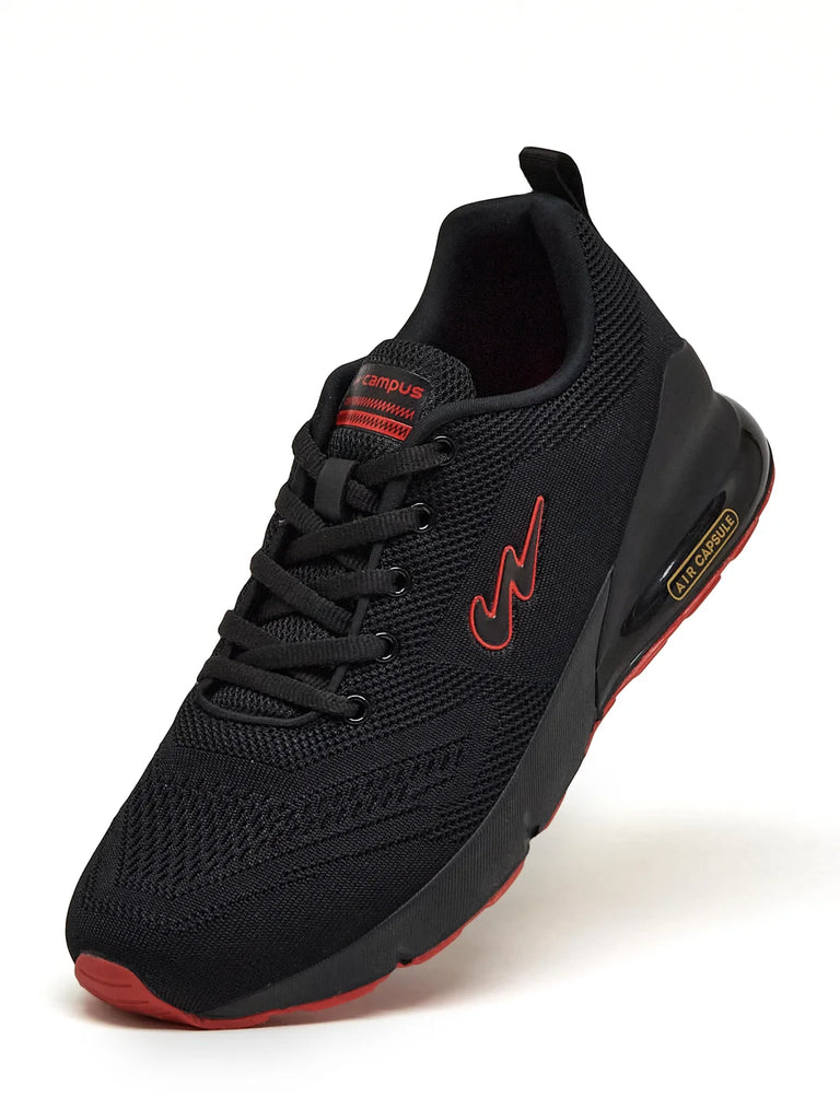 Introducing the Campus North Plus Men's Running Shoes – your perfect partner for active days and spontaneous fun. Powered by Air Capsule technology, these shoes deliver superior bounce and energy with every step, while the Memory Foam insole cradles your foot for a cushioned feel. The lightweight knitted vamp upper provides breathable comfort, paired with a secure lace-up design for a secure fit. The combination of IMEVA, TPR, and TPU in the sole brings a blend of flexibility and support, and the bold n' brave pairing of black & red ensures you look sharp, whether you're just out and about or chasing 'em fitness goals.