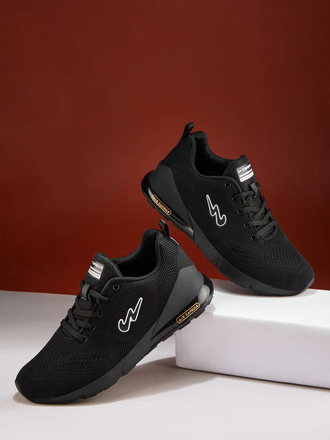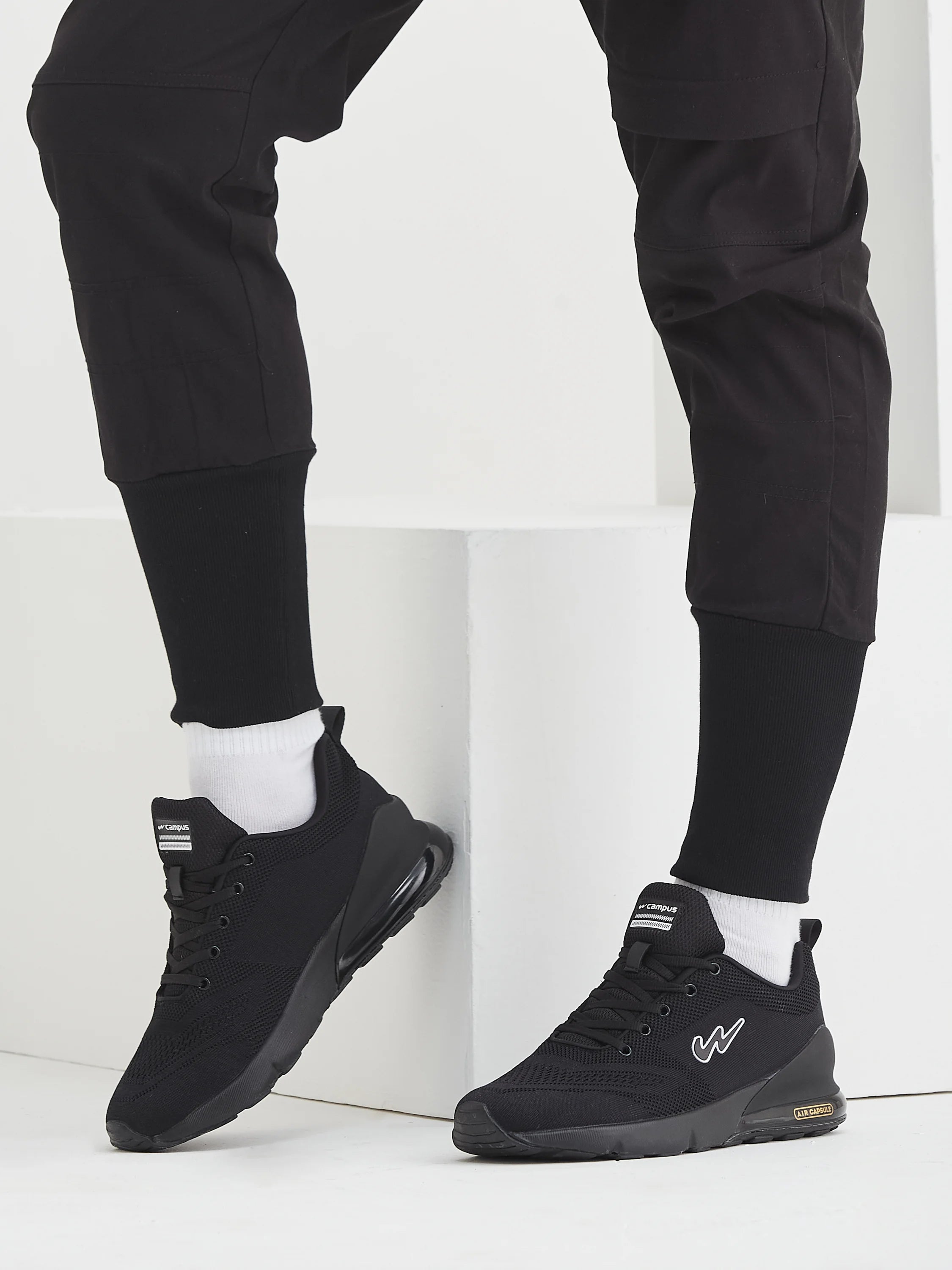 Game changers and stylishly comfortable, North Plus Running Shoes by Campus are a dream! All thanks to the air capsule unit, these shoes deliver unmatched cushioning. Featuring a mesh upper made of premium quality, this stunning pair comes with a breathable and moisture-absorbent lining that helps keep your feet fresh all day long. The memory foam insole further takes the shape of your feet, so every step is wrapped in comfort. Ultimately, the sleek, minimal design, monochromatic black, and lace-up closure seal the deal and make this a crowd-puller.