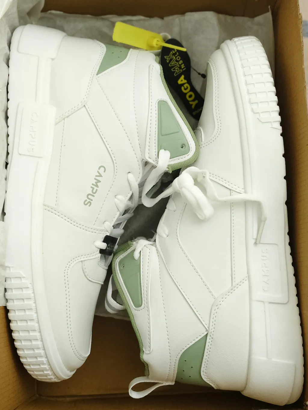 The OG-22 men's high-ankle sneakers from Campus are here to upgrade your sneaker-scene. Taking pride in the Bubble Yoga Max Insole, these offer exceptional comfort and support, like that of a real mat. Built to last, the PU upper ensures high endurance, while the lace-up closure keeps your feet centered, no matter the adventure. This high performance comes wrapped in style as the monochromatic white is topped with sage green, making you stand out effortlessly.