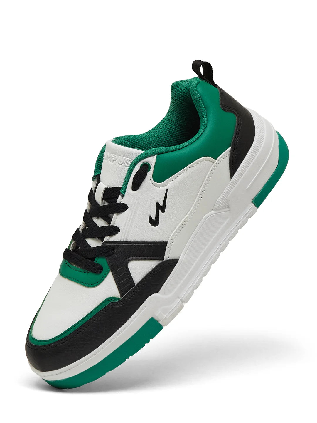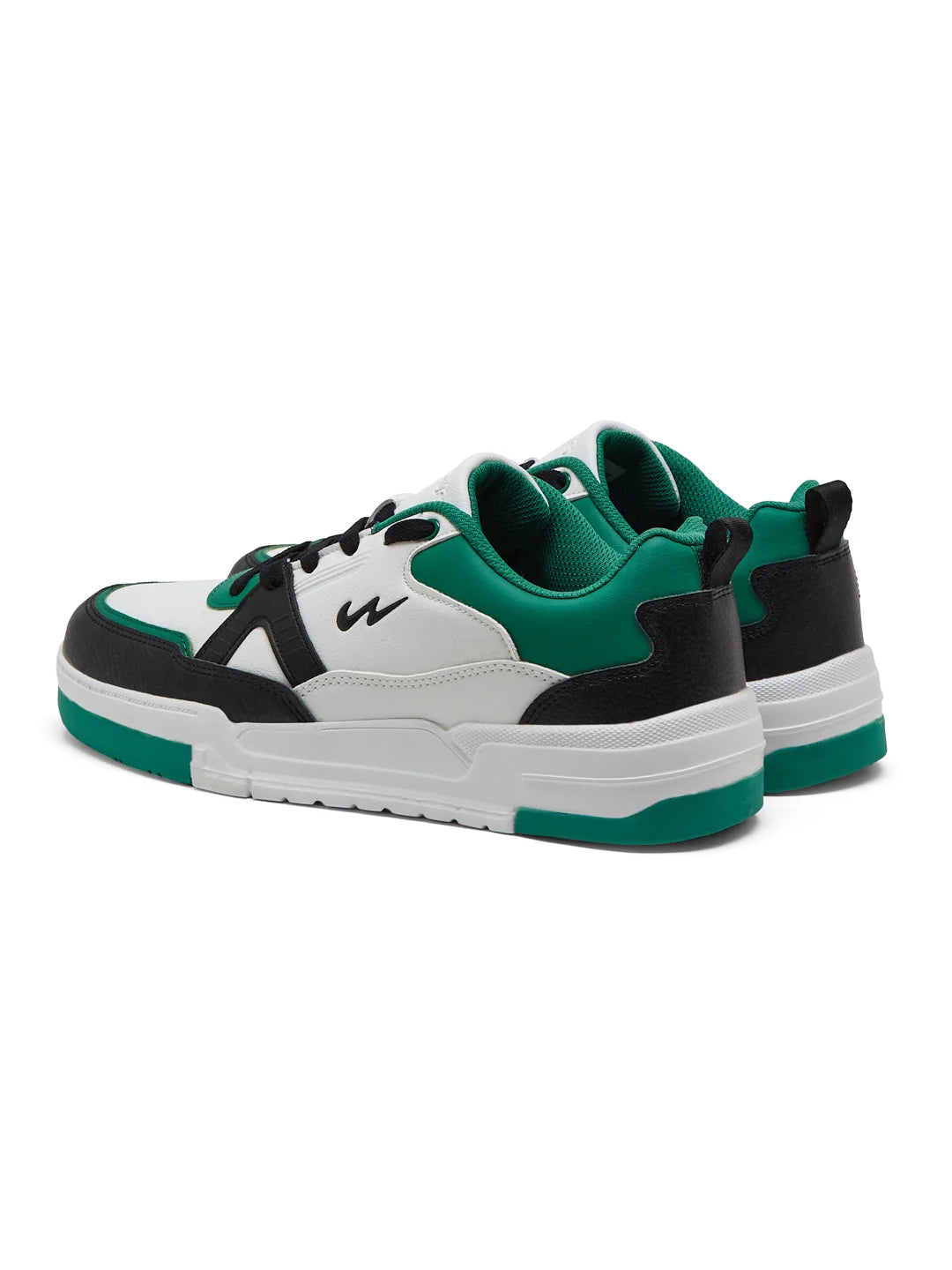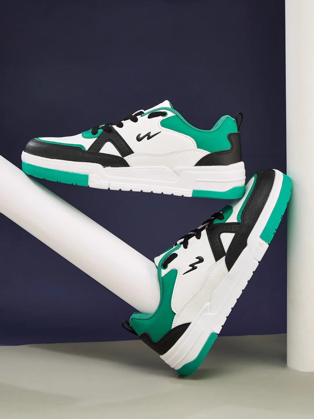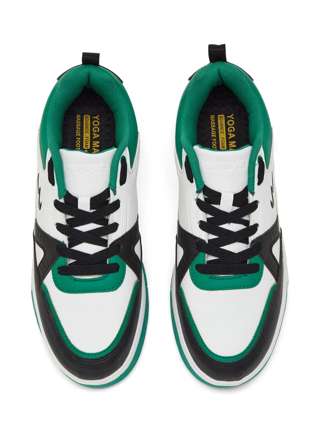 Max out your style quotient with The Campus OG-27 Men's Sneaker Shoes. Make your everyday outings extra happening with the coolest sneakers on your feet. Displaying sleek and modern looks, these sneakers are perfect for every affair. The PU material of the upper keeps your feet safe from splashes and dirt, while the Yoga Max insole keeps your stride bouncy and comfy! The Anti-Slip outsole design further enhances your grip, preventing accidental slips and keeping your feet ready for all the fun! Pairing striking shades of bottle green, black, and bright white, these sneakers elevate your outfits and turn heads effortlessly!