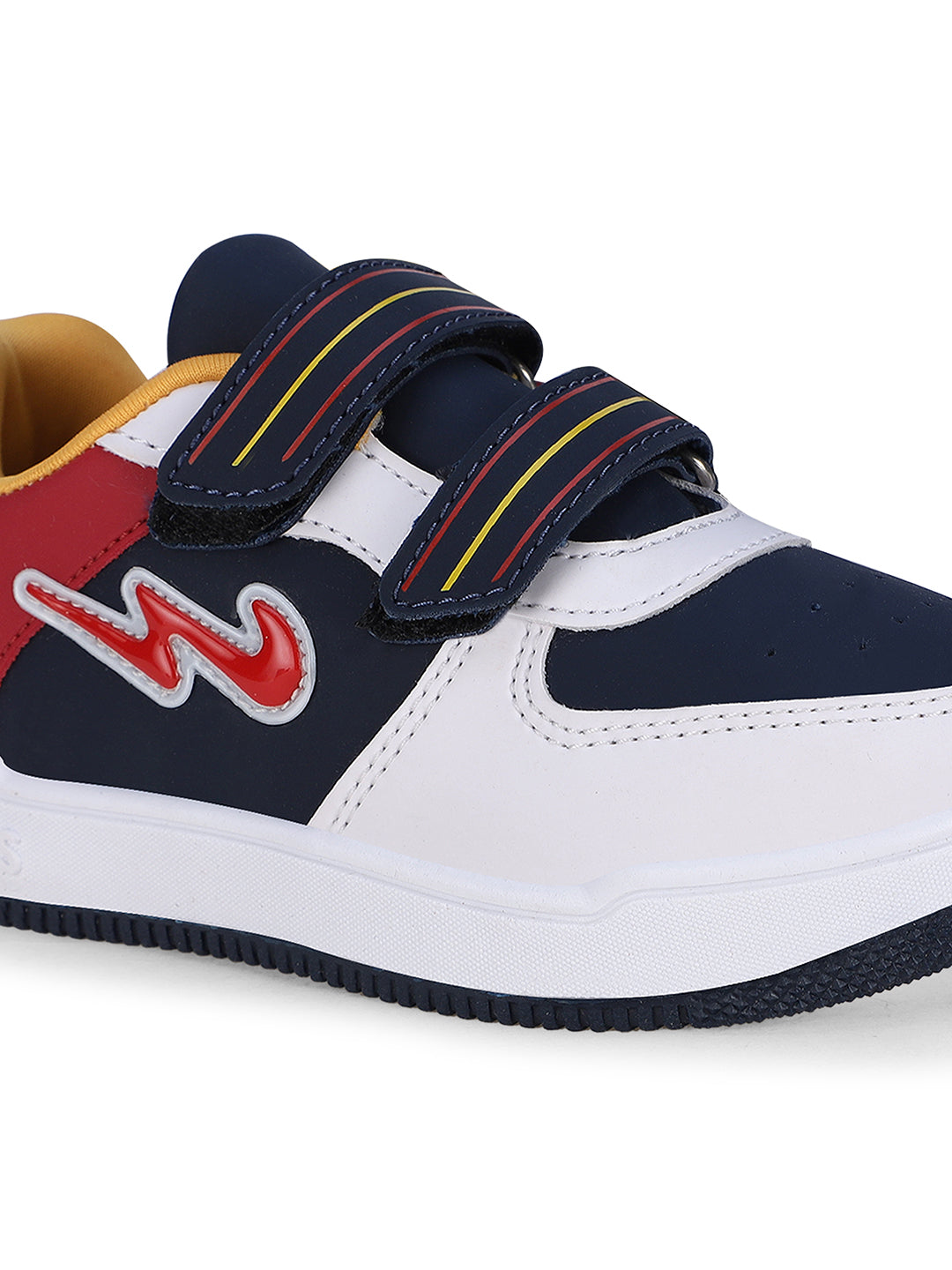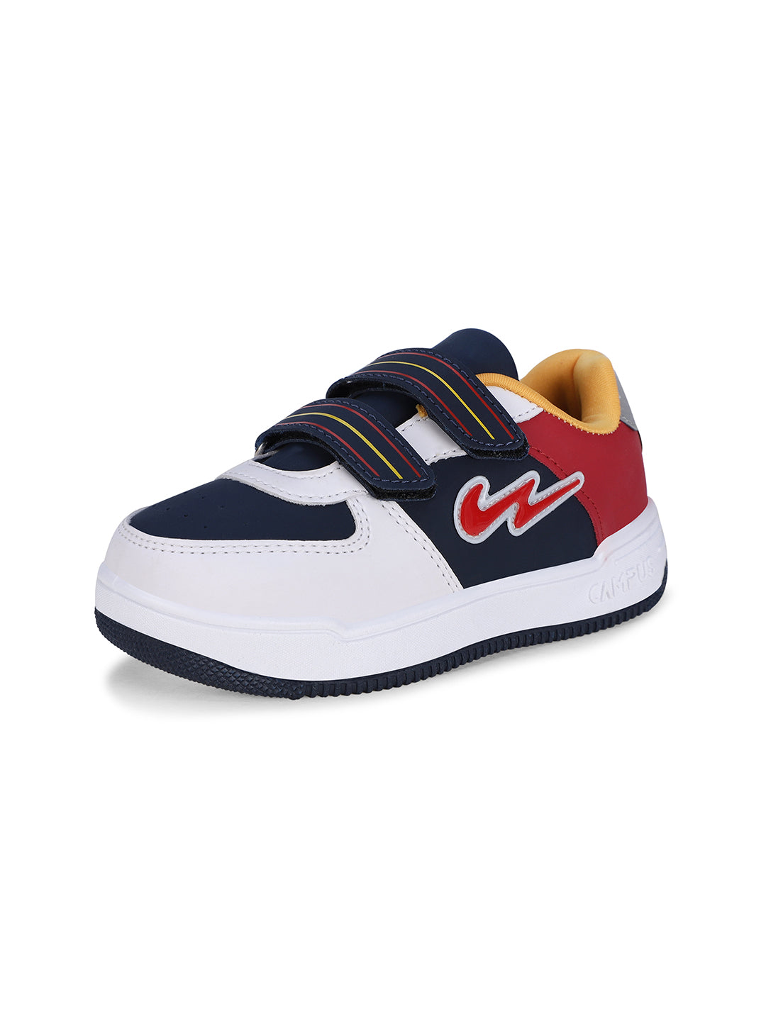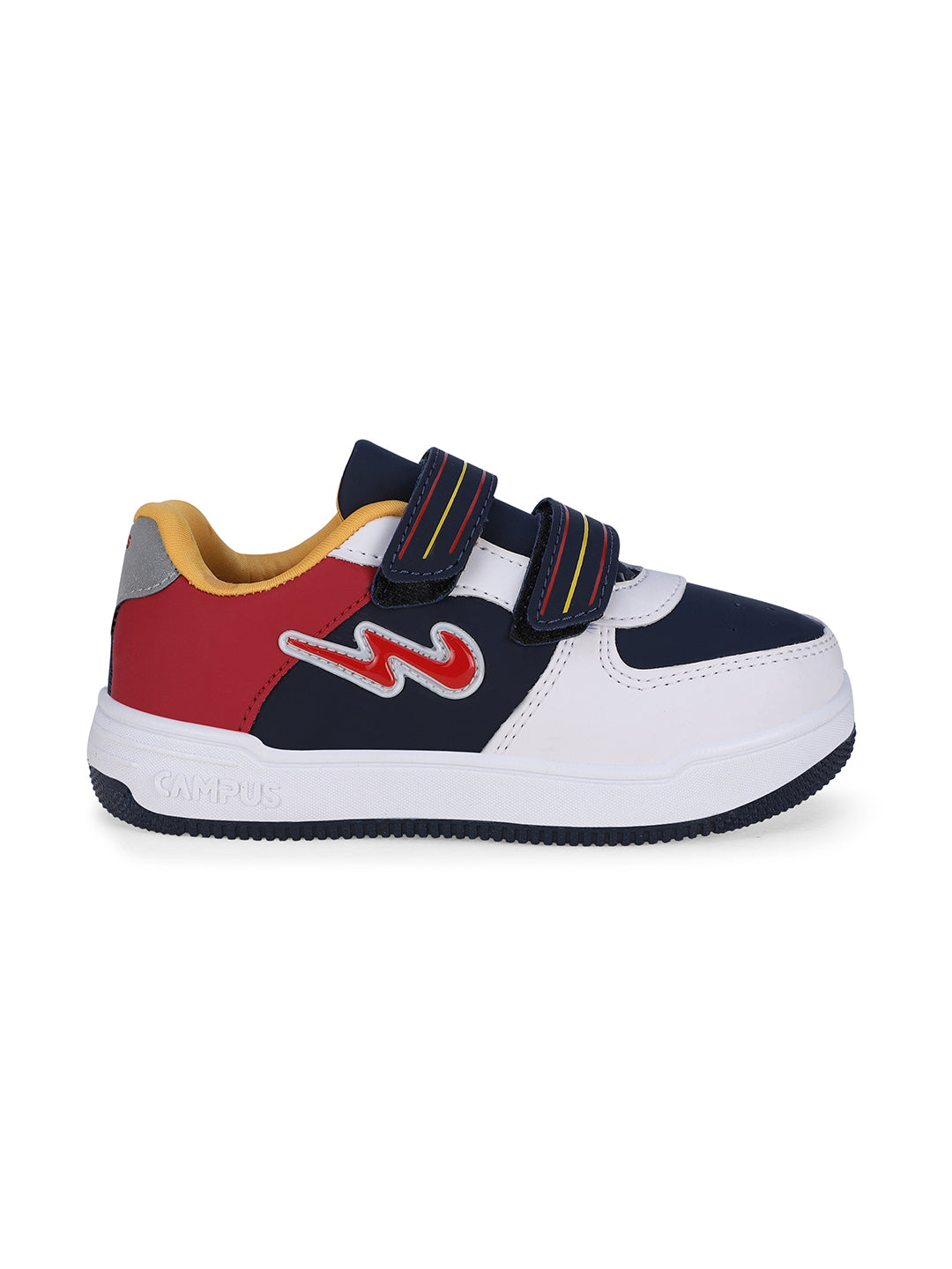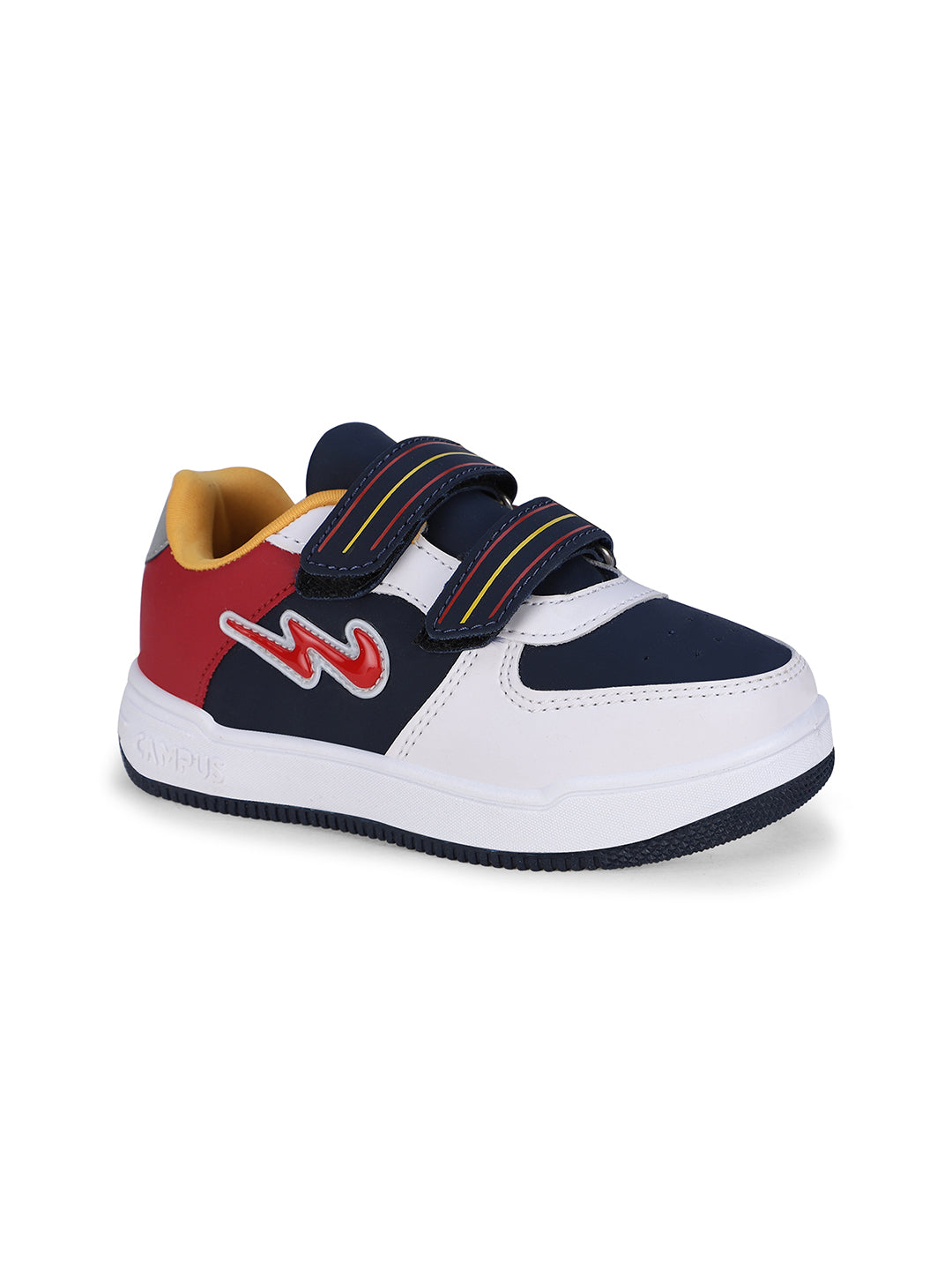 Get ready to witness the magic of OGK-04V by Campus; the sneakers that turn your kid's every step into a dazzling adventure. With a velcro closure designed for little fingers, these sneakers make dressing up an exciting game your kids will love to play. They'll be sliding into these stylish kicks with ease, mastering the art of independence. But what truly sets OGK-04V apart is the Memory Foam Insole, offering your child a customized comfort experience. The Anti-Slip Outsole Design is like a guardian angel for your little adventurers, providing the grip and traction they need to explore, run, and have fun while keeping accidental slips at bay. The flamboyant combination of white, blue, yellow, and red! Watch your kids strut through their day with confidence, style, and an ever-present smile with Campus!