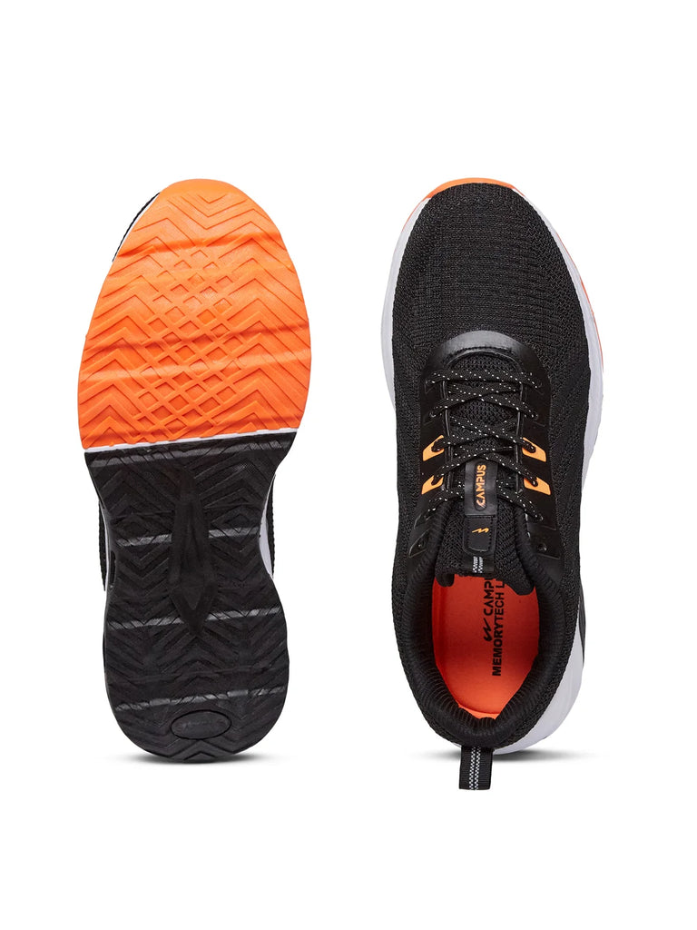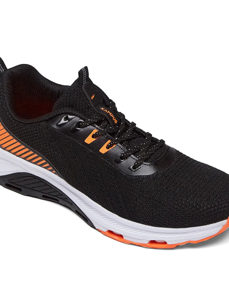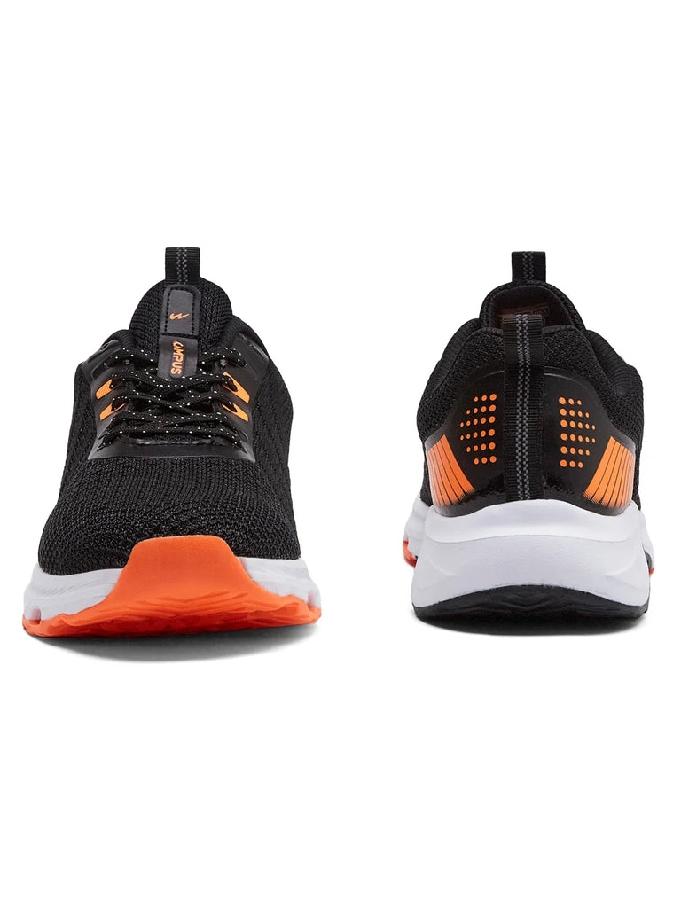 Unleash a striking new edge with the Campus PORTAL Men's Running Shoes in bold Black and Flashing Orange. Built for men who crave sleek style with high-contrast flair, these lace-up running shoes feature a streamlined vamp upper for a secure, glove-like fit. Underfoot, the EVA and TPR sole packs plush cushioning, turning every step into a dynamic stride. The Memory Insole molds to your foot for personalized, all-day comfort, while the anti-slip sole design keeps you steady and in control. From the pavement to your personal best, this pair is made to power every move with confidence.