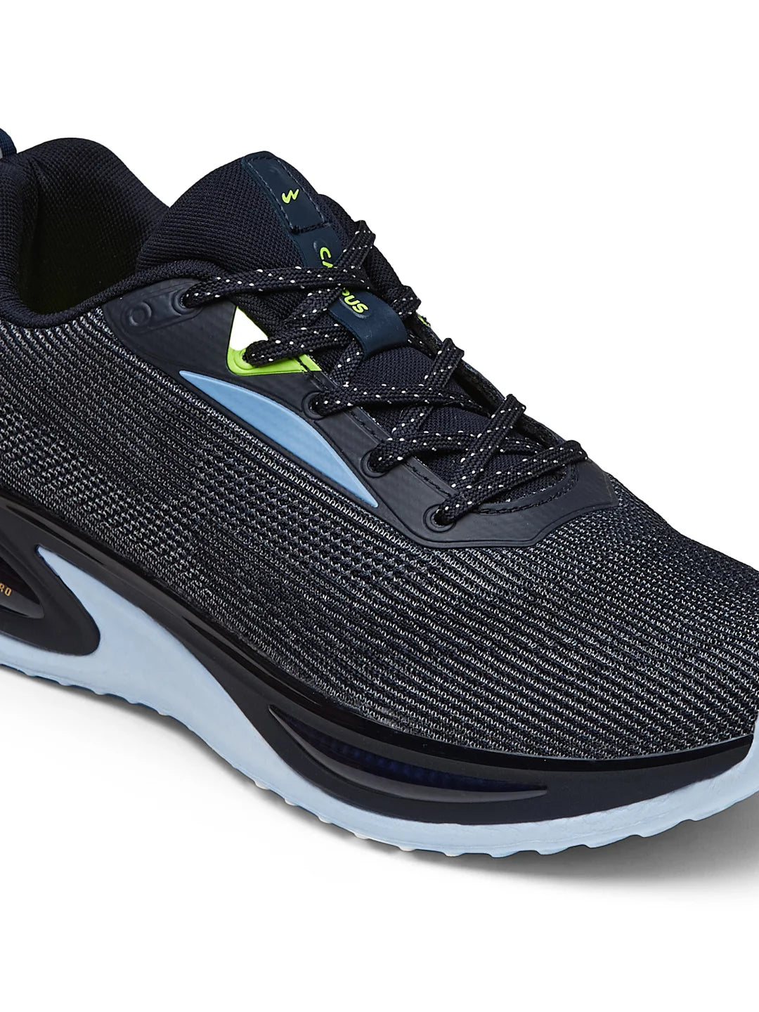 The Campus Prexton Men's Running Shoes are here to change the dynamic and how! Designed to match your pace, these shoes boast a robust vamp and an EVA sole for durability. The advanced MemoryTech footbed offers superior comfort and support with each stride, while the Air Capsule Pro technology provides that extra bounce you crave. Perfect for all your everyday adventures, these stylish navy and light blue shoes bring a fresh twist to your everyday wardrobe.