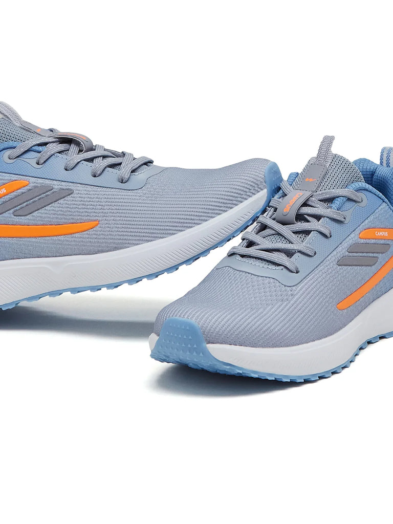 Ever felt like your shoes just can’t keep up with your pace? The Campus SKIPE Running Shoes for men change that. The soft vamp upper enhances airflow to keep your feet fresh, while the Memory Extra Bounce insole delivers that dreamy cushioned feel with every stride. The EVA midsole keeps your moves light, flexible, and oh-so-effortless, and the TPR outsole with anti-slip design grips confidently on any surface — because traction matters when you’re pushing limits. What truly sets these apart? The sleek grey and blue palette with a vibrant pop of orange, giving you that style edge even when you’re hustling hard.