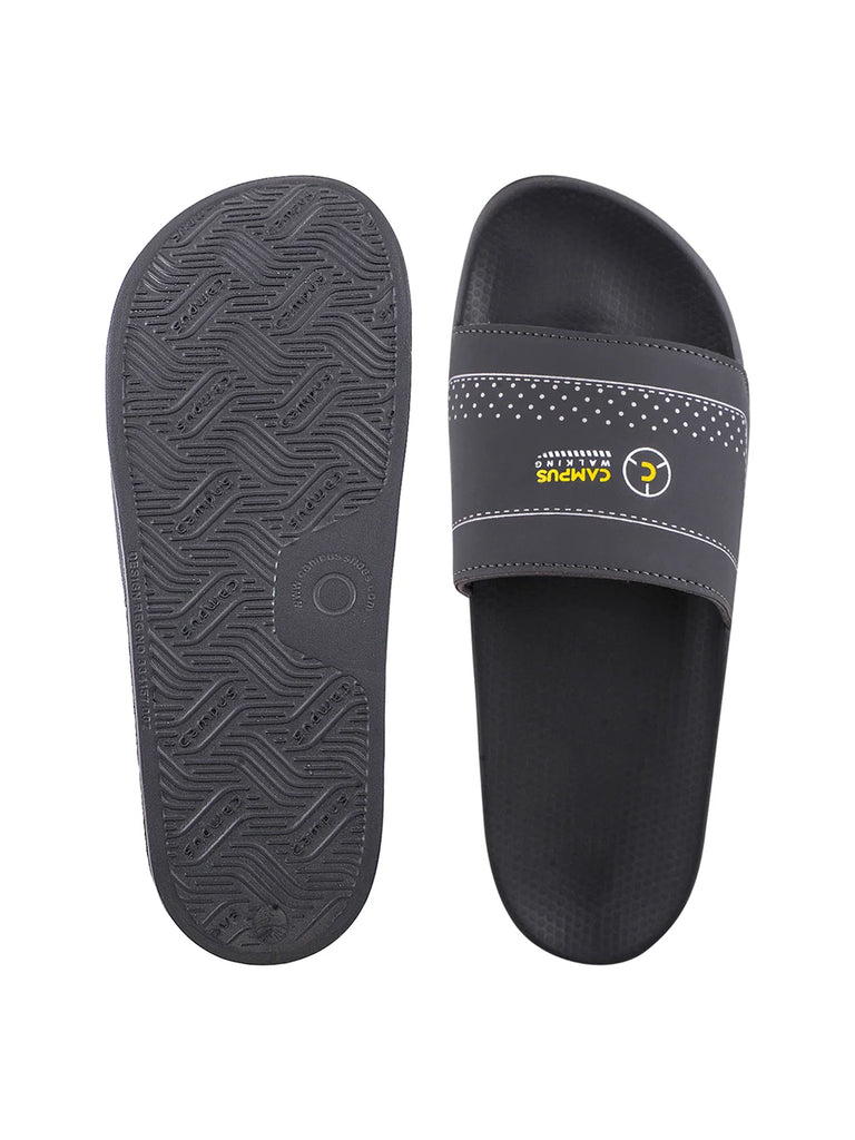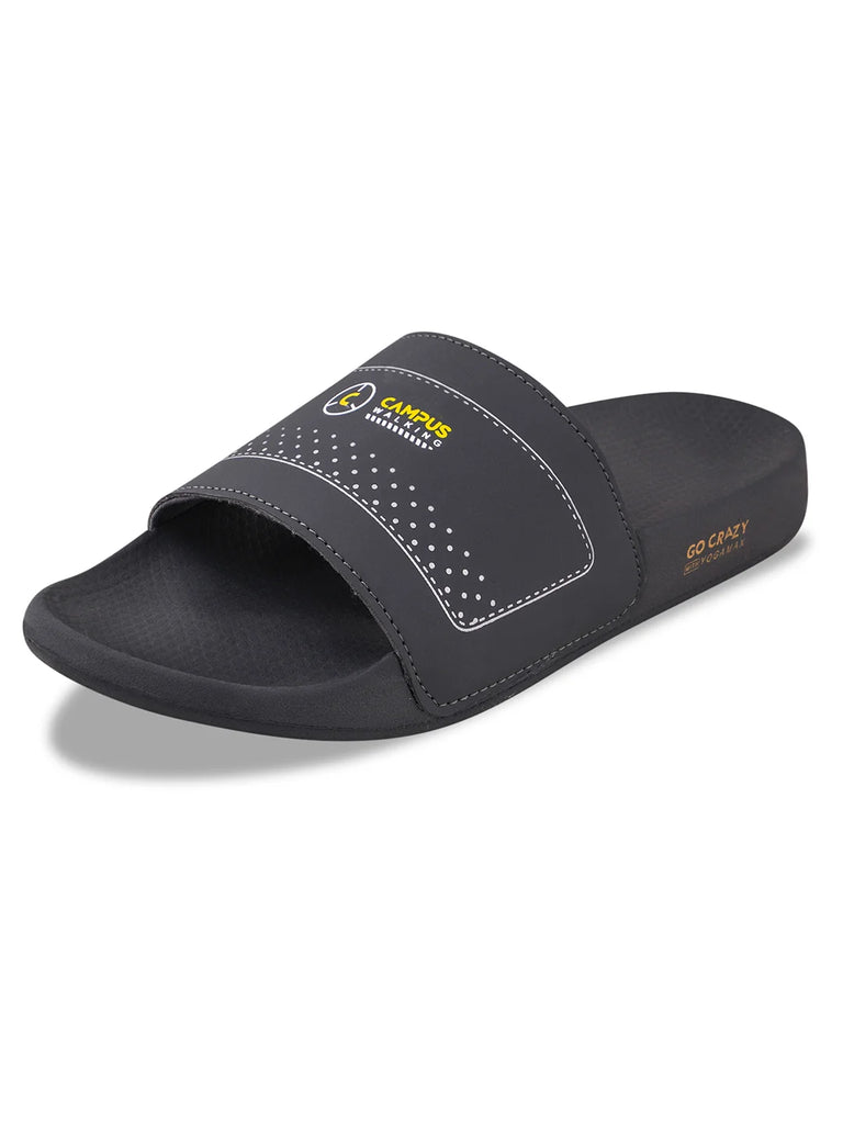 Gear up for a summer vibe takeover with Campus' dark grey and yellow men's sliders – the epitome of laid-back cool. Their sleek silhouette and attention-stealing details make for an accessory that transforms you into the urban explorer of the season. Whether you're creating waves at a pool party or navigating the uncharted streets of the city, these sliders are your pass to a realm of coolness, unwavering confidence, and a cascade of endless adventures. Ready to slide into the scene with some swag? Buckle up for a season infused with sizzling cool vibes and an unstoppable surge of confidence!