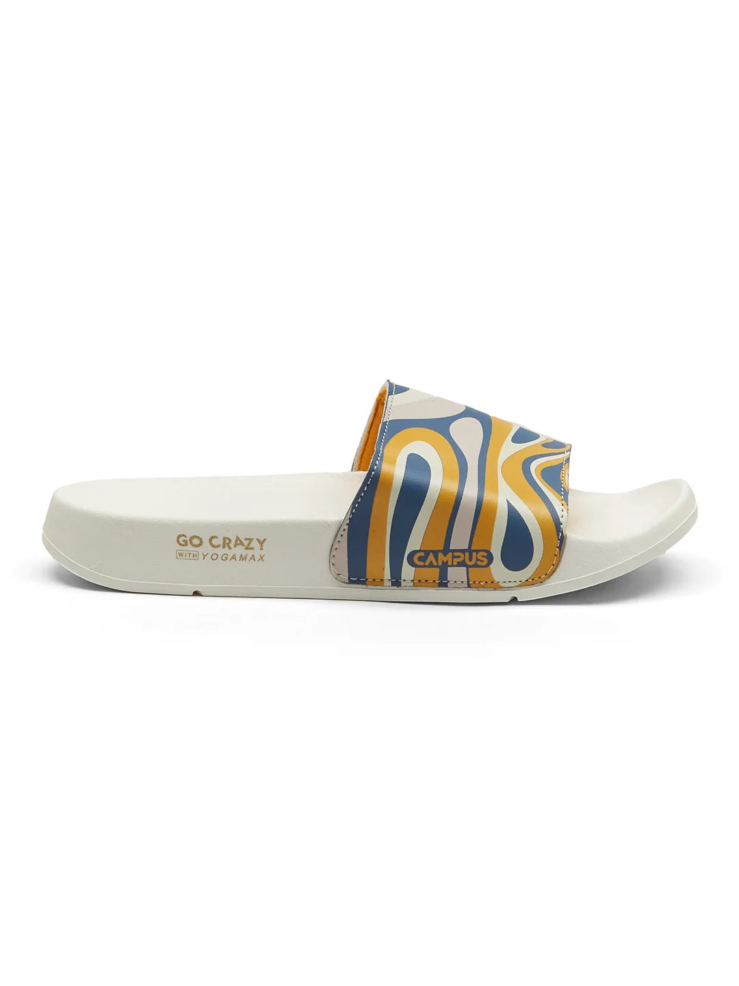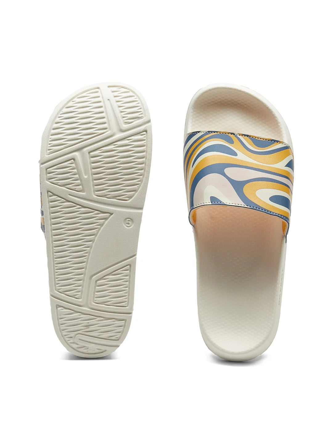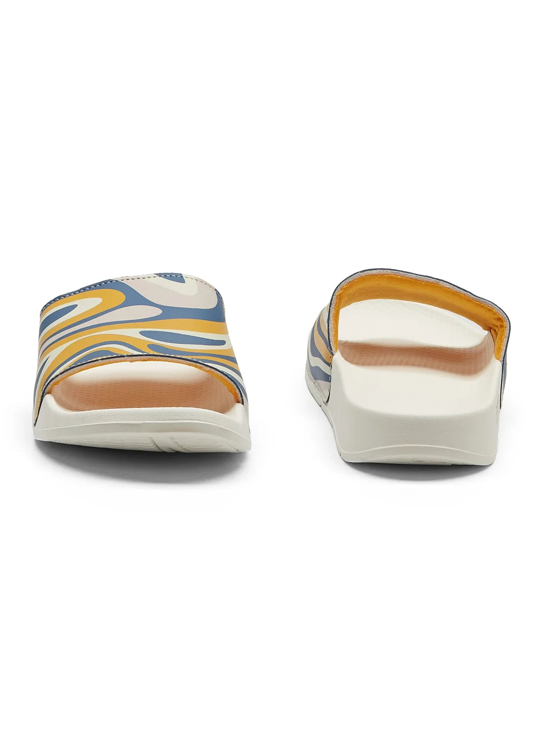 Retro vibes meet modern comfort with the SL-469C Child's Sliders in Off White and Mustard. The PVC upper pops with fun graphic print, while the Pillofoam tech ensures you glide through every day. Add to that a lightweight EVA sole, and you’re sorted for everyday strolls, café catchups, and balcony hangs.